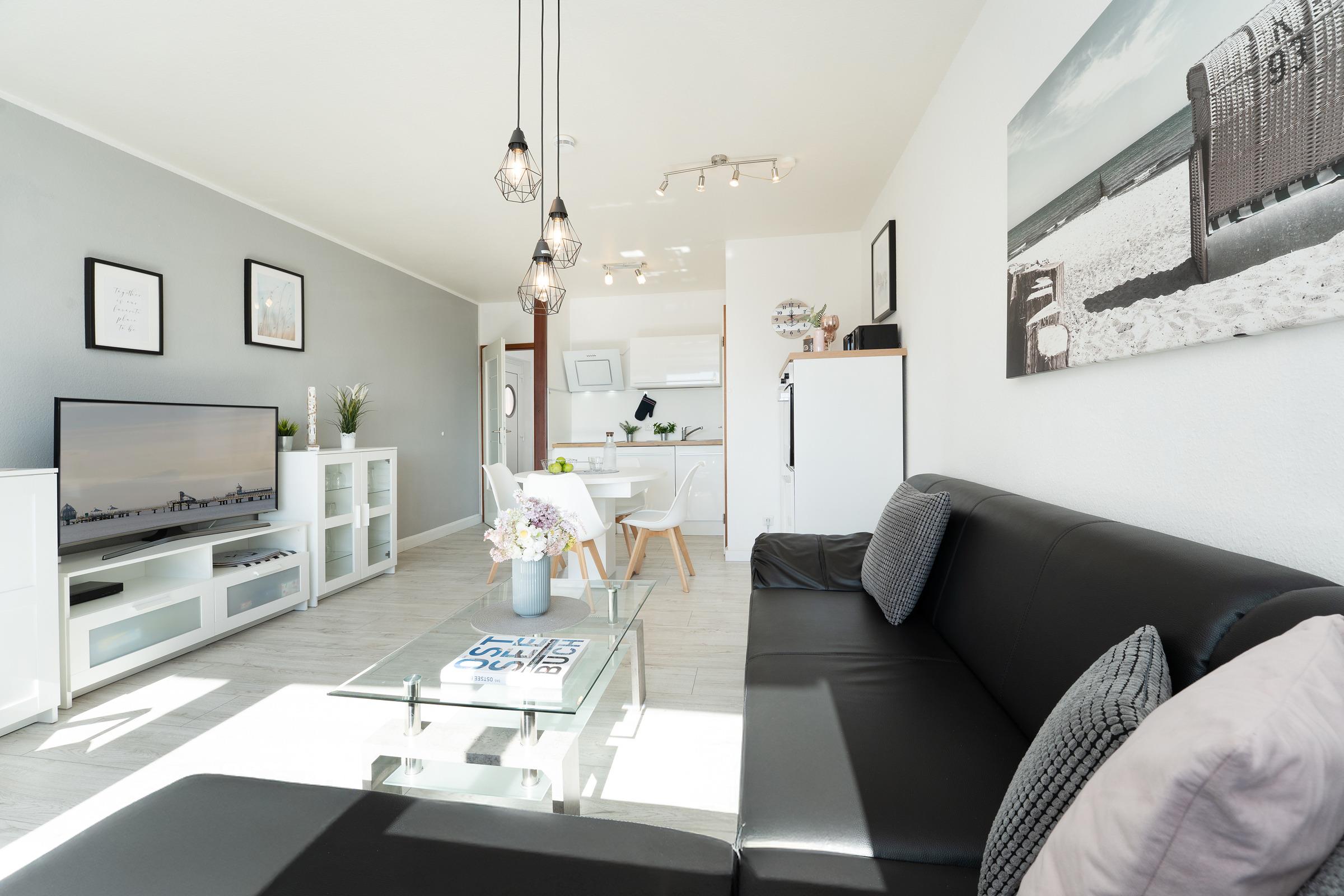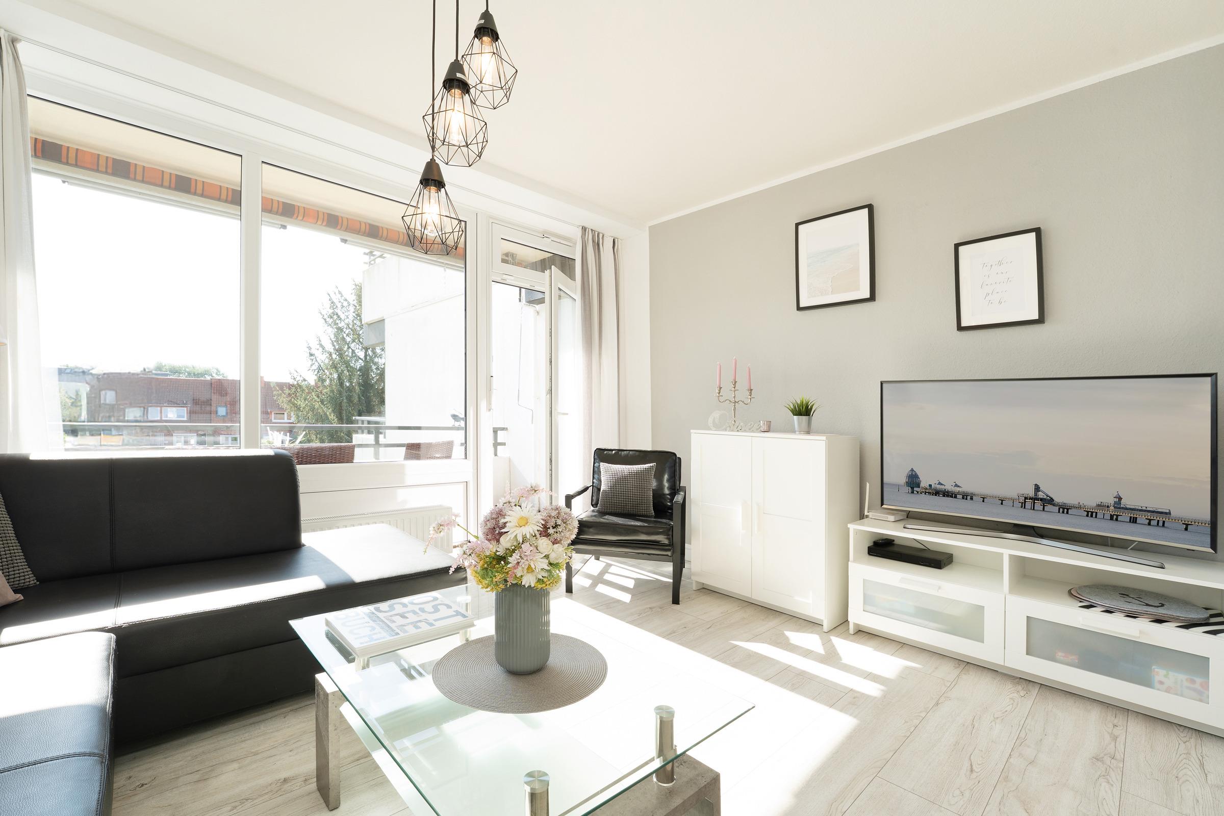 Charmante 2-Zimmer-Ferienwohnung mit Balkon, nur 200 Meter vom feinsandigen Ostseestrand in Grömitz entfernt.