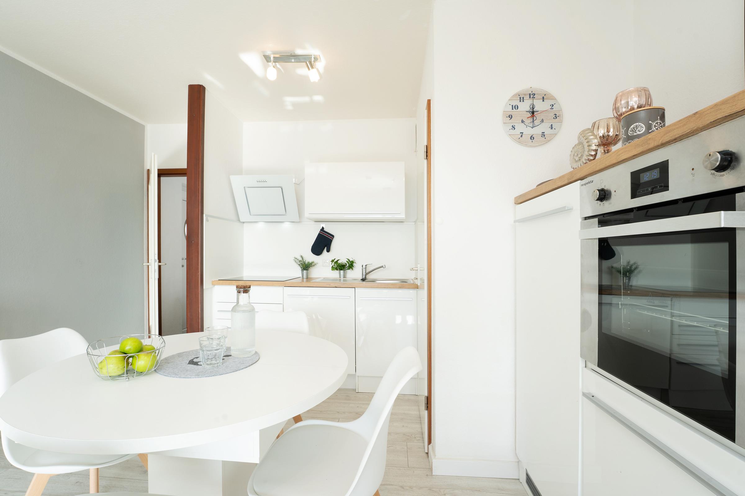 Durch den Eingang gleich rechts erreichen Sie den hellen, stets lichtdurchfluteten Wohnbereich mit Sofa und Flachbildfernseher. Der Esstisch bietet bequem Platz für die ganze Familie. Vom Wohnbereich aus gelangen Sie auf den möblierten Balkon mit Süd-Ost-Ausrichtung. In der voll ausgestattete Küche können Sie köstliche Mahlzeiten zubereiten. Das separate Schlafzimmer ist mit einem Doppelbett (2x 90x200cm), einem weiteren TV sowie einem Kleiderschrank ausgestattet und lässt sich zur Nacht angenehm abdunkeln. Genießen Sie den Komfort im hellgefliesten Badezimmer mit Dusche und beheizbaren Handtuchhalter.