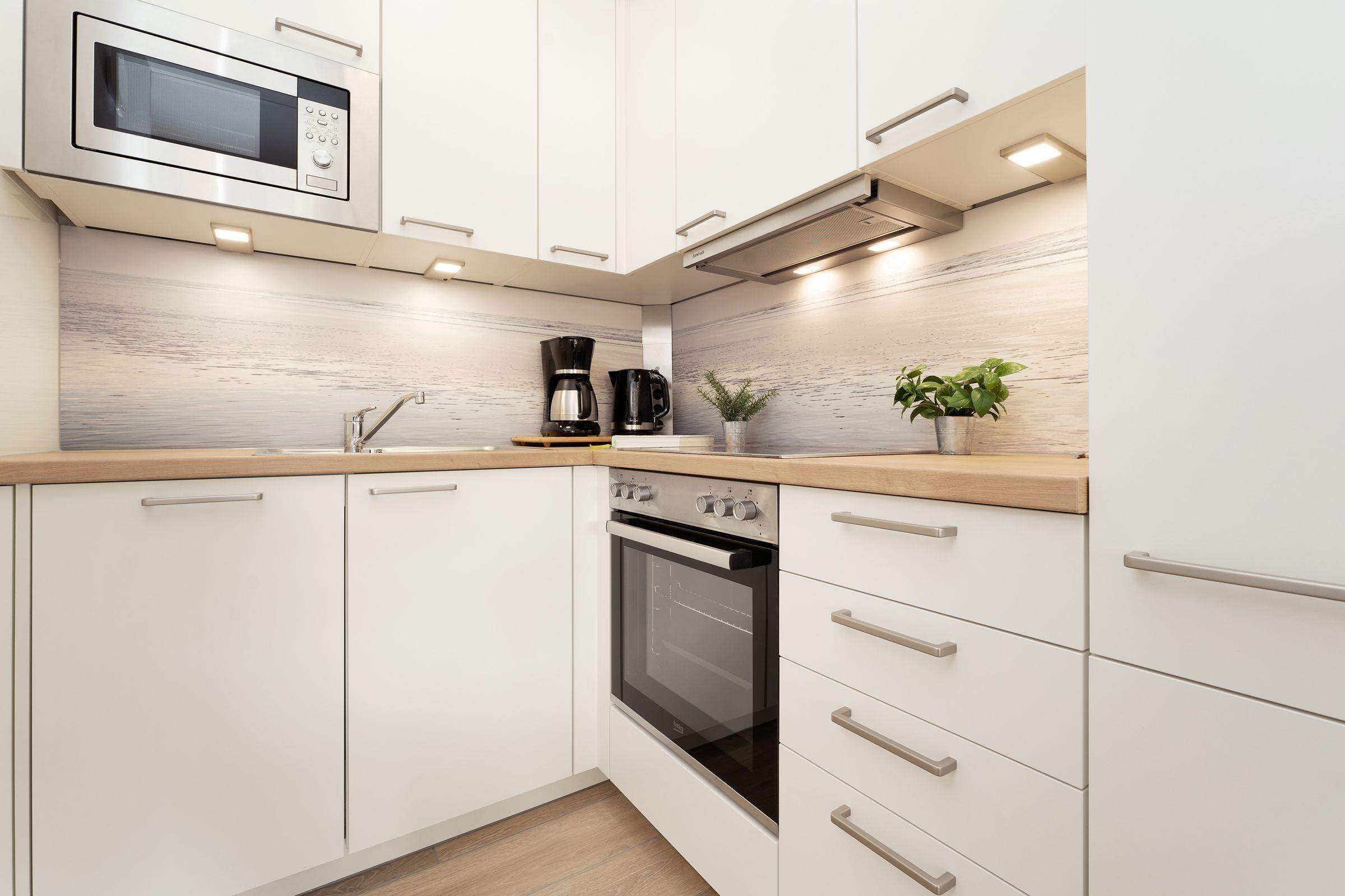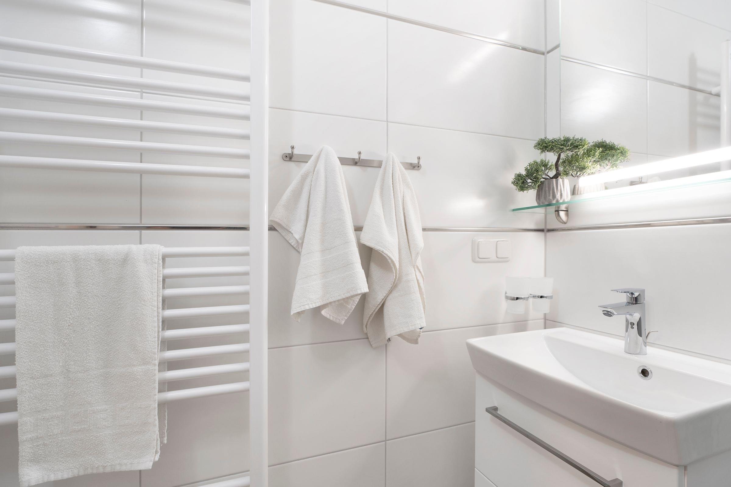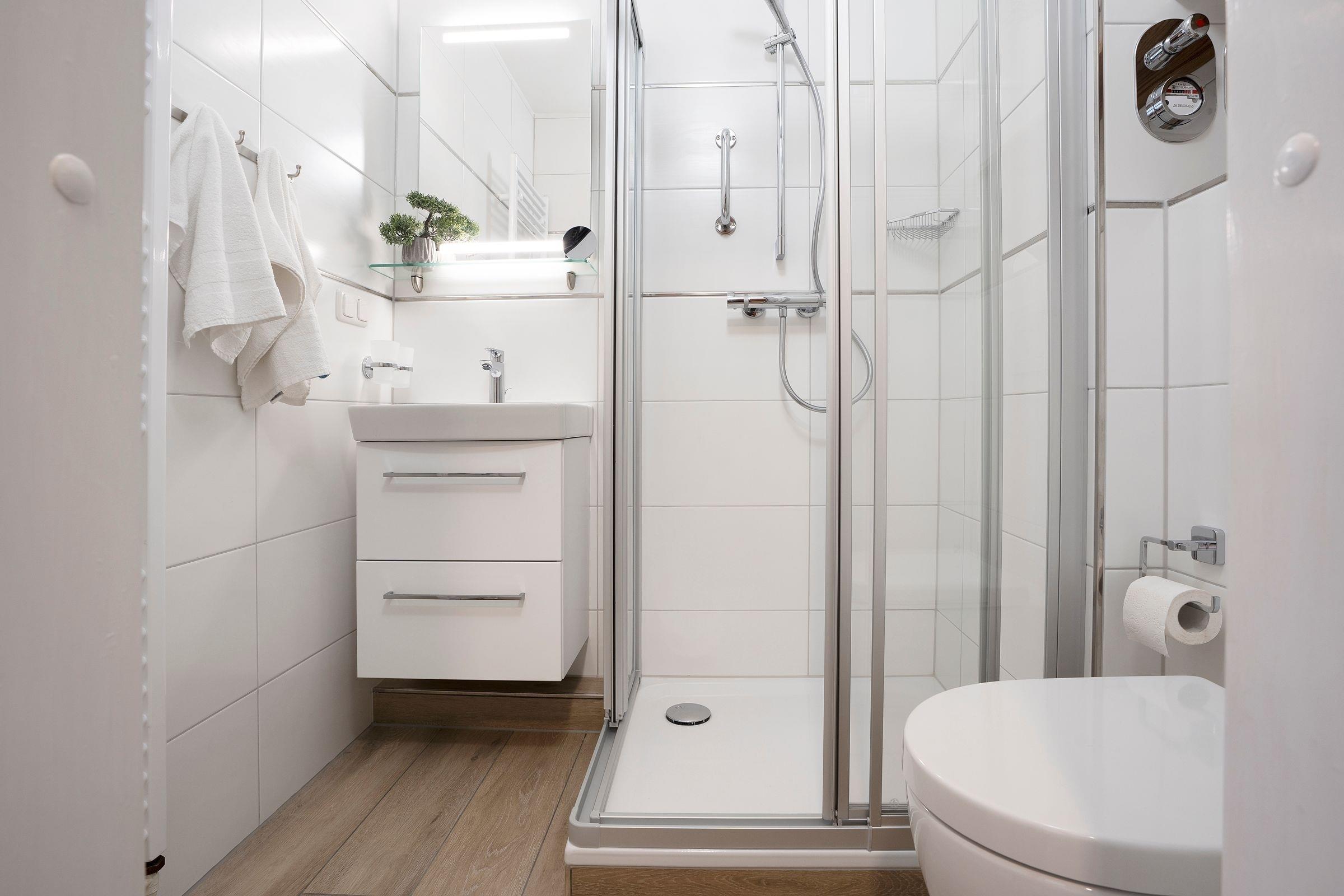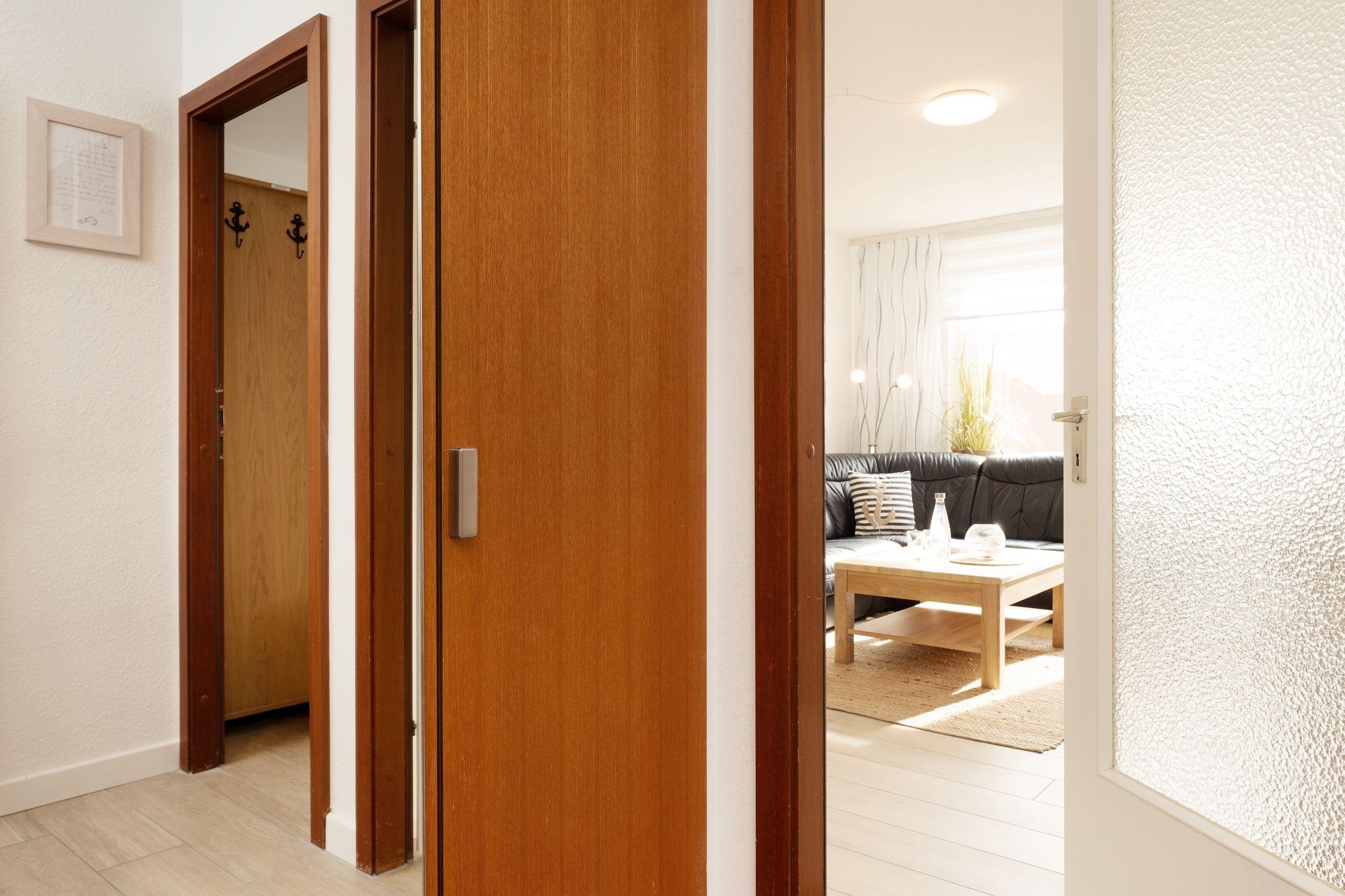 Mit dem Fahrstuhl gelangen Sie bequem in die 2. Etage und erreichen Ihr Urlaubsdomizil. Im Wohnbereich können Sie es sich auf der Couch oder dem Sessel vor dem Flachbildfernseher so richtig gemütlich machen. Von dem möblierten Südbalkon mit elektrischer Markise können Sie zwischen den Häusern sogar einen Blick auf die Ostsee erhaschen. Die moderne Küche ist mit vielen Annehmlichkeiten ausgestattet, hier können Sie Ihre Mahlzeiten zubereiten und am Esstisch gemeinsam einnehmen. Das separate Schlafzimmer ist mit einem komfortablen Doppelbett (2x 90x200 cm) sowie einem Kleiderschrank. Zur Nacht lässt sich das Fenster angenehm abdunkeln. Das innenliegende Badezimmer erwartet Sie mit einer Dusche, Föhn sowie einem beheizbaren Handtuchhalter.