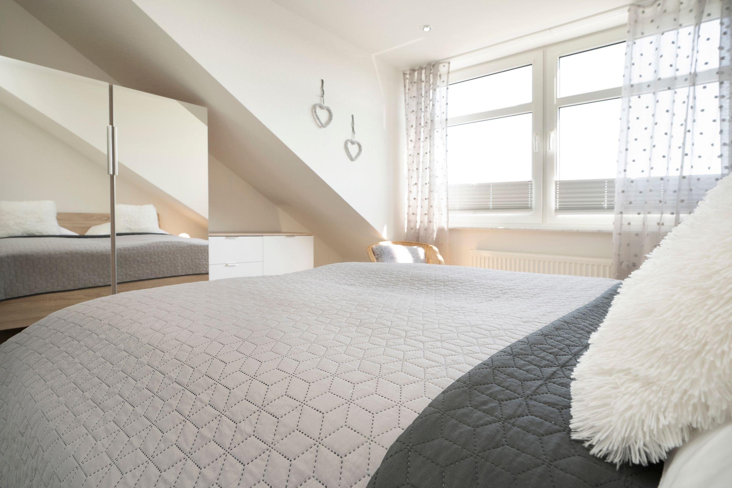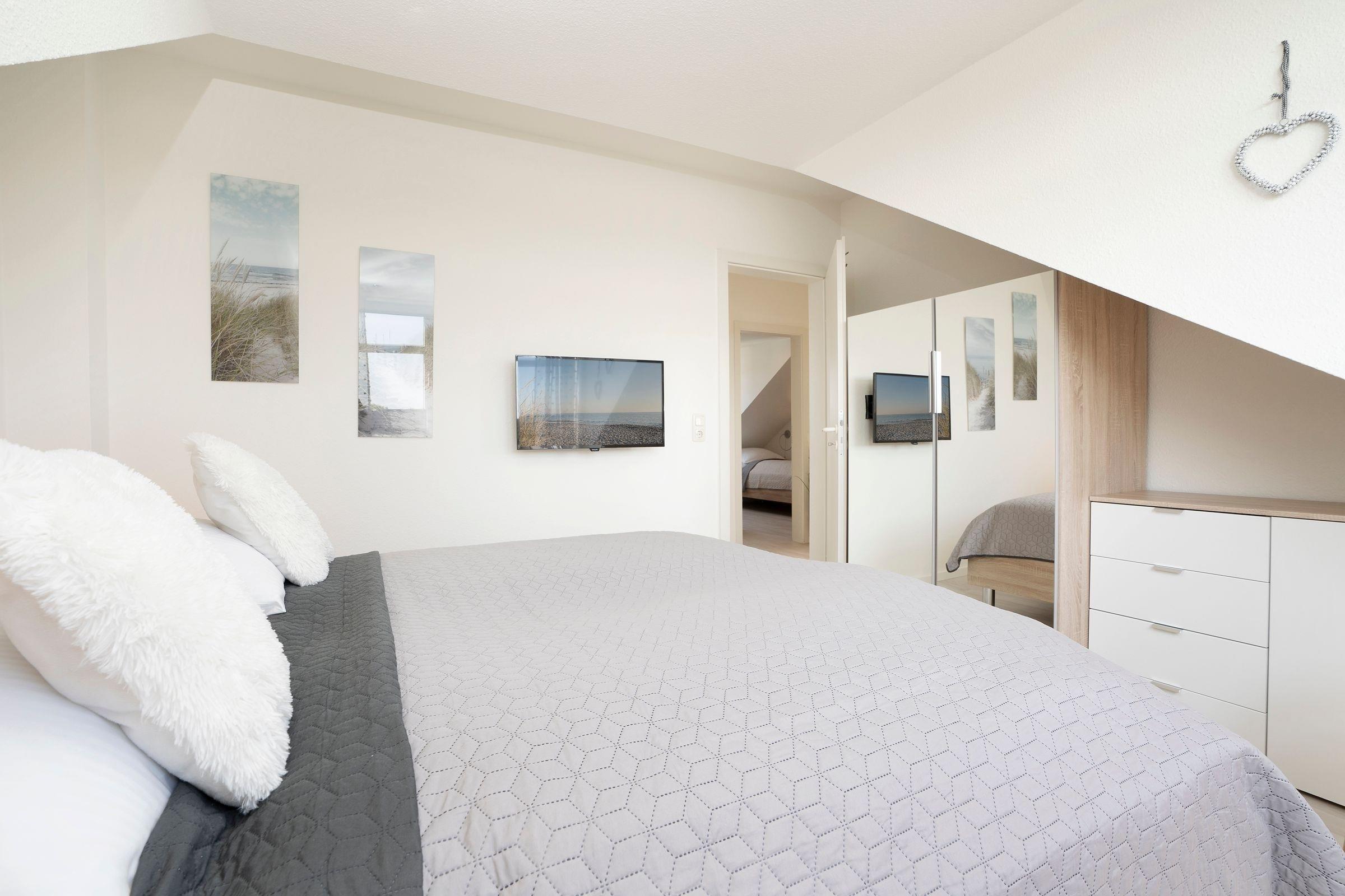 Charmante Dachgeschoss-Ferienwohnung in Grömitz mit Balkon, WLAN und Gemeinschaftsgarten für entspannte Strandtage.