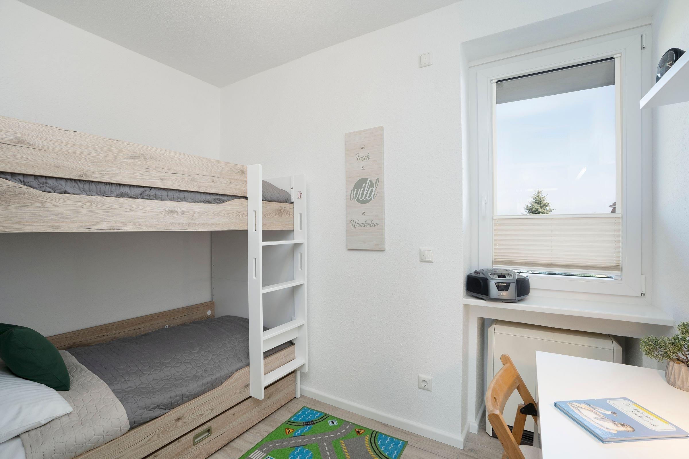 Schlafzimmer 2: 1 Etagenbett (je 90x200 cm), Verdunkelung: Rolladen, Platz für Babybett vorhanden