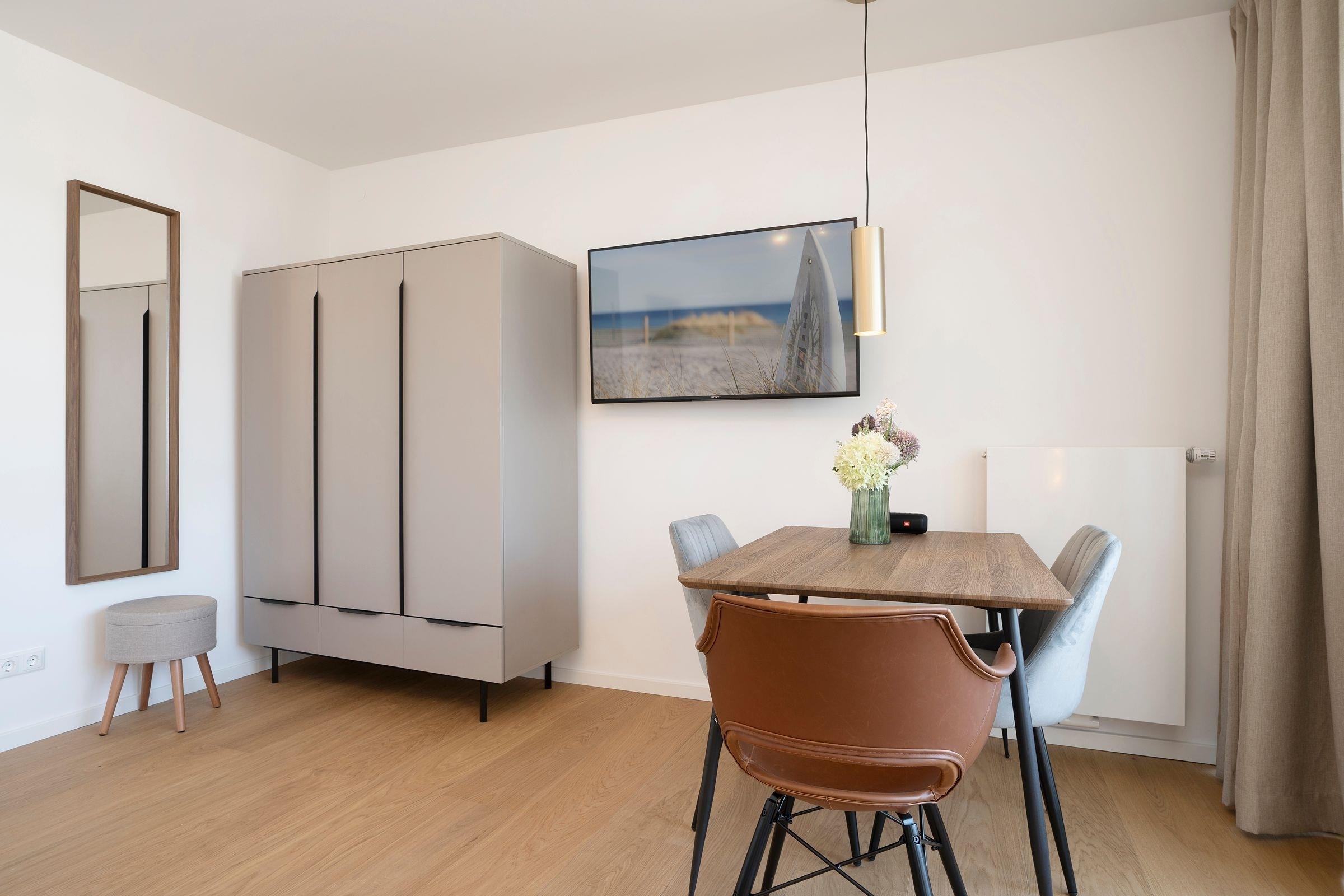 Das hochwertig eingerichtete maritime Ferienappartement DünenBude liegt direkt am feinsandigen Grömitzer Strand in erster Reihe und bietet auf ca. 35 m² Platz für bis zu 3 Personen.