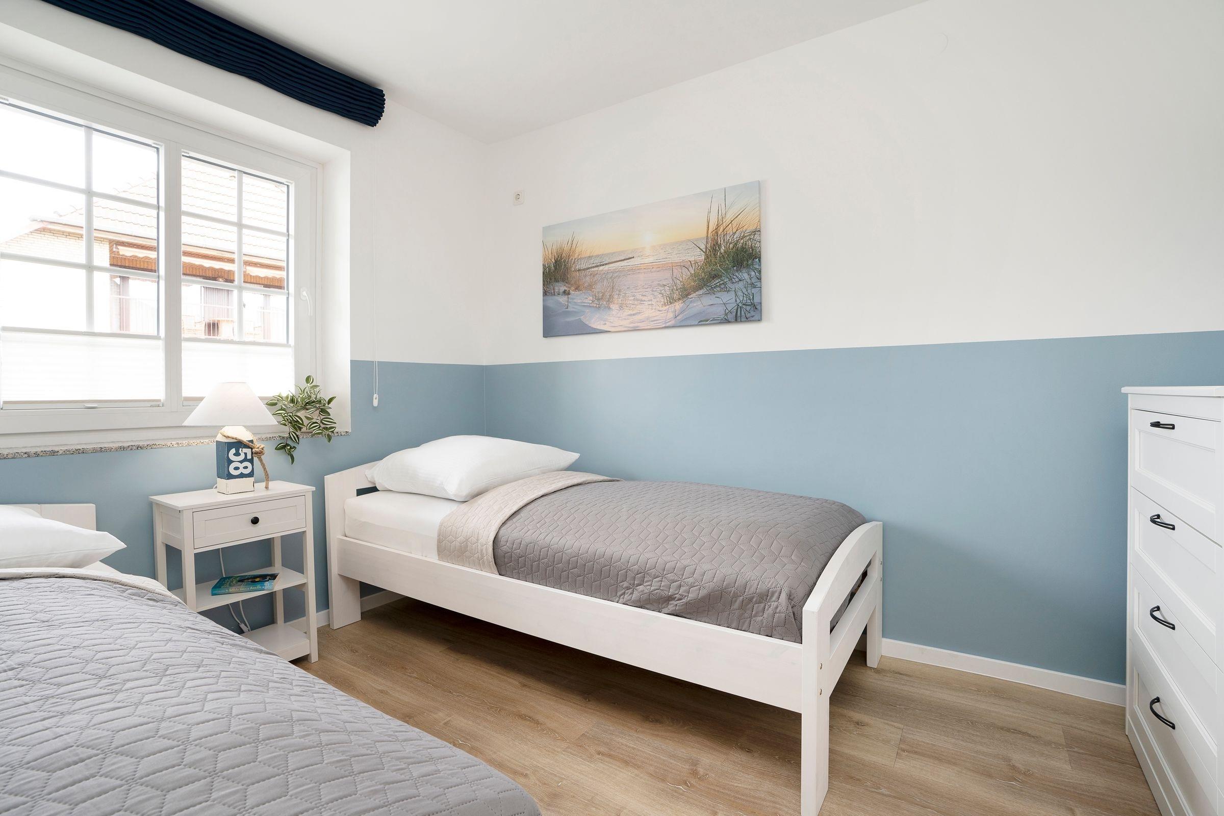 Schlafzimmer 2: 2 Einzelbetten (2x90x200 cm), Verdunkelung (Raffrollos), TV, Bad en suite