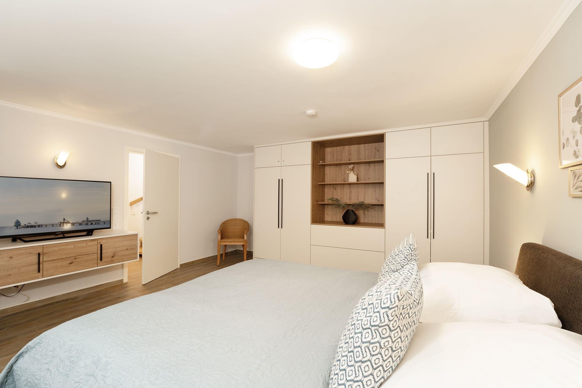 Schlafzimmer 1 (EG): 1 Boxspringbett (160x200 cm), Außenrolläden, TV