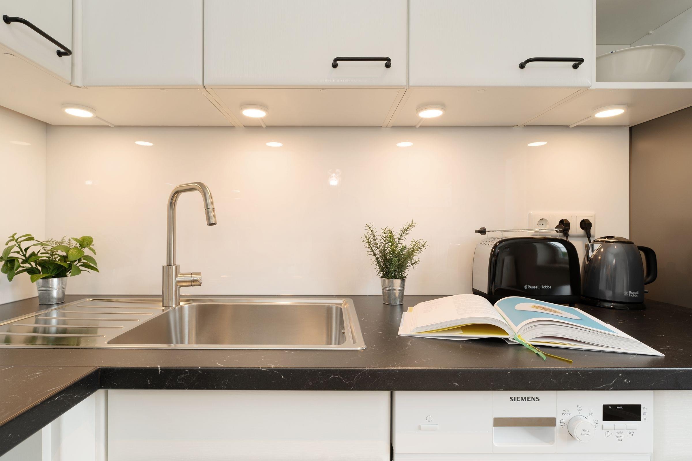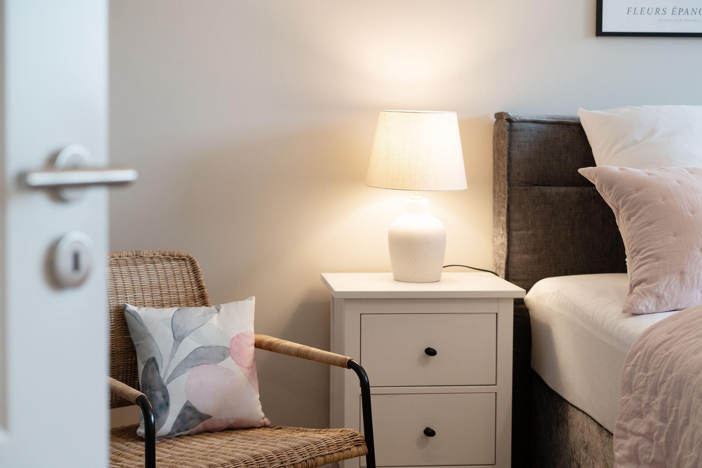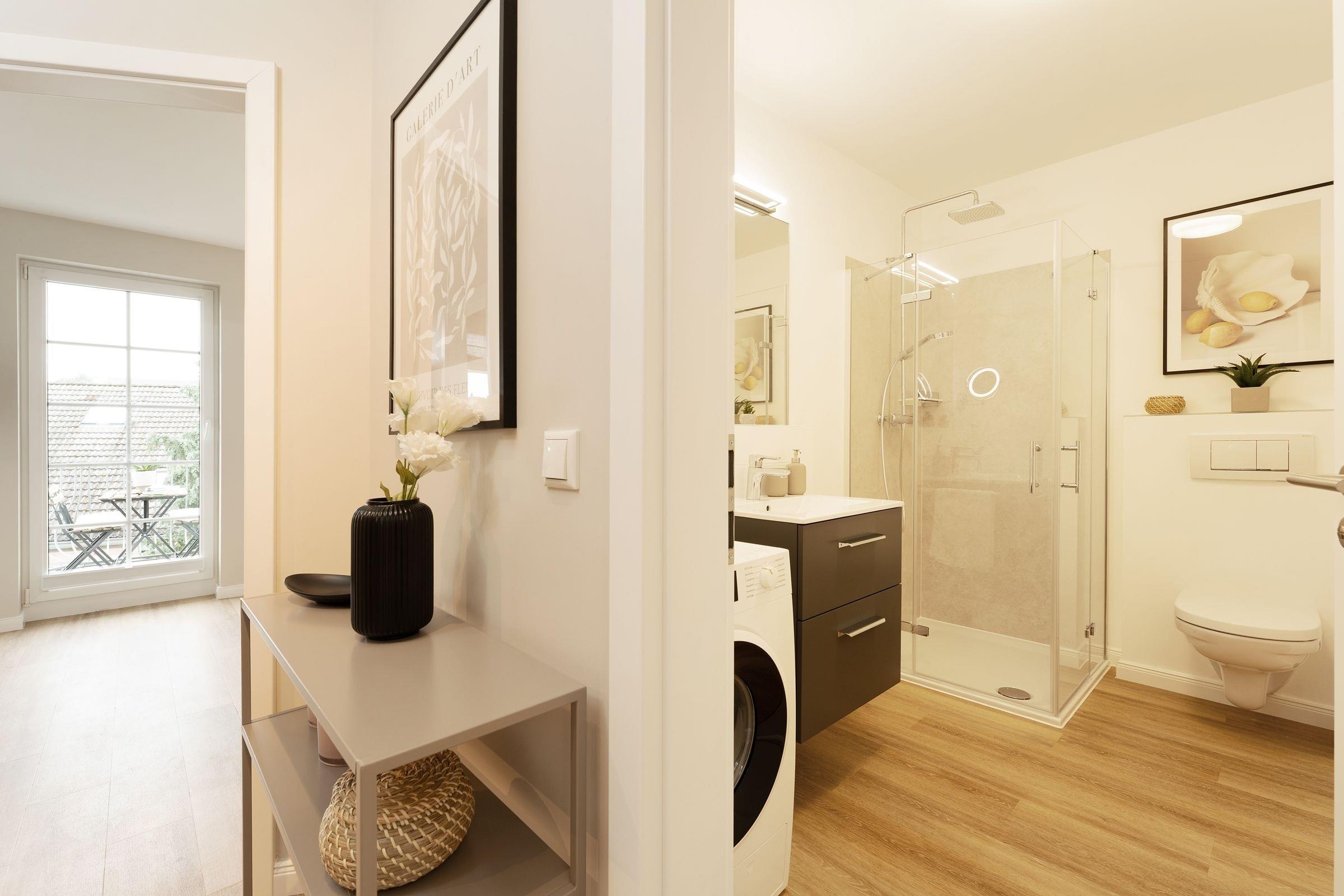Ein PKW-Tiefgaragenstellplatz ist für Sie reserviert. Im Badezimmer steht Ihnen eine eigene Waschmaschine zur Verfügung. WLAN ist inklusive.