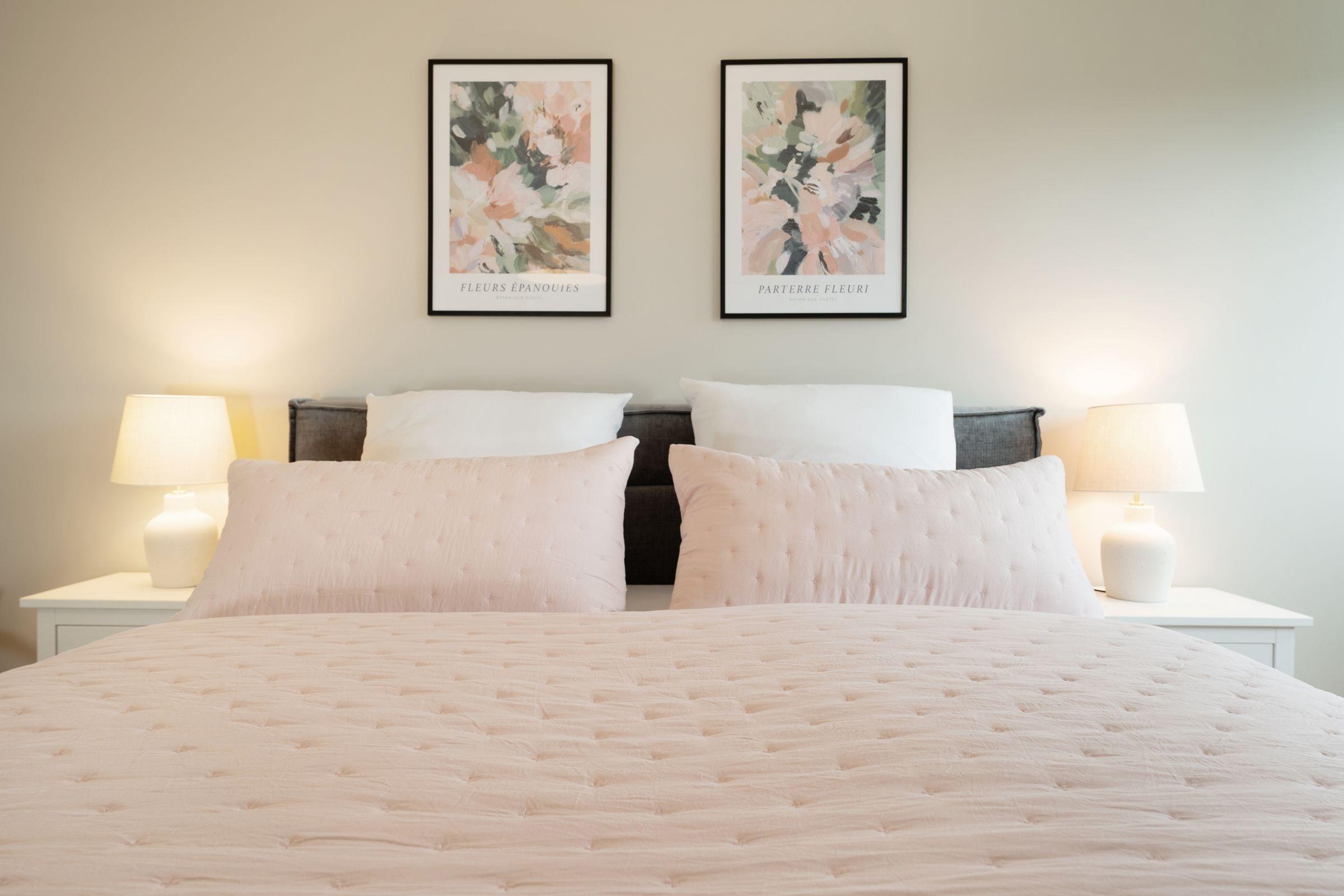 Schlafzimmer: Doppelbett (180x200 cm, durchgehender Topper), Kleiderschrank, Verdunkelung: verdunkelnde Plissees, TV, Platz für Babybett vorhanden