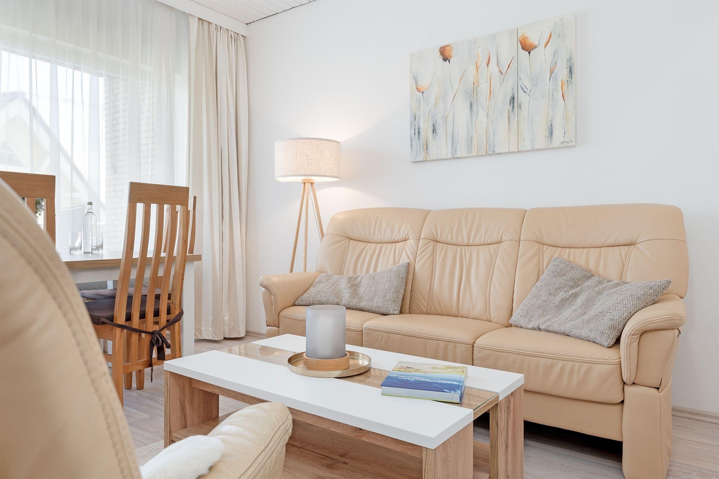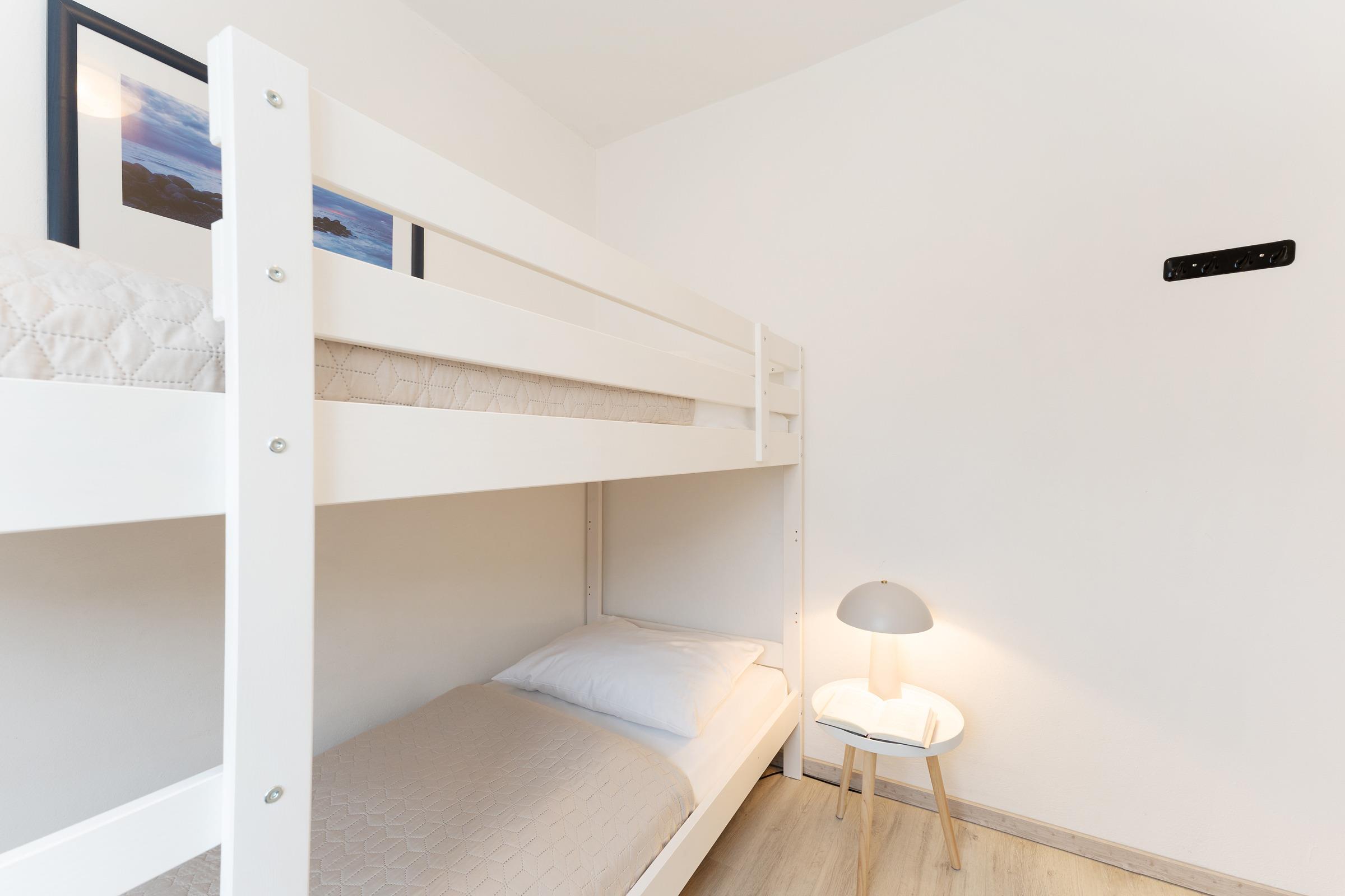 Herzlich willkommen im Urlaub! Die schöne und durchdachte Aufteilung der Wohnung Meeresluft im Haus Godewind wird Sie begeistern: Im gemütlichen Wohn-/Schlafbereich empfängt Sie eine bequeme Polstergarnitur für entspannte Stunden vor dem TV-Gerät. Hier haben Sie auch Zutritt auf den möblierten Balkon, den Sie dank der Überdachung bei jedem Wetter gut geschützt nutzen können. Für die Nacht steht Ihnen im Wohnzimmer im räumlich leicht abgetrennten Bereich ein komfortables Boxspringbett (180x200 cm) zur Verfügung. Im kleinen Schlafzimmer steht ein Etagenbett (90x200 cm). Die kleine Küche punktet mit einer Espressomaschine (Senseo) und einem Geschirrspüler. Das moderne, tageslichthelle Duschbad verfügt über einen Handtuchwärmer.