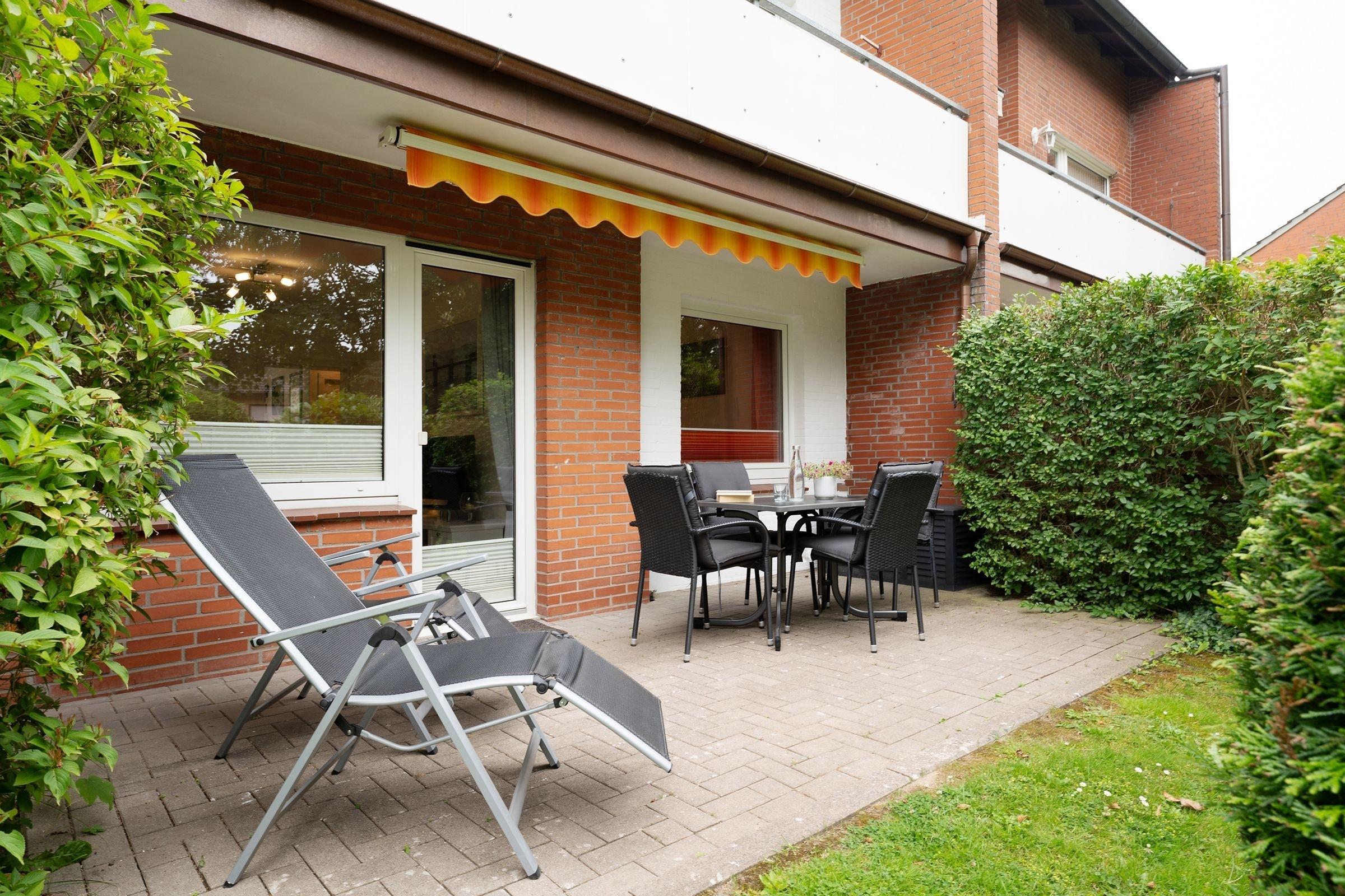 Charmante Ferienwohnung Birkenblick mit Terrasse und Gartenblick in Grömitz für erholsame Urlaubstage.