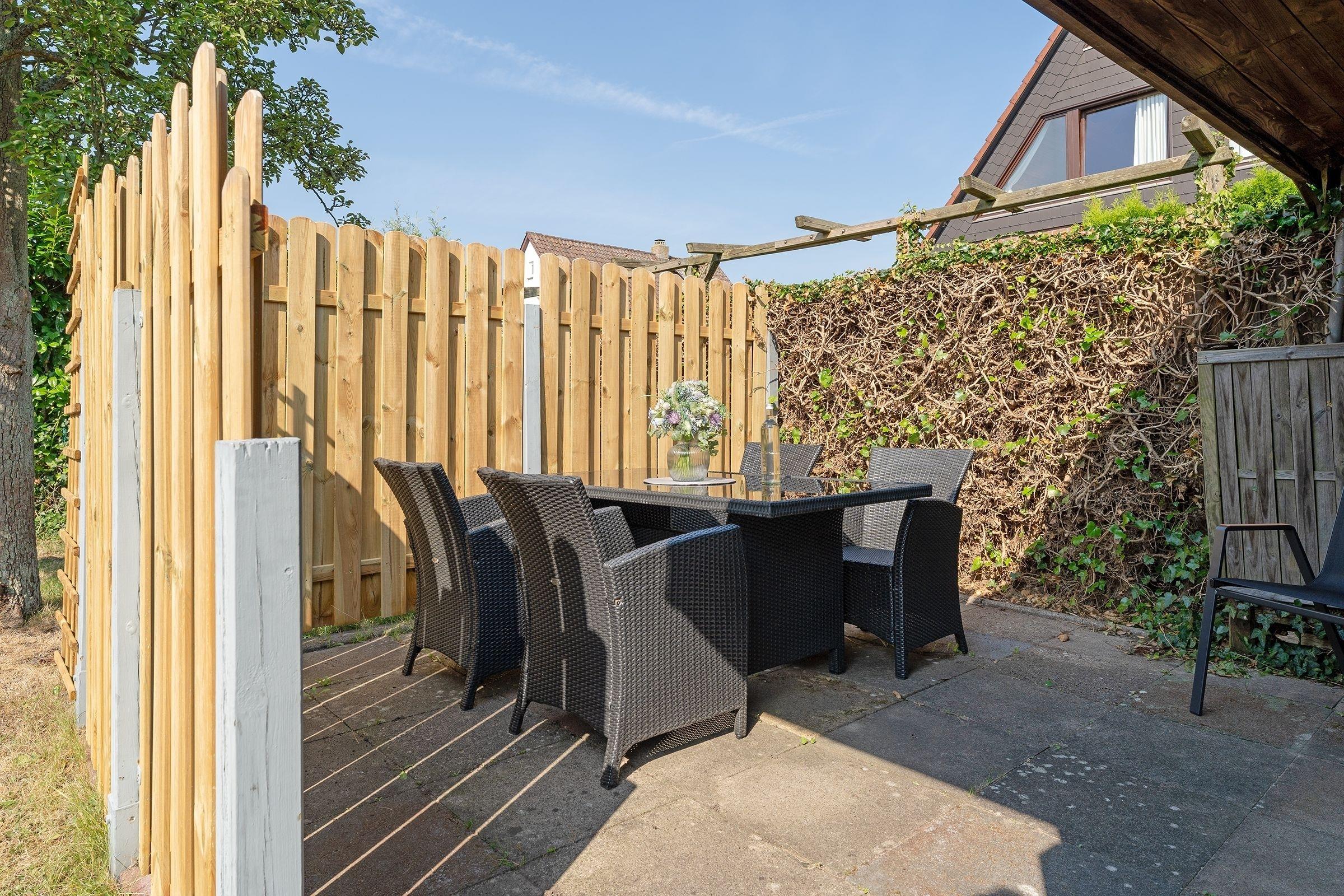 In bester Lage von Grömitz: charmantes, ca. 56 m² großes 3-Zimmer-Ferienhaus mit Terrasse und eingezäuntem Garten für bis zu 4 Erwachsene und 1 Kind.