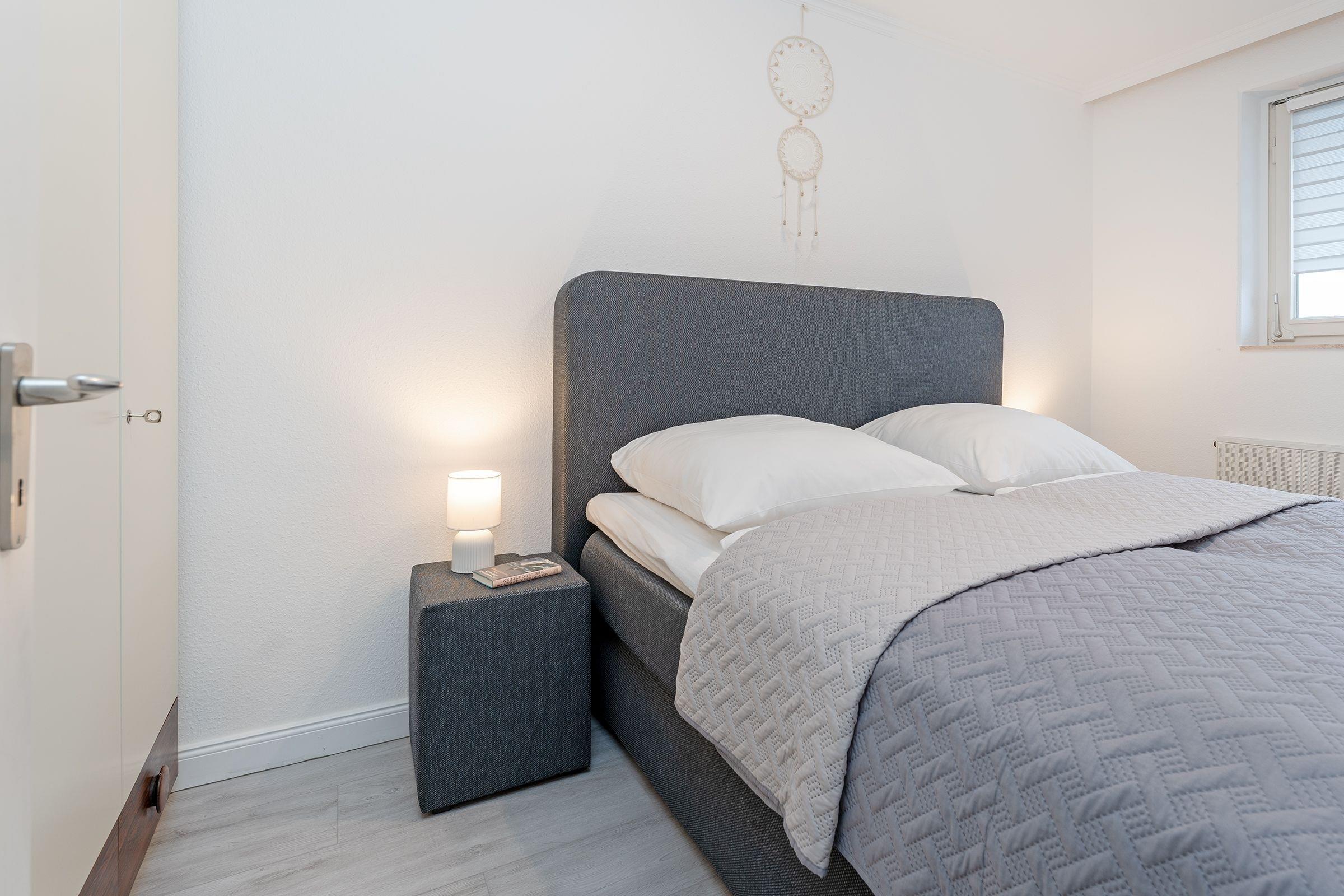 Schlafzimmer: 1 Boxspring-Doppelbett (180x200 cm), Kleiderschrank, Verdunkelung: Rollo, Platz für babybett vorhanden