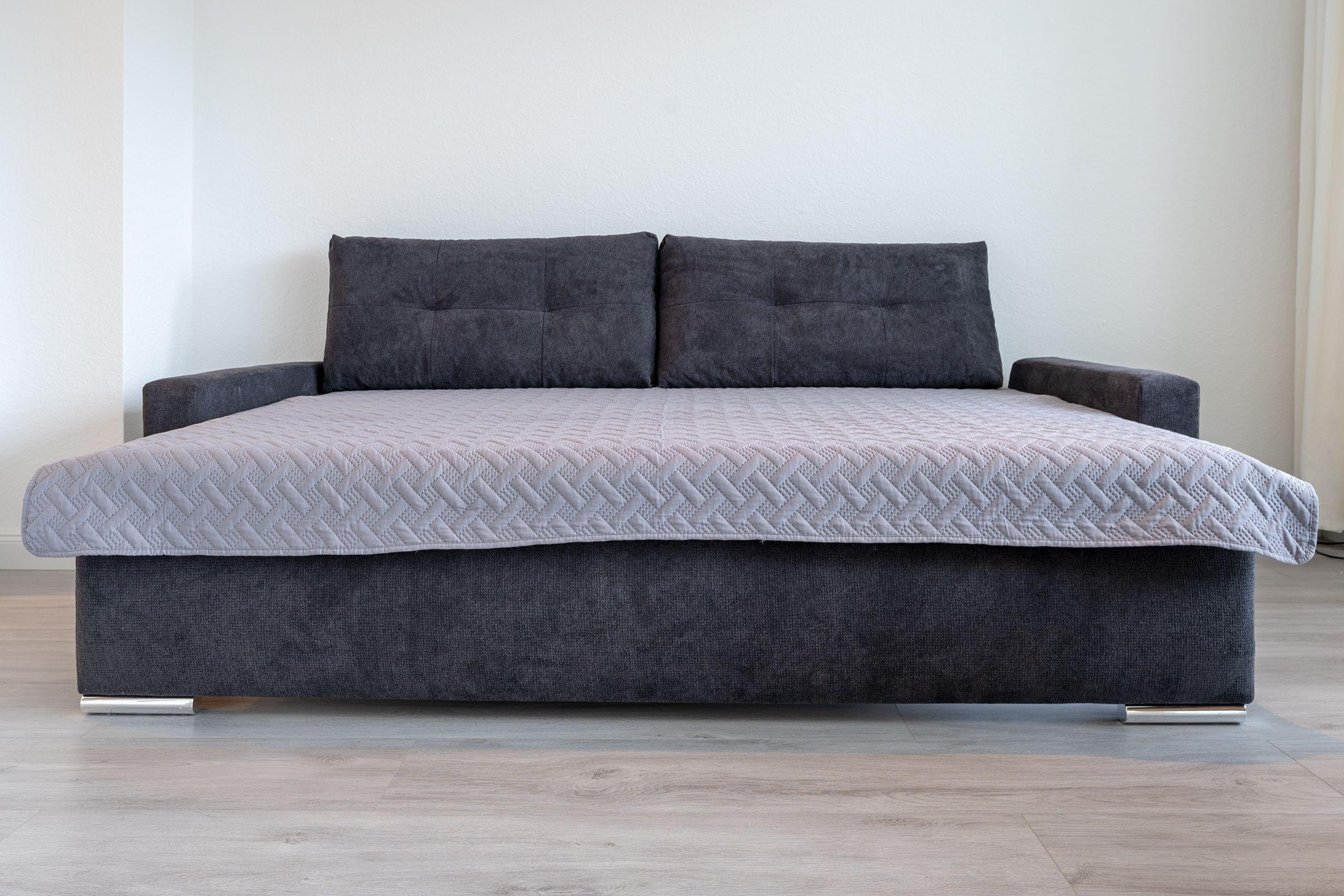Wohnzimmer: 1 Schlafsofa (160x200 cm), TV, Verdunkelung: Gardine, Platz für Babybett vorhanden