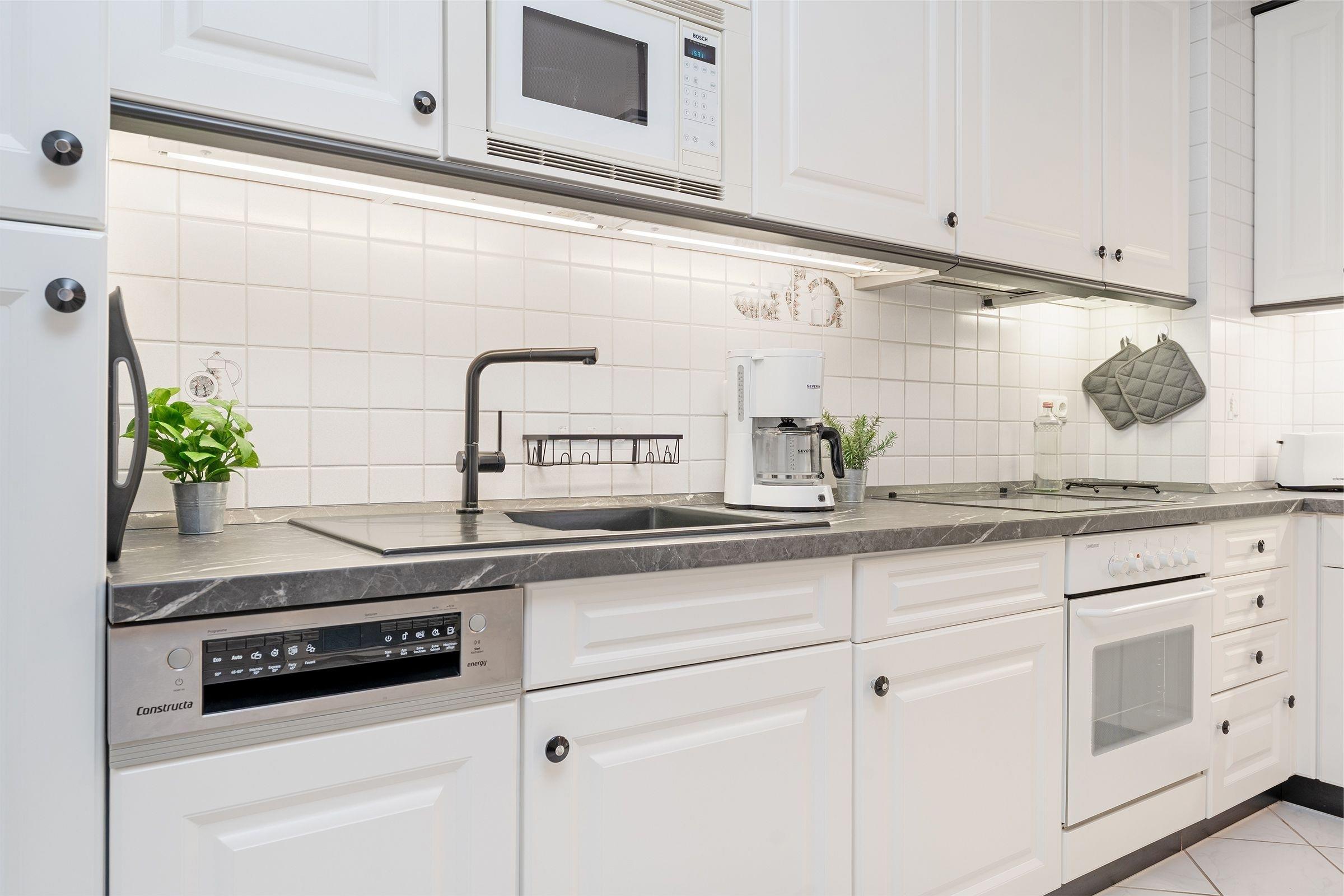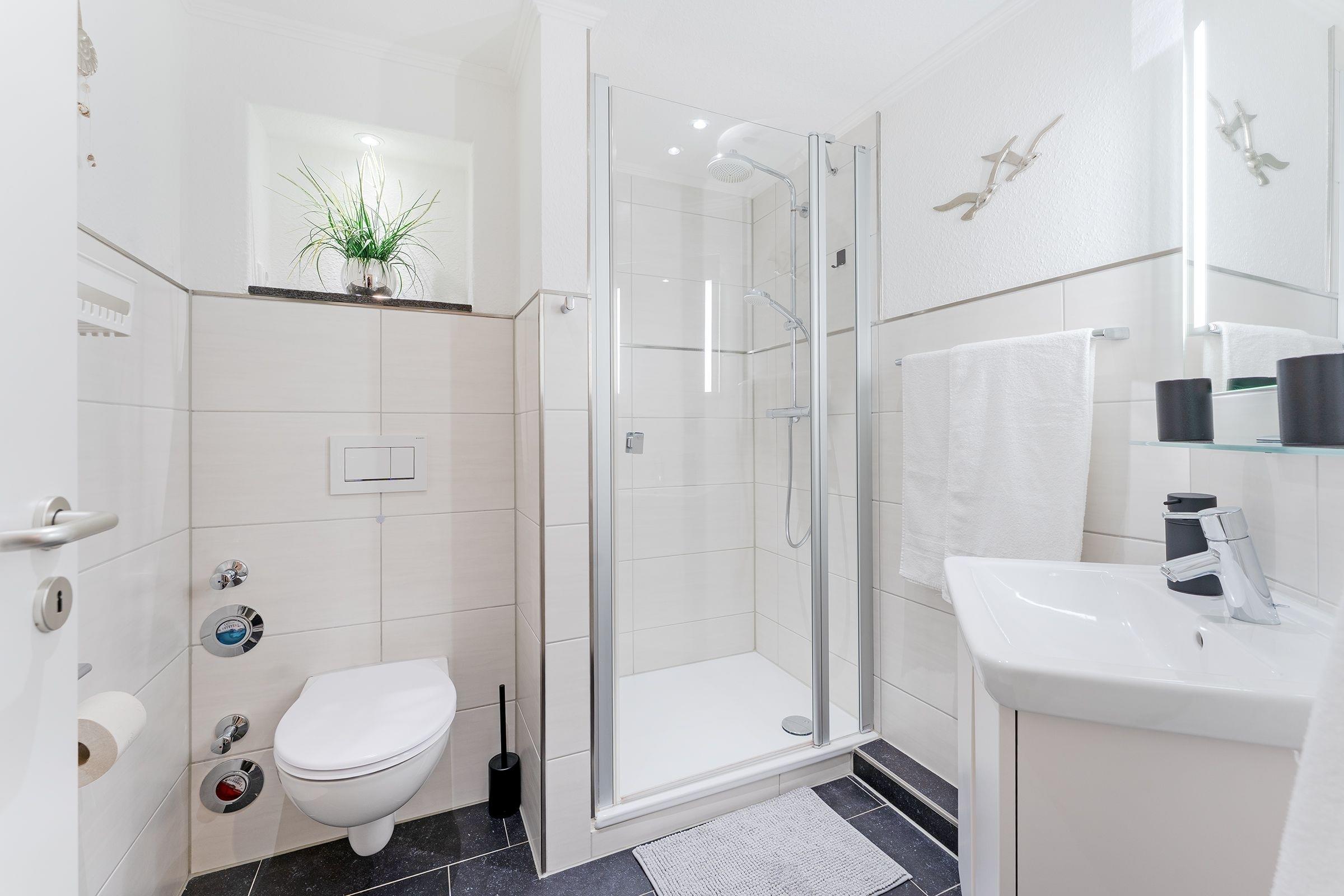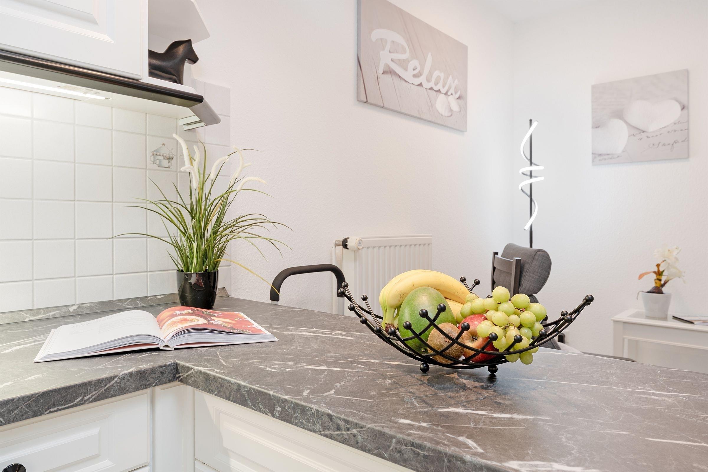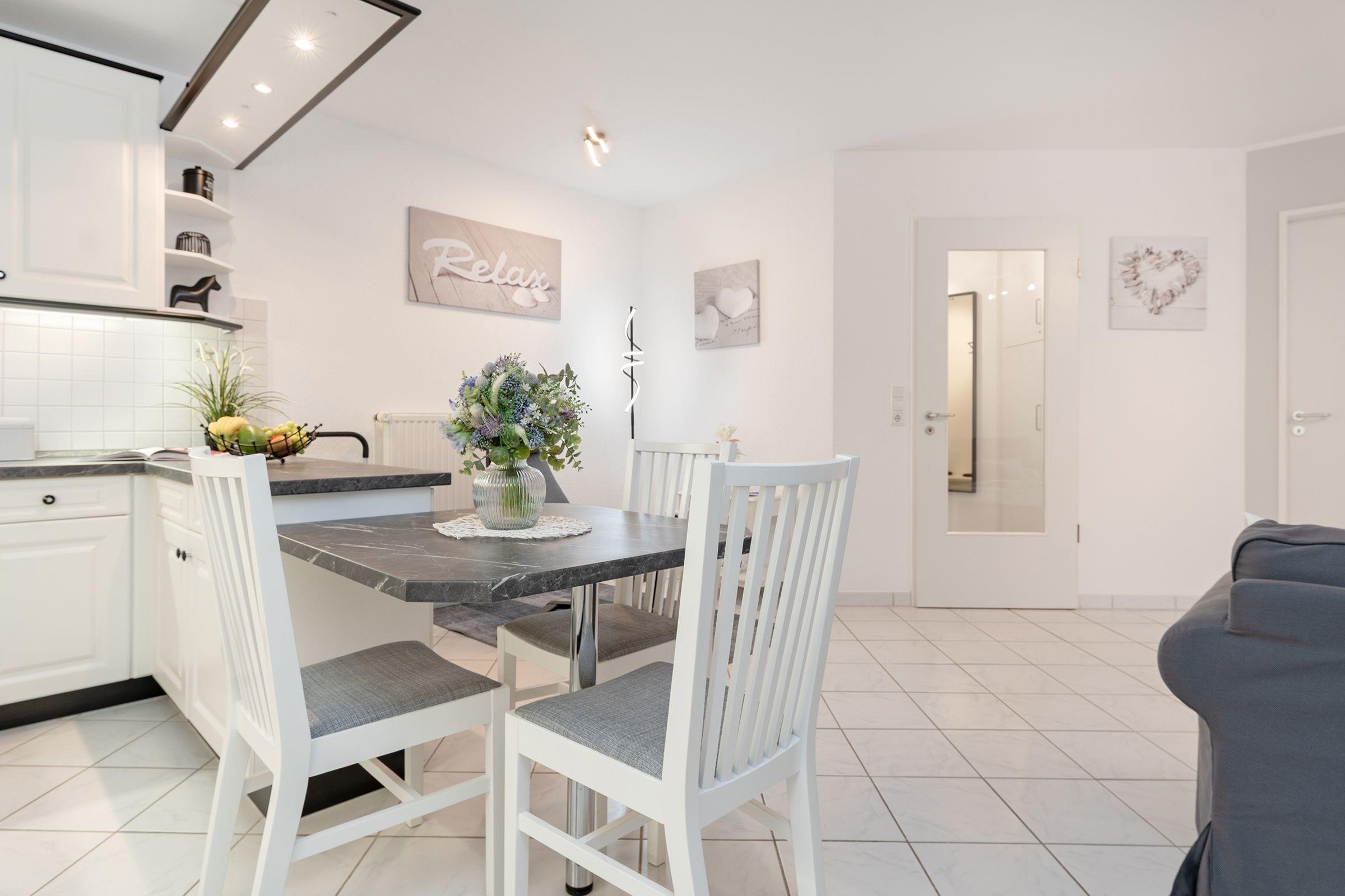 Diese stilvolle Ferienwohnung bietet Ihnen modernen Komfort und eine hervorragende Lage nahe Grömitz' feinsandigem Strand. Der Kurpark, Einkaufsmöglichkeiten und Restaurants befinden sich in direkter Nachbarschaft. Die Wohnung ist bequem über einen Aufzug erreichbar. Der helle Wohnbereich ist mit einem gemütlichen Sofa, TV und HiFi-Anlage ausgestattet und lädt zu entspannten Stunden ein. Vom Wohnbereich aus gelangen Sie auf den Balkon, der nach Südwesten ausgerichtet ist und sich ideal für ein Frühstück in der Morgensonne oder einen entspannten Abend eignet. Die offene Küche ist gut ausgestattet und verfügt über ein Cerankochfeld, Backofen, Kühlschrank mit Gefrierfach, Spülmaschine, Mikrowelle, Kaffeemaschine, Eierkocher, Toaster und Wasserkocher. Hier können Sie sich kulinarisch verwöhnen und Ihre Lieblingsgerichte selbst zubereiten. Der angrenzende Essbereich bietet Platz für Mahlzeiten in gemütlicher Runde. Das Schlafzimmer ist mit einem komfortablen Doppelbett (2x 90x200 cm) ausgestattet und sorgt für erholsame Nächte. Großzügige Staumöglichkeiten runden die Ausstattung ab. Das moderne Badezimmer verfügt über eine bodengleiche Dusche, ein Waschbecken, einen Haartrockner, Kosmetikspiegel und ein WC.
