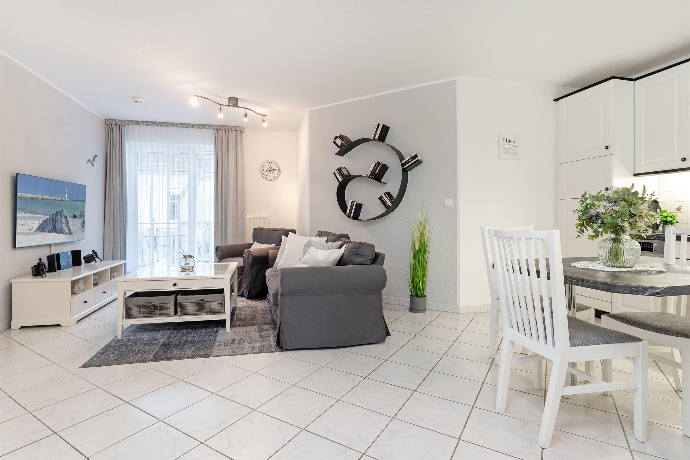 Moderne Ferienwohnung in Grömitz mit Balkon, nahe Strand und Kurpark, ideal für entspannte Tage an der Ostsee.
