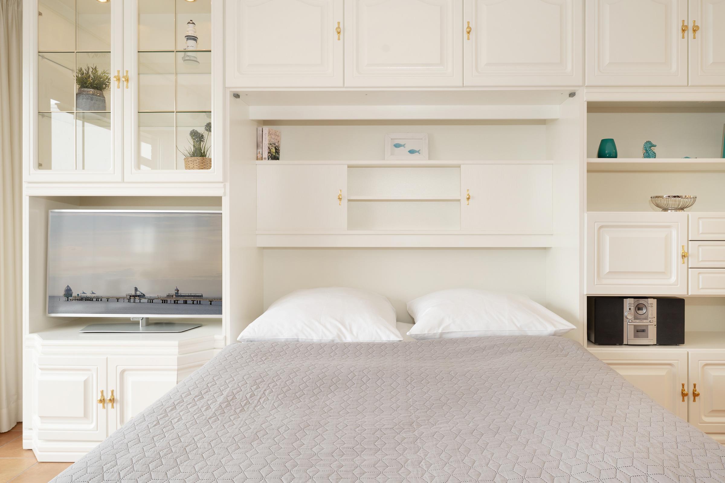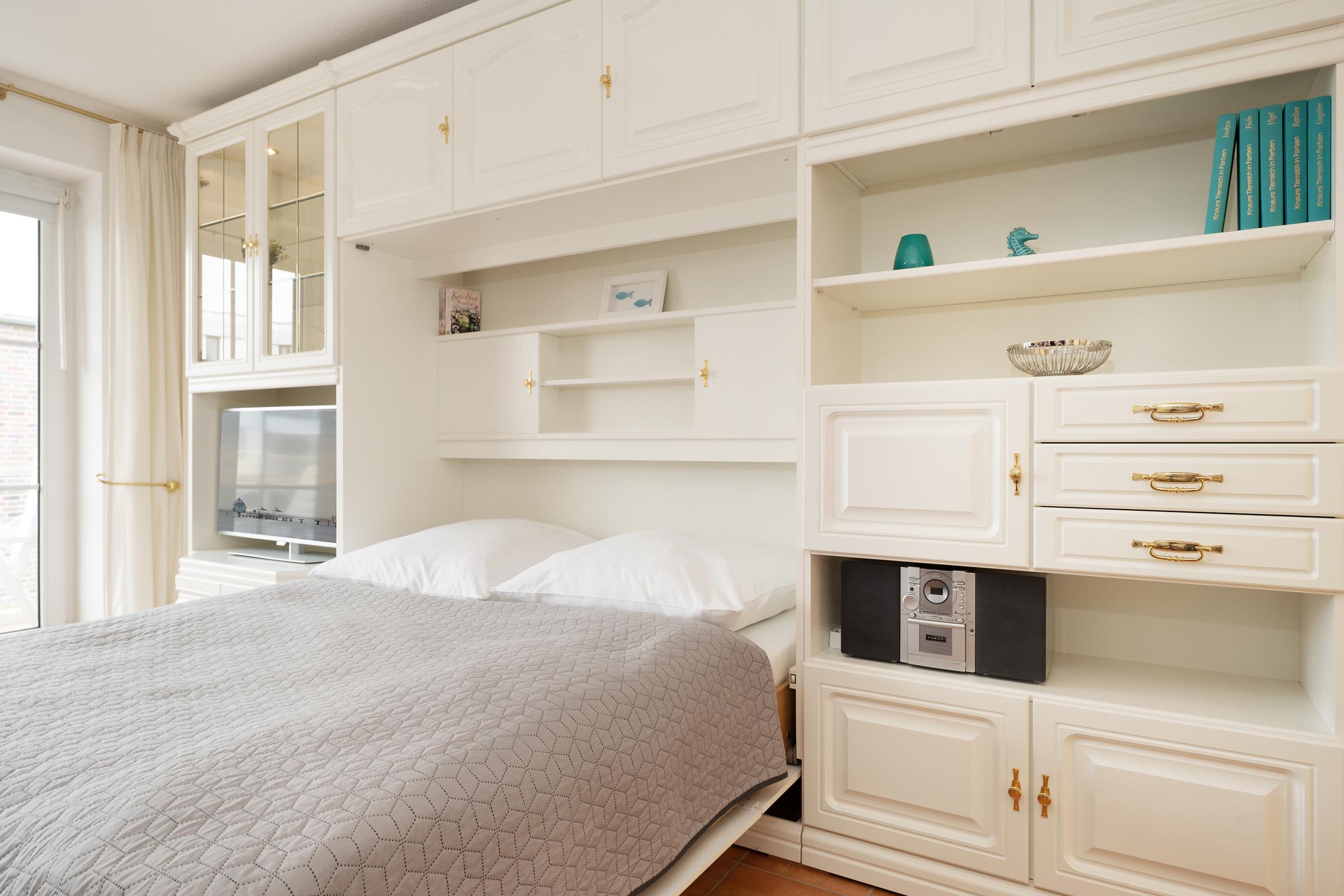 Wohn/Schlafraum: 1 Schrankbett (2x 90x200 cm), Kleiderschrank, TV, Verdunkelung: Jalousien, Platz für Babybett