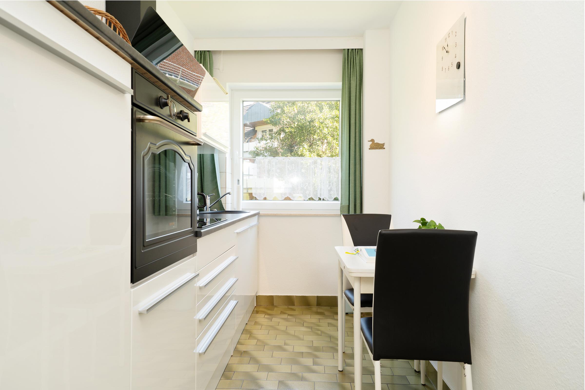 Die modern ausgestattete Ferienwohnung liegt im Hochparterre eines gepflegten Hauses in zentraler Lage von Grömitz. Der Wohnbereich bietet eine gemütliche Sitzecke, einen Flachbild-TV, CD-Player und ein Radio. Vom Wohnzimmer aus gelangen Sie direkt auf den Balkon, der mit Gartenmöbeln ausgestattet ist. Die separate Küche ist mit einer Kaffeemaschine, Mikrowelle, Wasserkocher, Toaster, Spülmaschine und einem 4-Platten-Induktionsherd ausgestattet. Das Schlafzimmer verfügt über ein bequemes Doppelbett, ein weiteres Wohn-/Schlafzimmer ist mit einer Schlafcouch ausgestattet und bietet zusätzlichen Raum zur Erholung. Das Badezimmer verfügt über eine Dusche, sowie über ein Waschbecken und ein WC. Ein Kinderhochstuhl sowie ein Kinderreisebett stehen zur Verfügung.