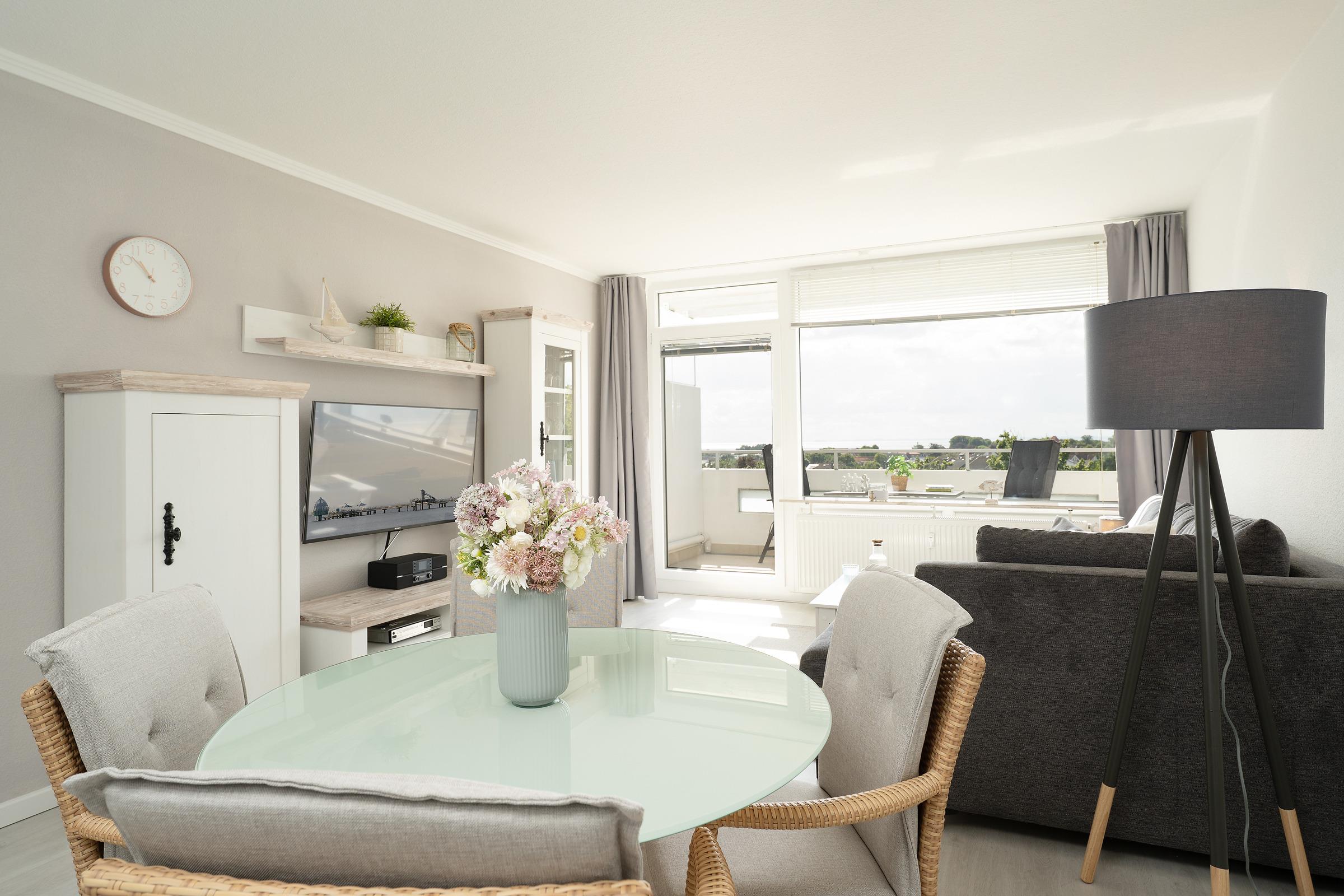 Charmante Ferienwohnung in Grömitz mit Meerblick, Balkon und moderner Ausstattung für erholsame Tage an der Ostsee.