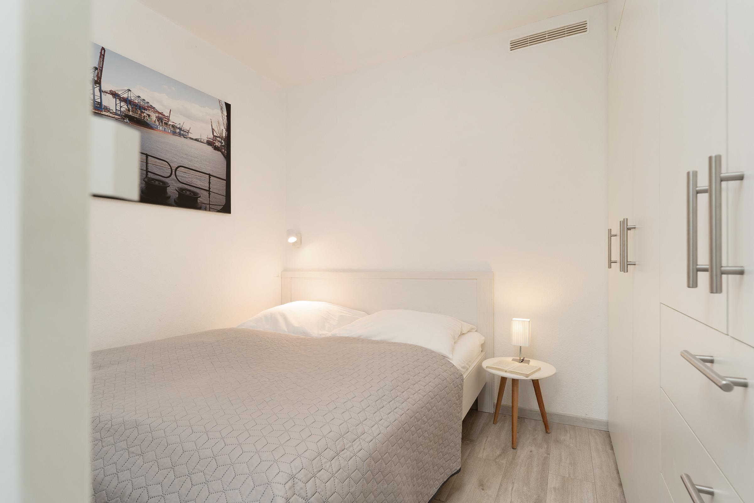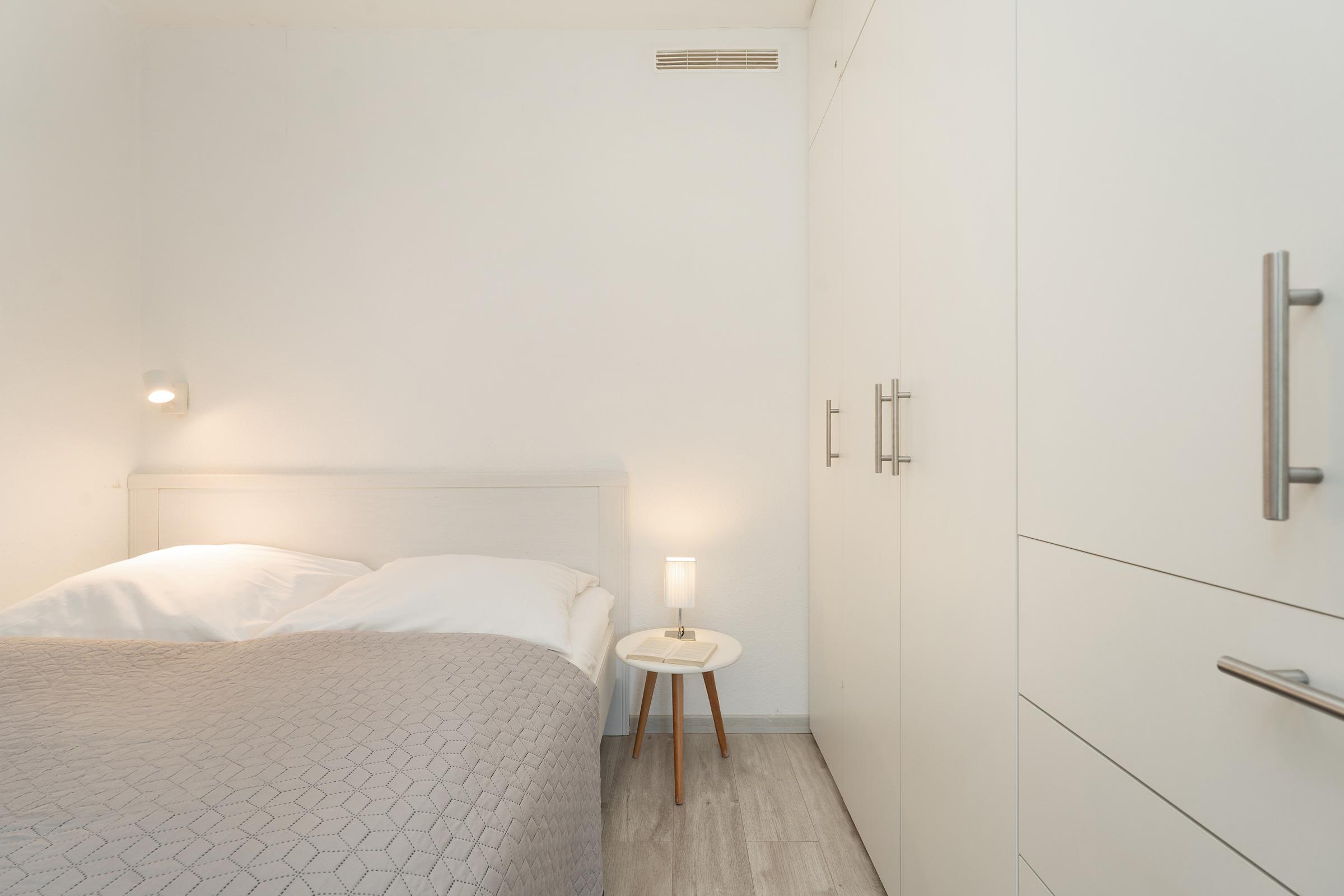 Schlafzimmer 1: 1 Doppelbett (160x200 cm), Kleiderschrank, Verdunkelung: Zimmertür, kein Platz für ein Babybett vorhanden