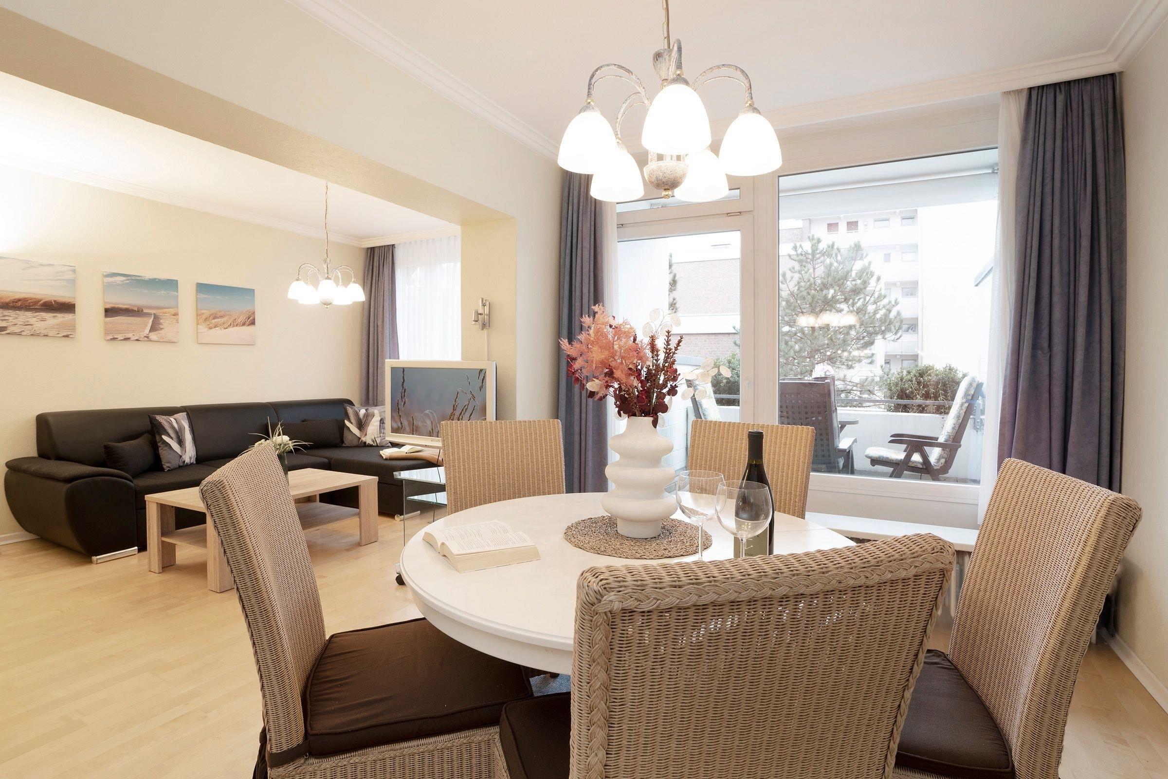 Helle Ferienwohnung mit Balkon, Sauna und Meerblick in Grömitz, nur wenige Schritte von der Ostsee entfernt.