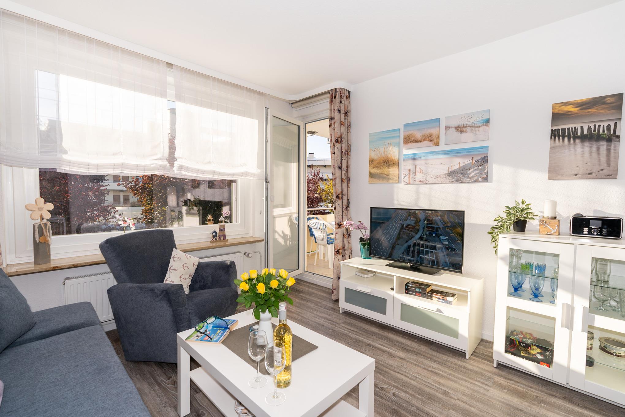 Gemütliche Ferienwohnung in Grömitz, nur 200 m vom Strand und Dünenpark entfernt, ideal für entspannten Urlaub mit Balkon und kostenfreier Garage.