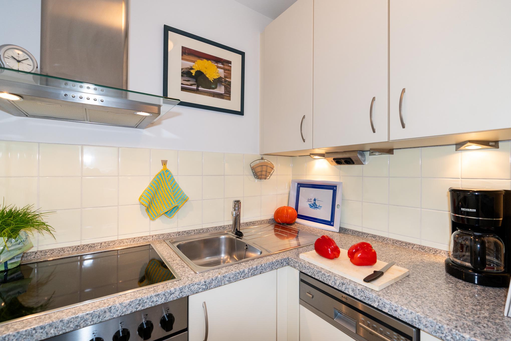 Die separate Küche mit Cerankochfeld (4 Felder), Backofen, Spülmaschine, Kühlschrank mit Gefrierfach und vielen weiteren Elektro-Kleingeräten wie Mikrowelle, Toaster, Kaffeemaschine usw. bietet alles für die Zubereitung Ihrer Mahlzeiten.