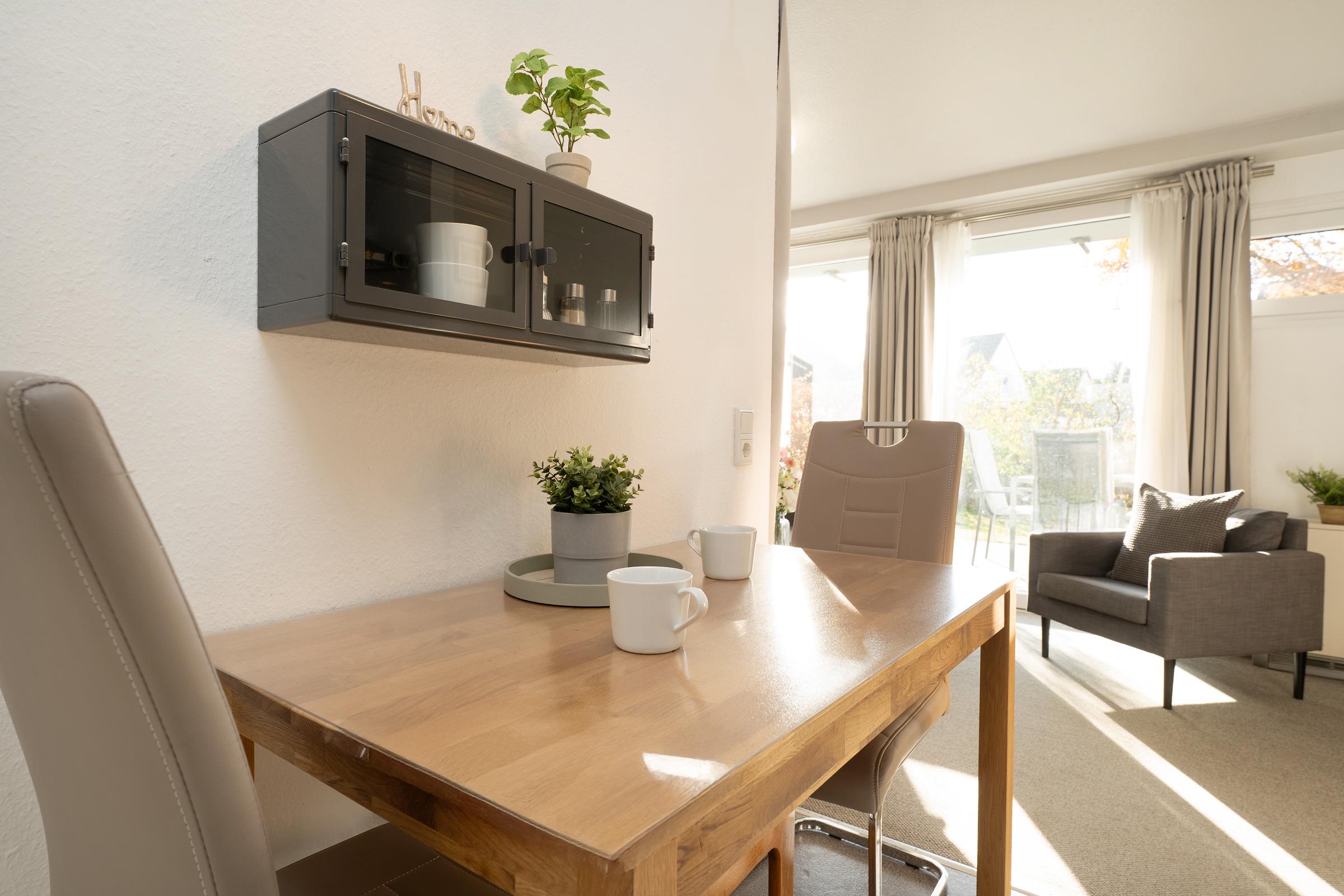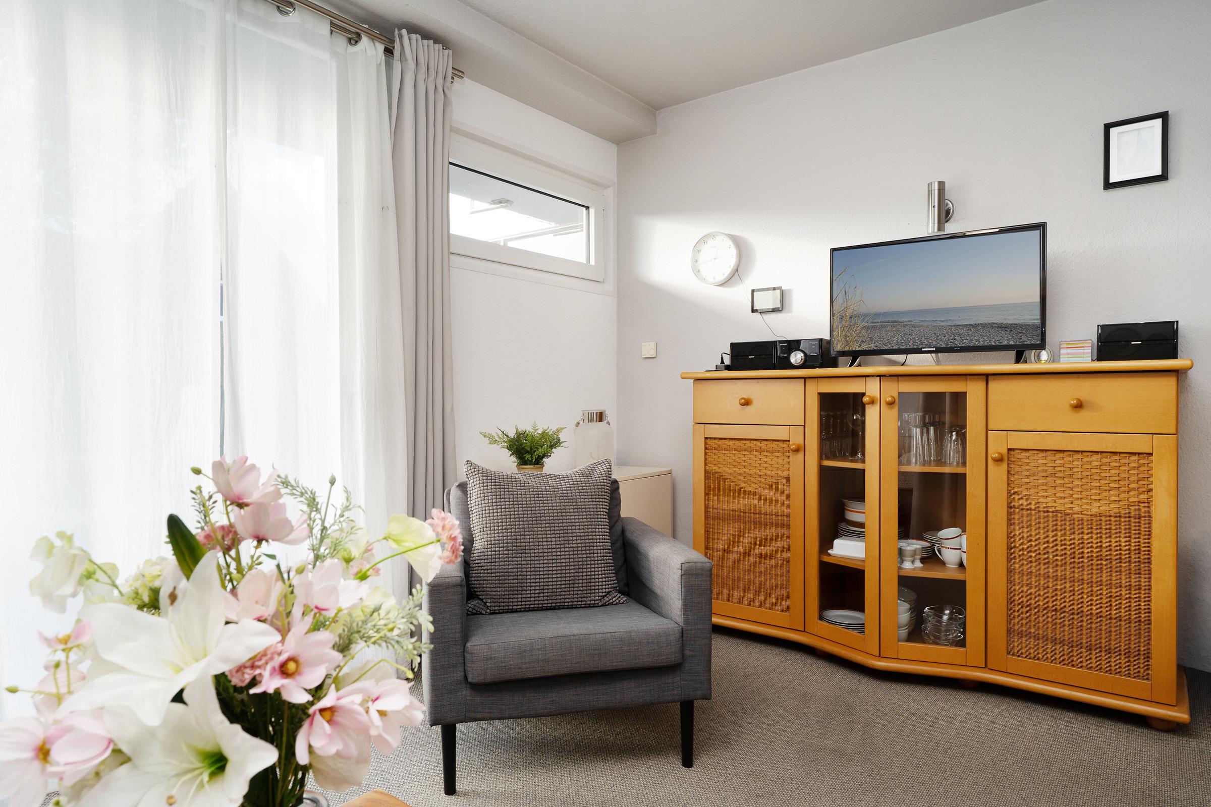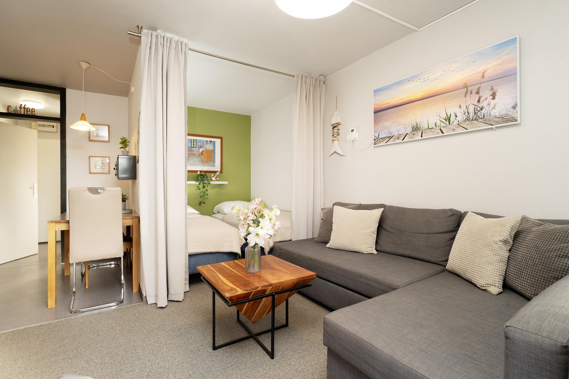 Diese liebevoll eingerichtete Ferienwohnung im Erdgeschoss lädt zum Wohlfühlen und Entspannen ein. Der offene Wohn- und Schlafbereich ist geschmackvoll gestaltet und bietet bequemes Schlafmöglichkeiten für zwei Personen, einen Flachbild-TV sowie eine gemütliche Sitzecke zum Ausruhen. Vom Wohnbereich gelangen Sie direkt auf die sonnige, südlich ausgerichtete Terrasse – ideal, um den Tag mit einem Frühstück an der frischen Ostseeluft zu beginnen oder den Abend bei einem Glas Wein ausklingen zu lassen.