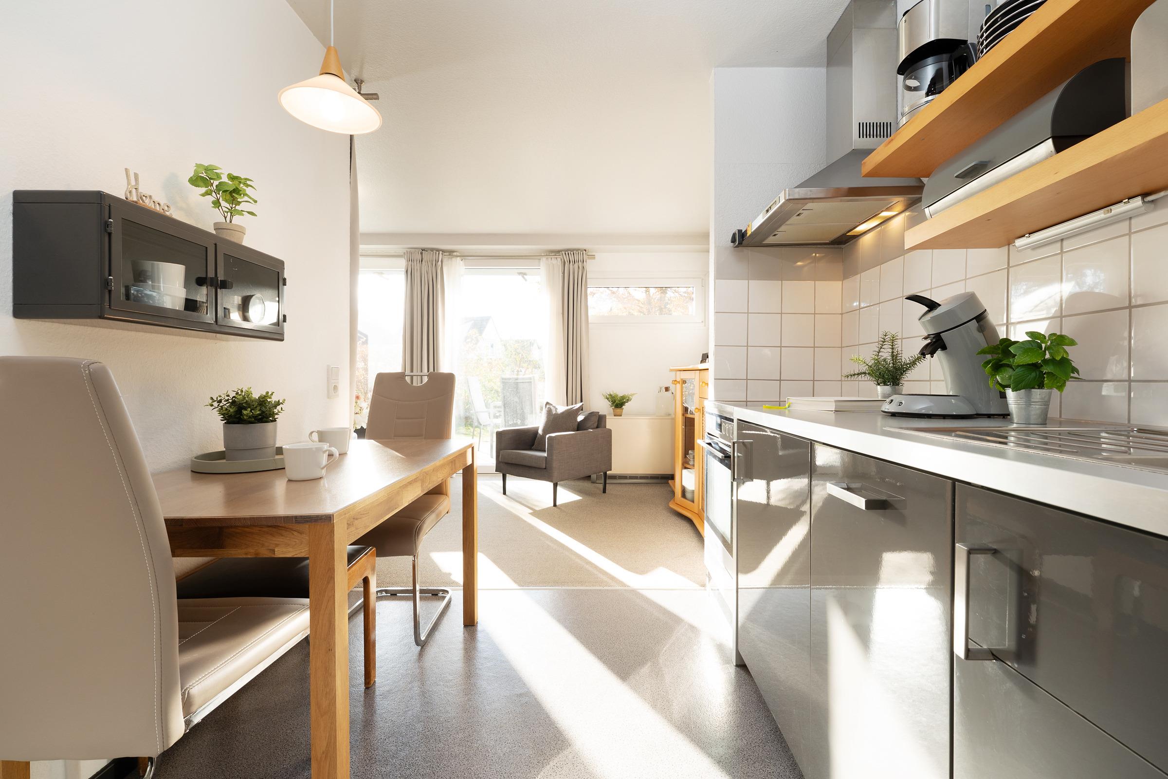Die moderne Küchenzeile ist mit Backofen, Cerankochfeld, Kühlschrank mit Gefrierfach, Geschirrspüler, Kaffeemaschine, Wasserkocher und Toaster ausgestattet – hier finden Sie alles, um Ihre Lieblingsgerichte auch im Urlaub zuzubereiten. Das Badezimmer verfügt über eine Dusche mit Haltegriff, WC, Handtuchheizkörper, Kosmetikspiegel und Haartrockner.