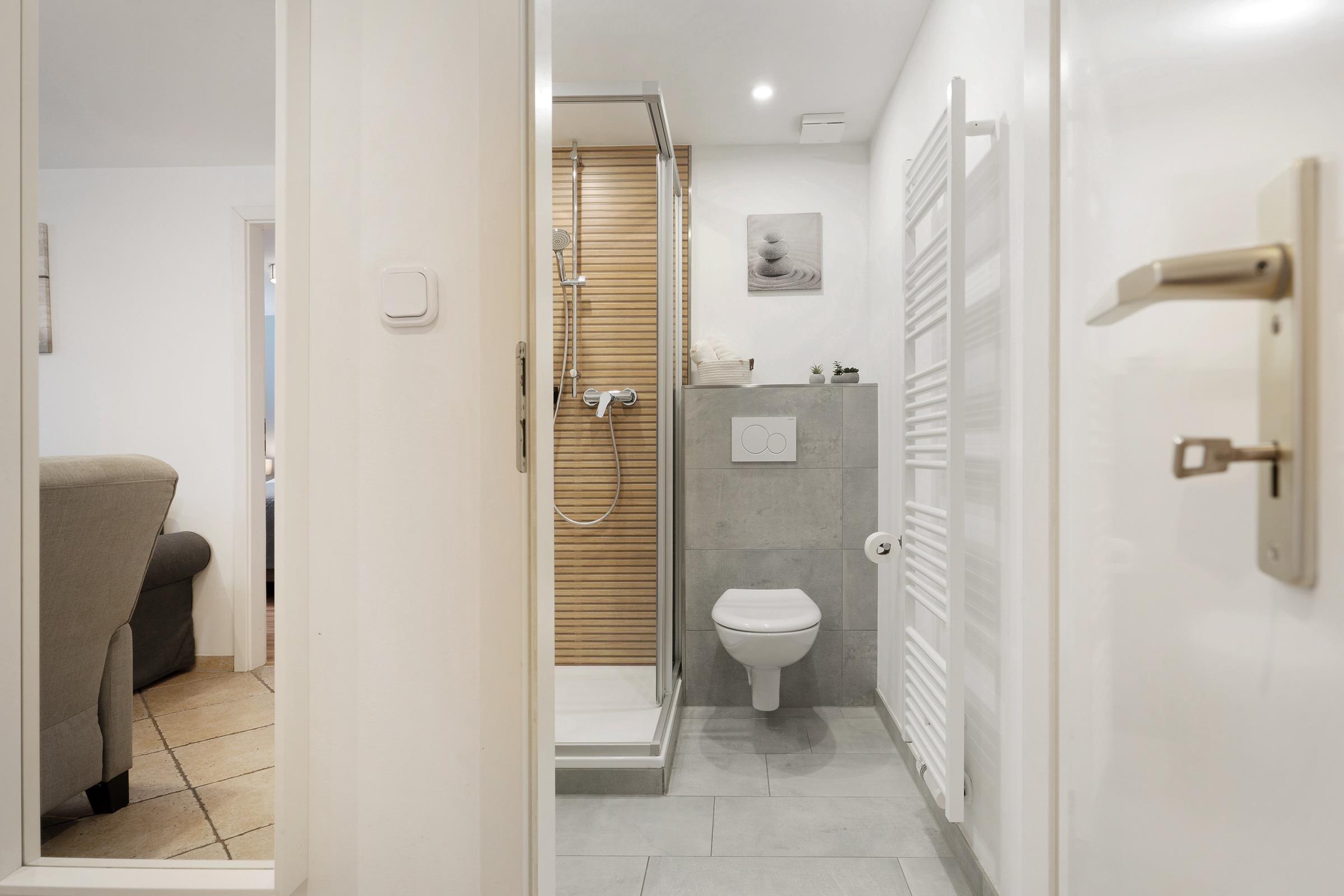 Die moderne Küchenzeile bietet alles, was Sie zum Kochen benötigen: Backofen, Geschirrspüler, Kochfeld mit vier Platten, Kühlschrank mit Gefrierfach, Kaffeemaschine, Kapselmaschine, Wasserkocher und Toaster. Der angrenzende Essbereich lädt zu gemeinsamen Mahlzeiten ein. Das separate Schlafzimmer sorgt für erholsame Nächte. Das Bad ist mit Dusche sowie WC komfortabel ausgestattet.