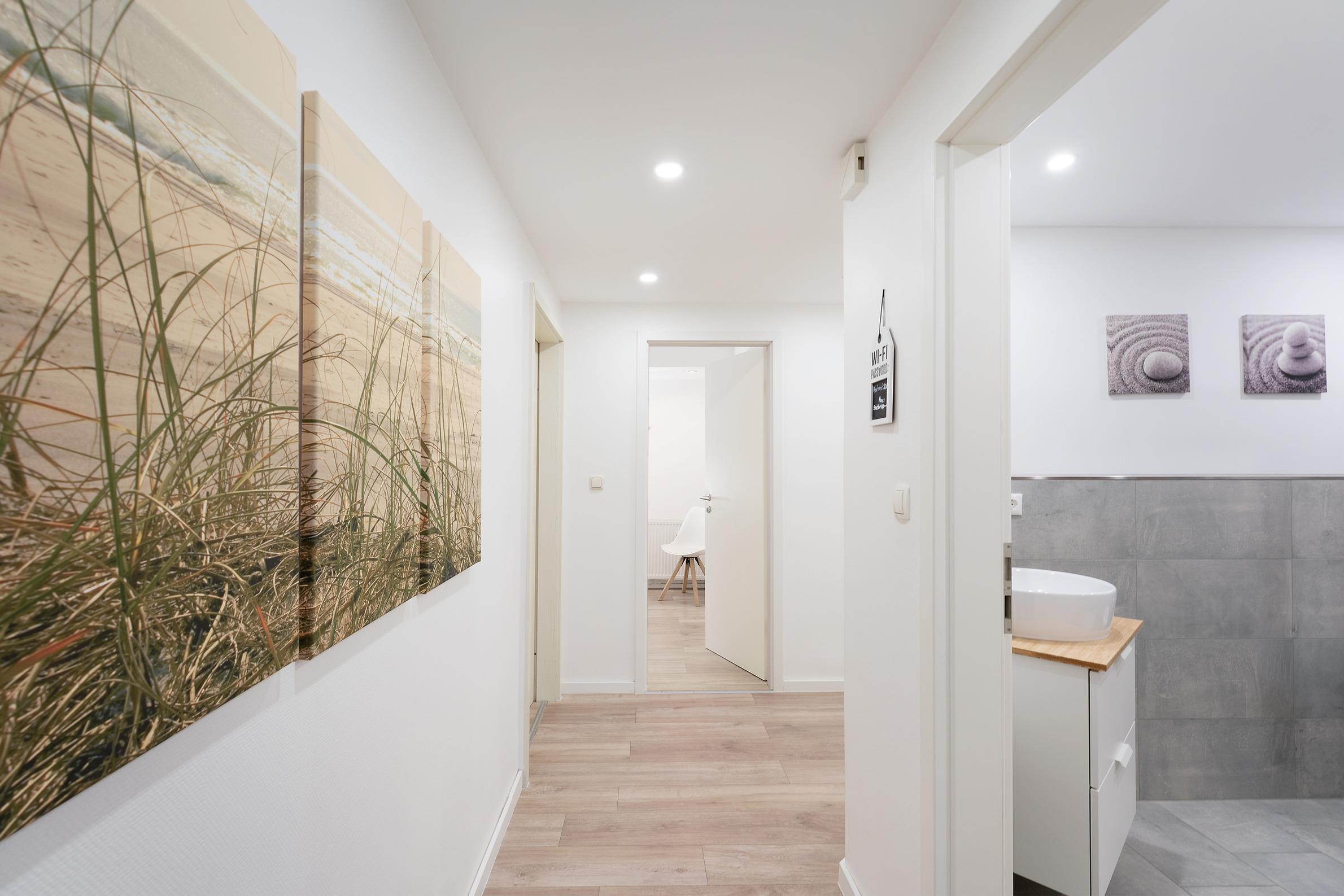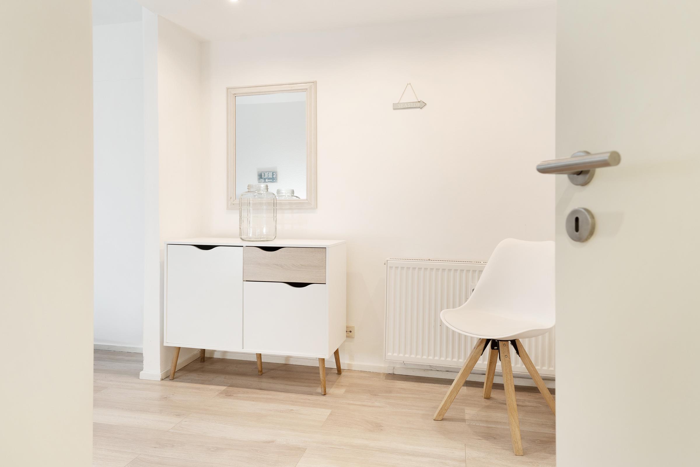 Die modern ausgestattete Wohnung heißt Sie mit einem einladenden Wohnbereich willkommen, der mit Fernseher und Radio zu gemütlichen Stunden einlädt. Von hier aus gelangen Sie auf die möblierte Süd-West Terrasse, auf der Sie die frische Ostseeluft und sonnige Stunden genießen können.