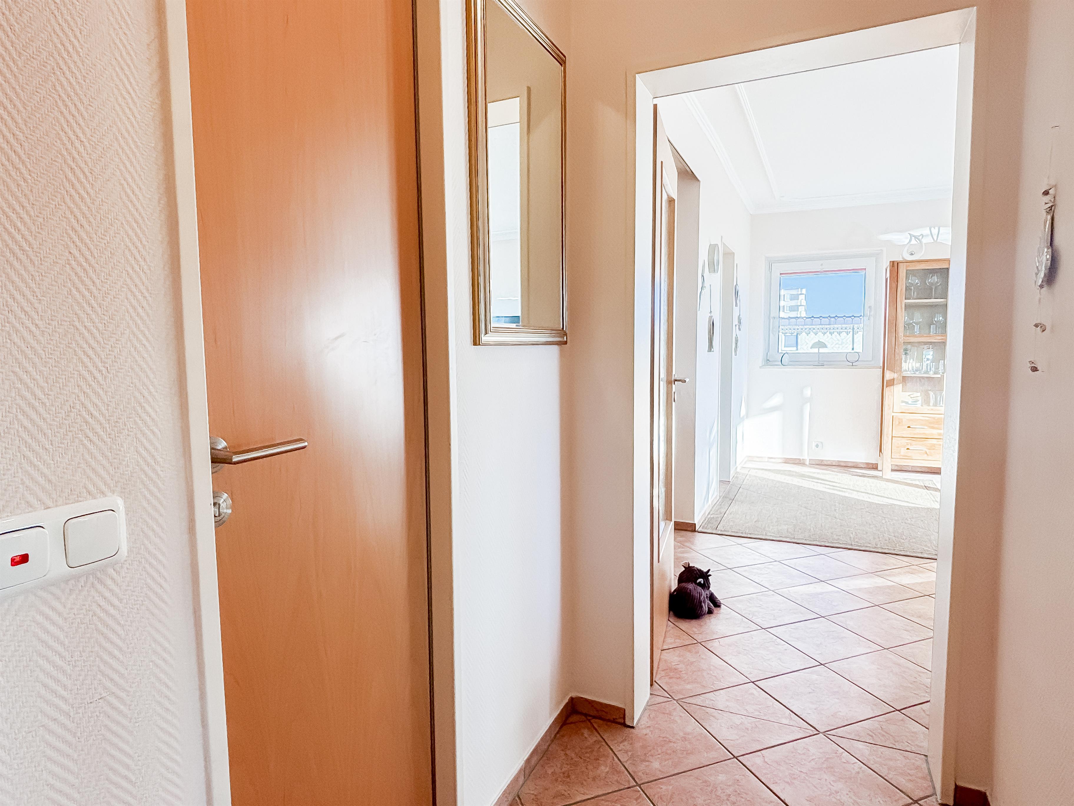 Die Wohnung ist durchgehend gefliest und durch Jalousien zu Verdunkeln. Zur Wohnung gehört ein nummerierter PKW-Abstellplatz und ein Fahrradstellplatz. Weiterhin gibt es in diesem Haus eine Waschmaschine und einen Trockner mit Münzautomat. Es handelt sich um eine Nichtraucherwohnung.