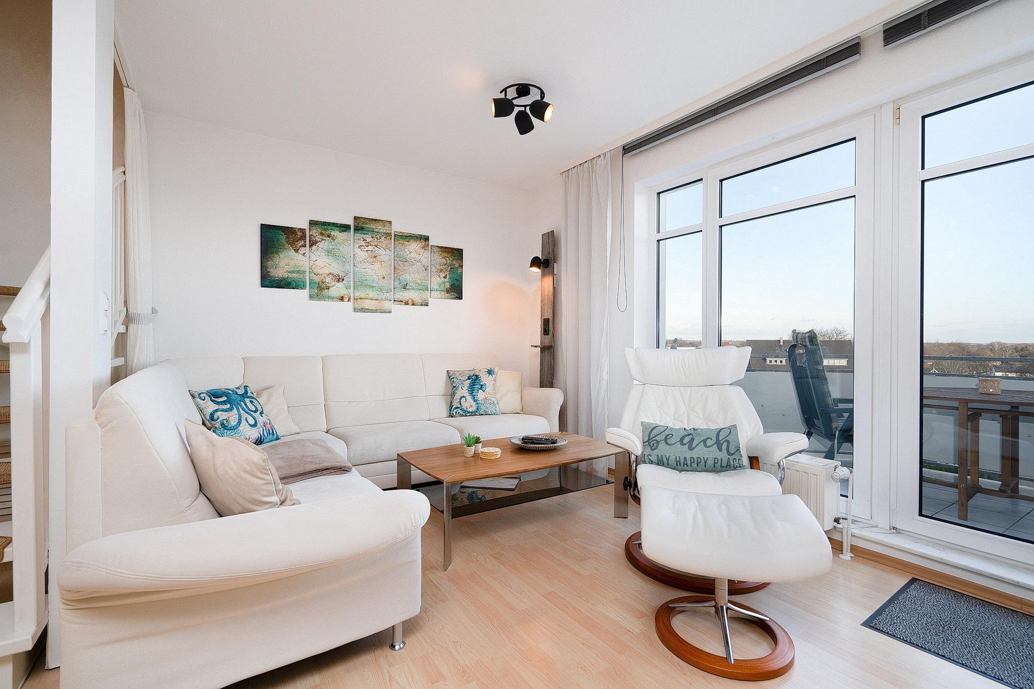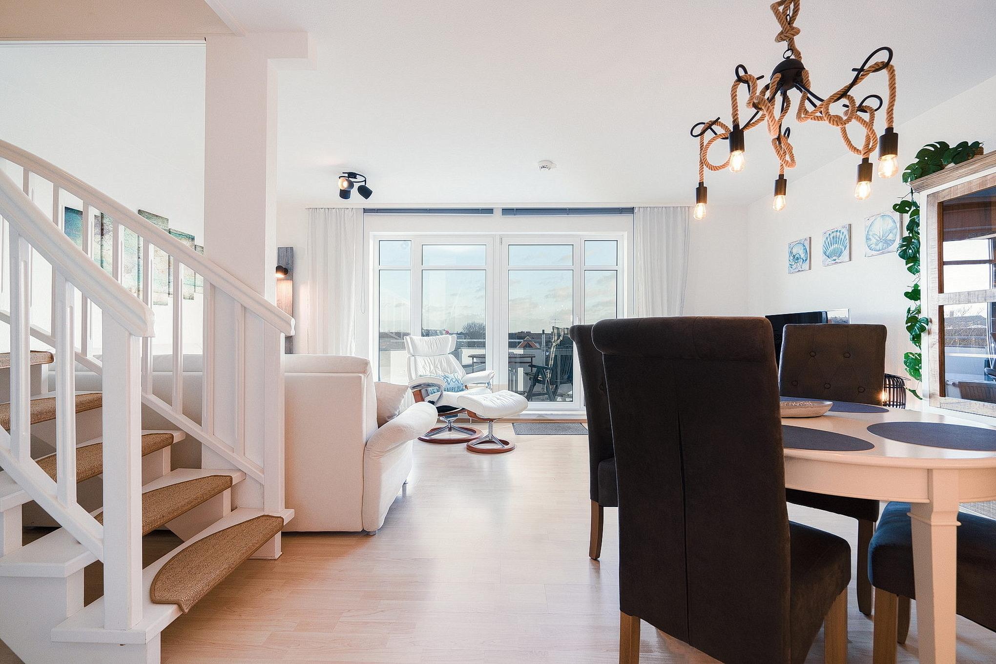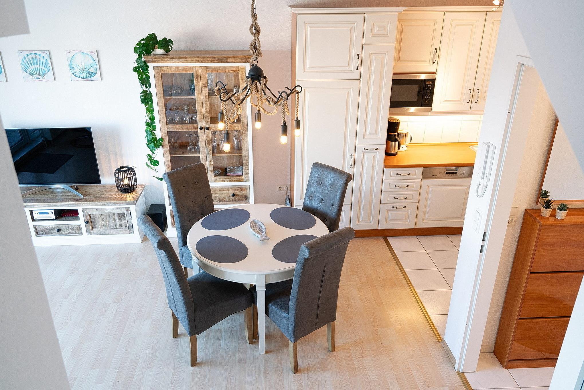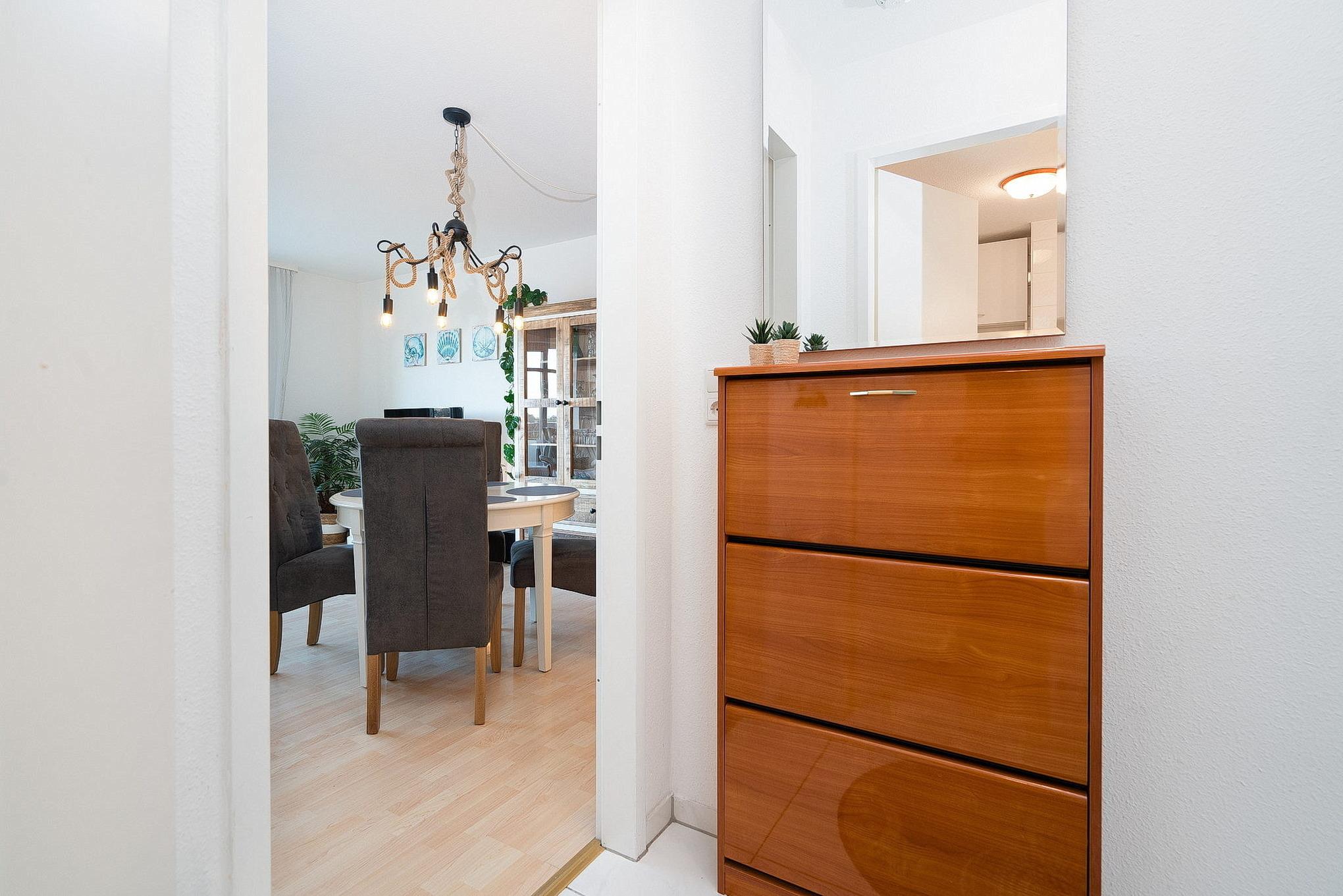 Moderne Ferienwohnung in Grömitz mit Balkon, Aufzug und zentraler Lage nahe Kurpark und Einkaufsmöglichkeiten.