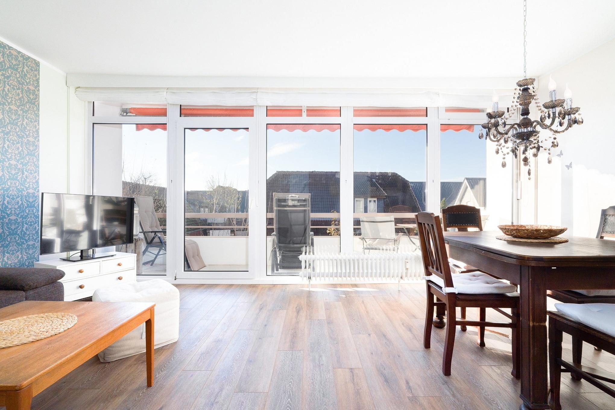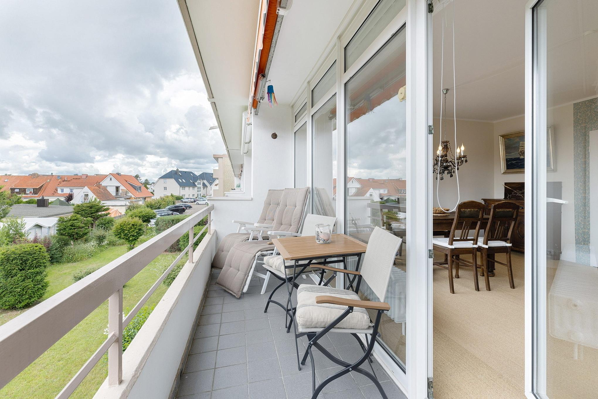 Gemütliche Ferienwohnung direkt am Deich in Grömitz mit Balkon und Strandnähe für erholsame Tage.