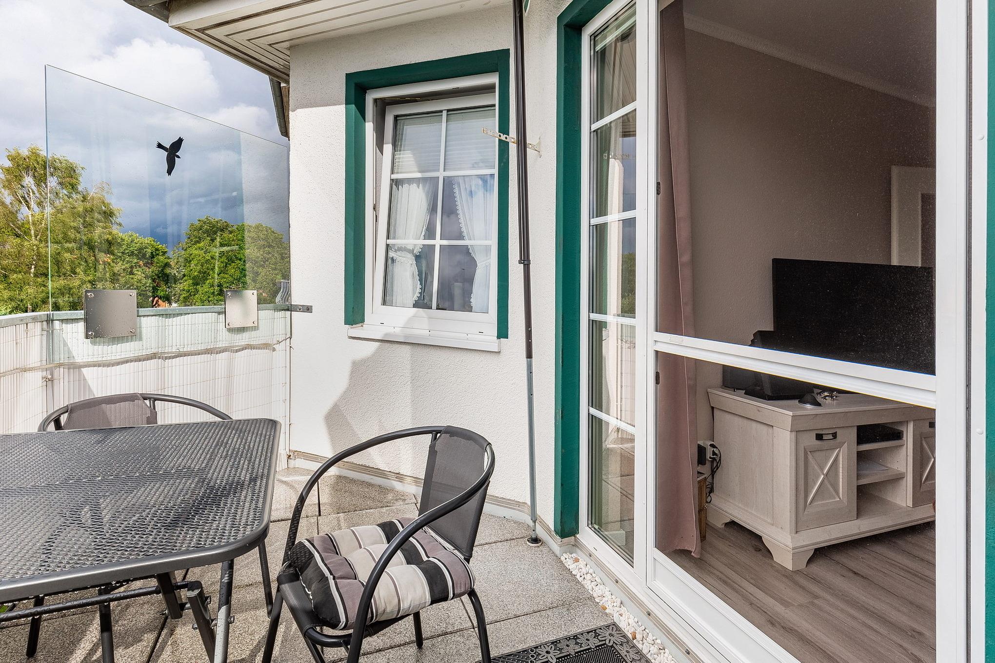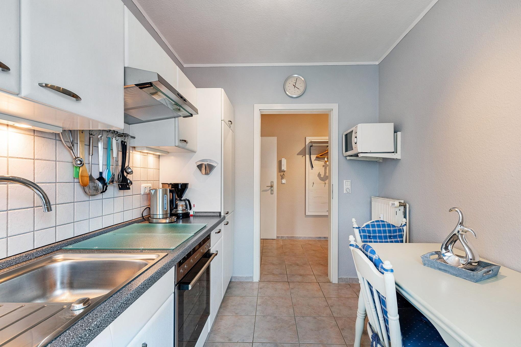 Moderne Ferienwohnung in Grömitz mit Balkon, Fahrstuhl und kompletter Küchenausstattung für erholsamen Urlaub.