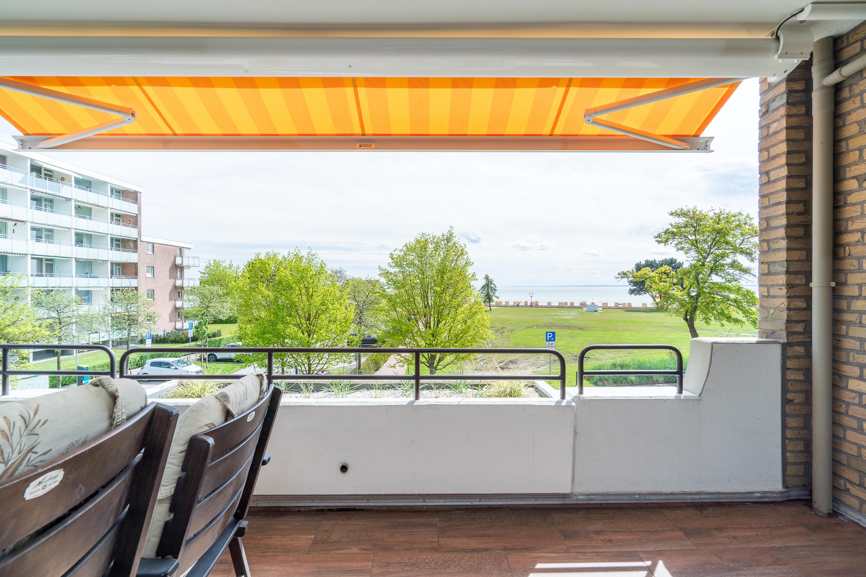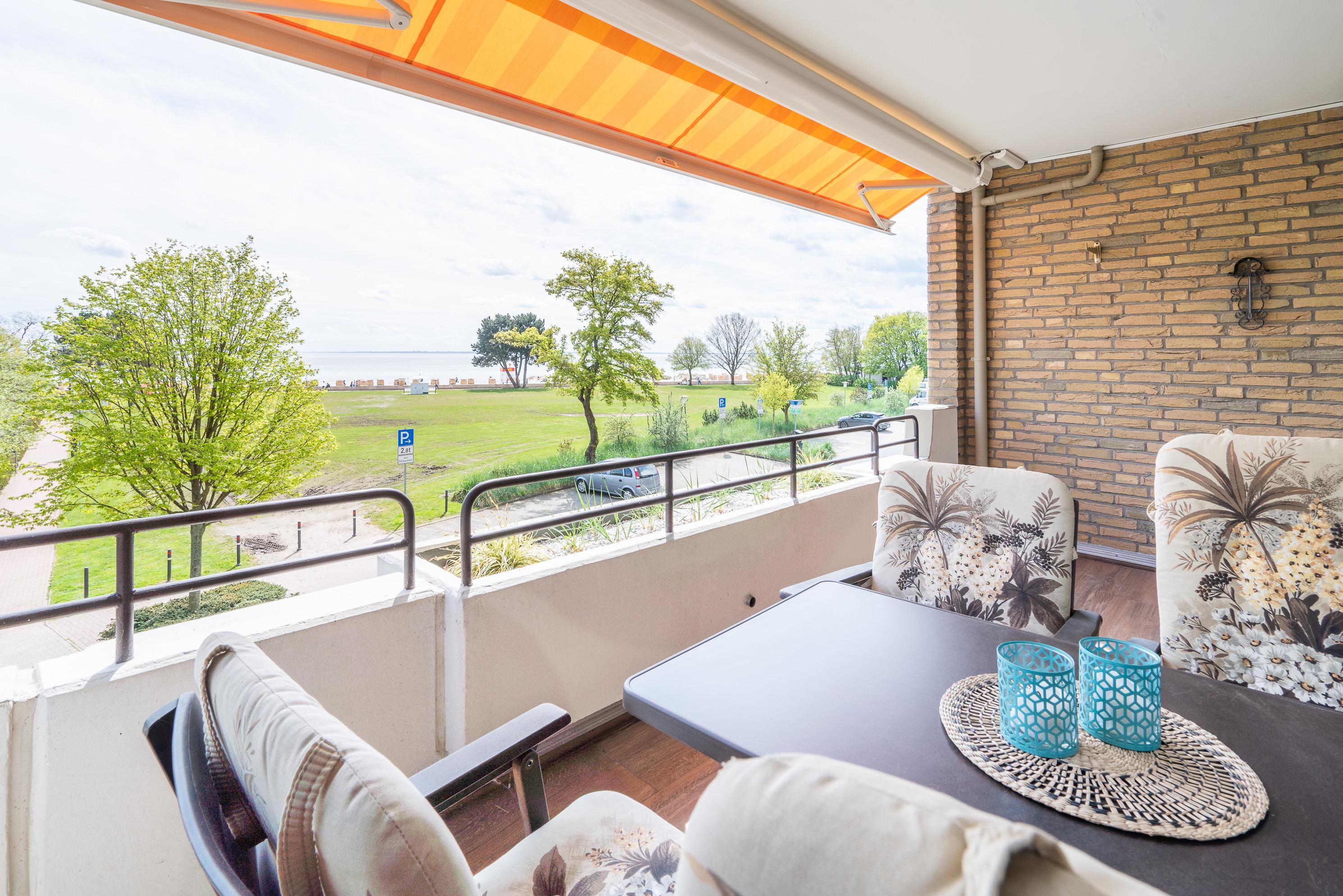 Strandnahe Ferienwohnung in Grömitz mit Balkon und direktem Meerblick für erholsamen Urlaub.