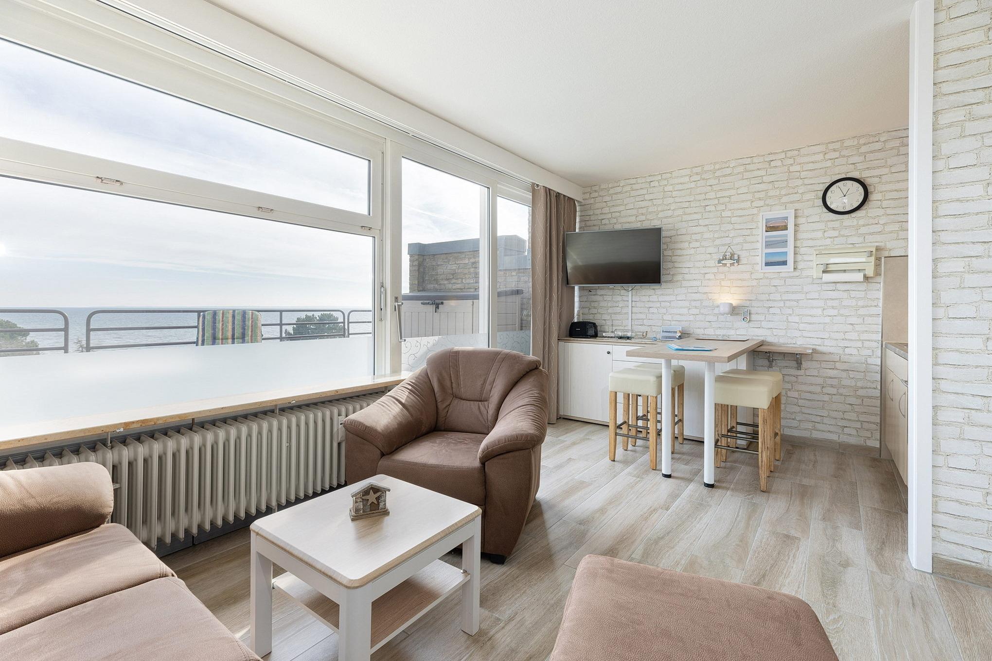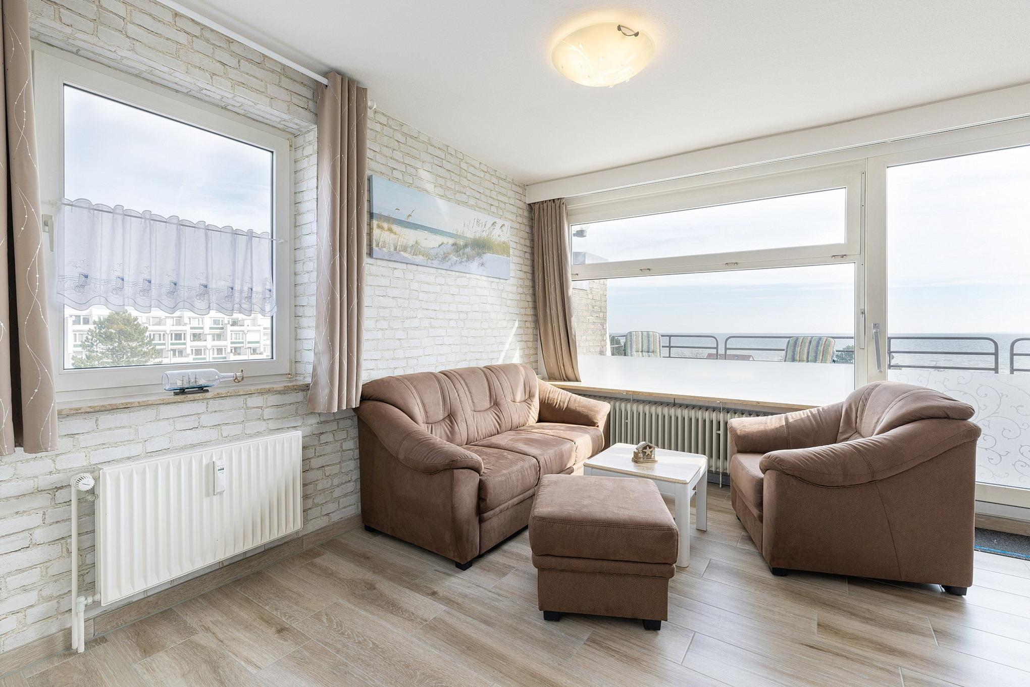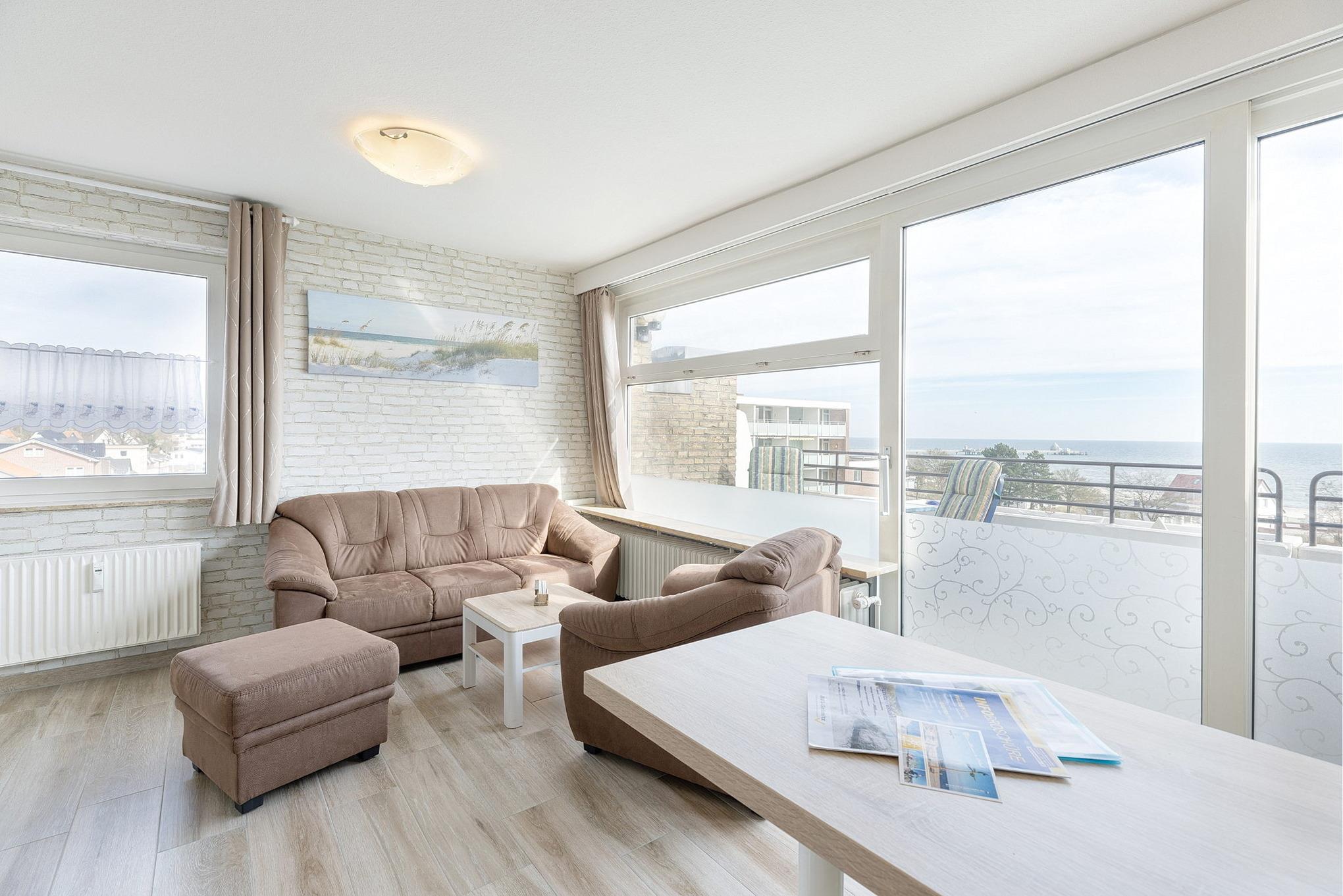 Moderne Ferienwohnung in Grömitz mit Meerblick, Balkon und zentraler Lage nahe Strand und Yachthafen.