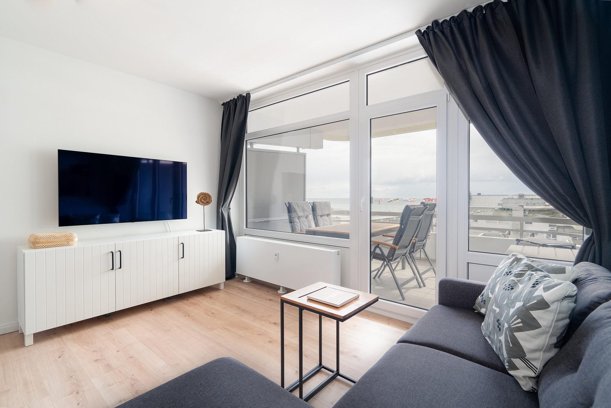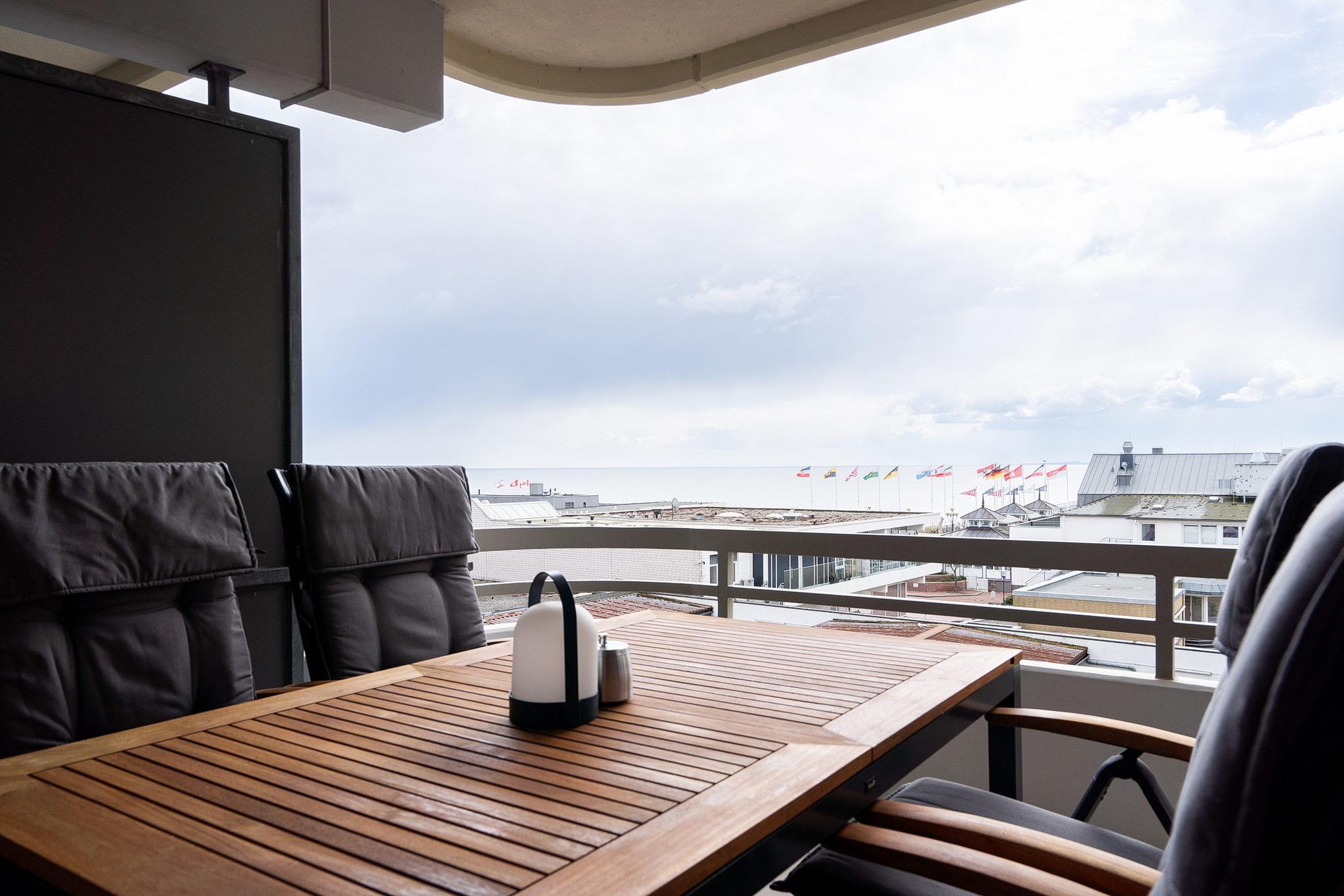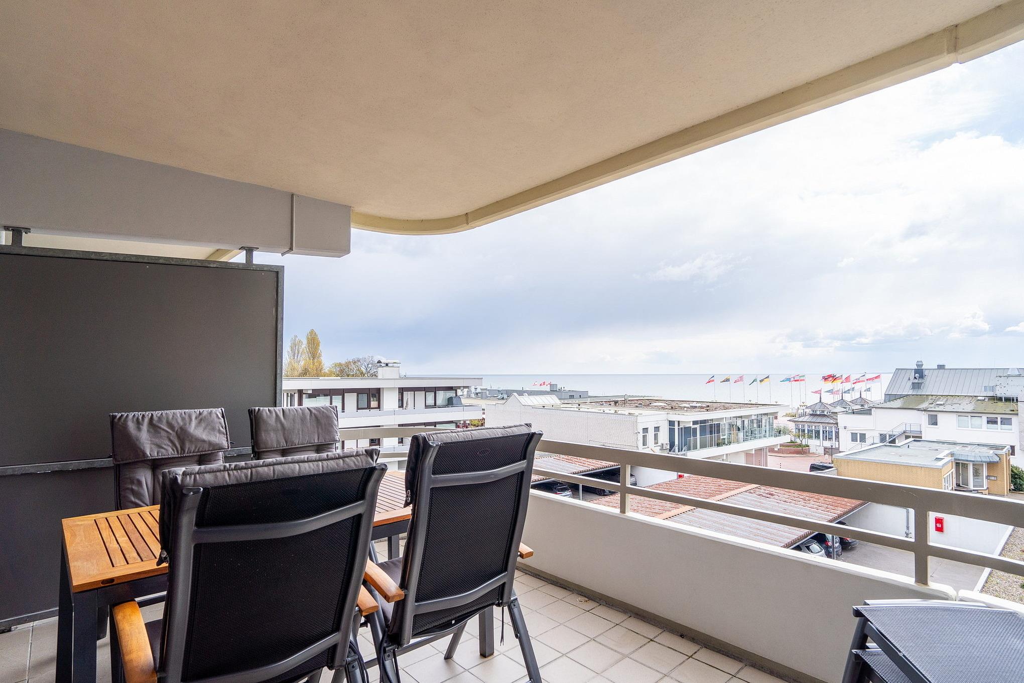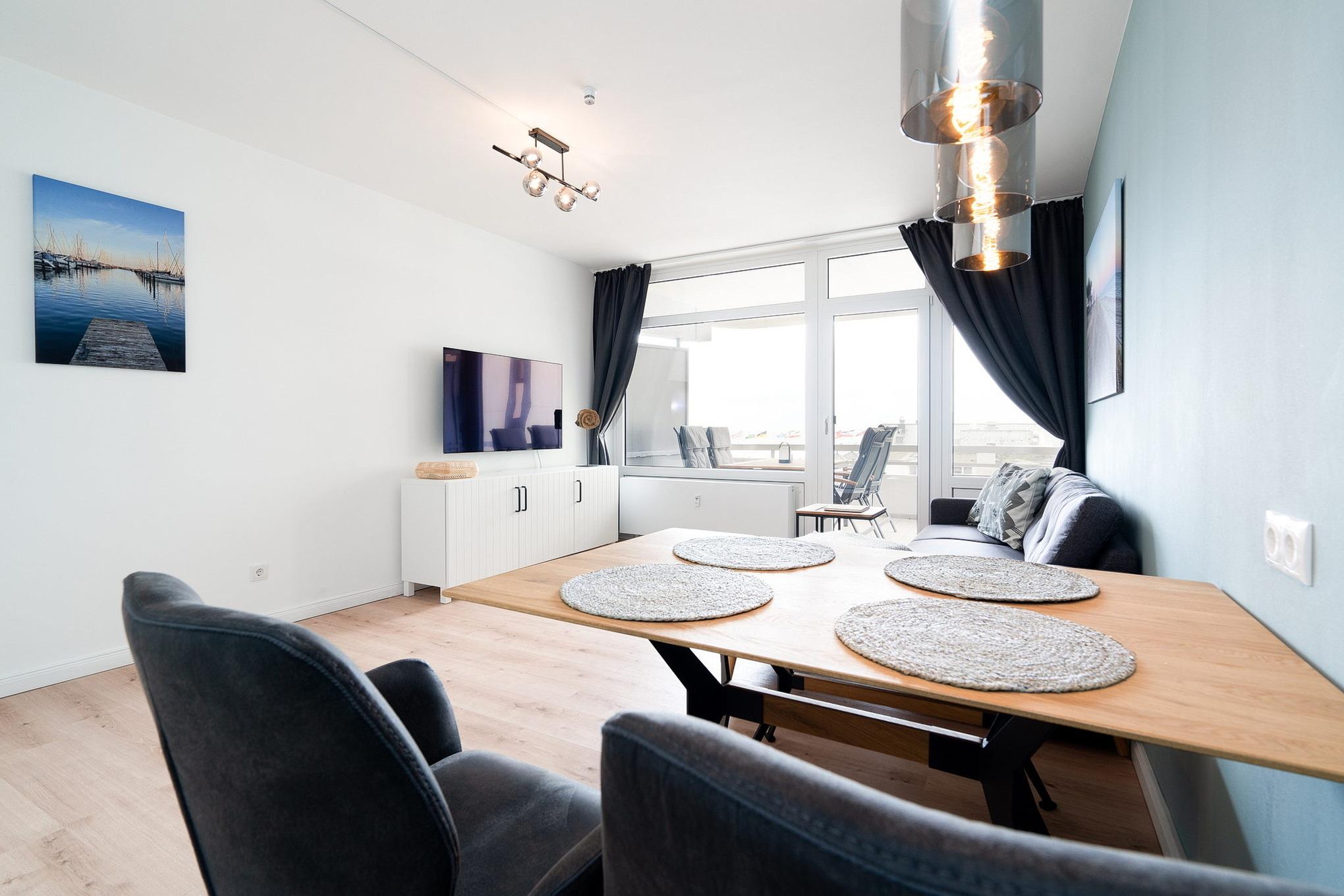 Moderne Ferienwohnung in Grömitz mit Meerblick, Balkon und praktischer Ausstattung für einen erholsamen Aufenthalt.