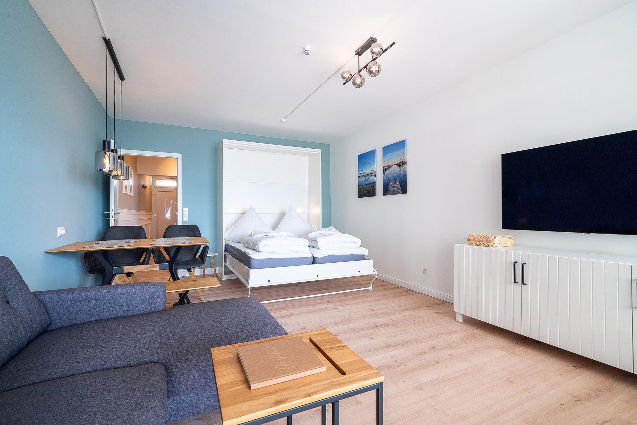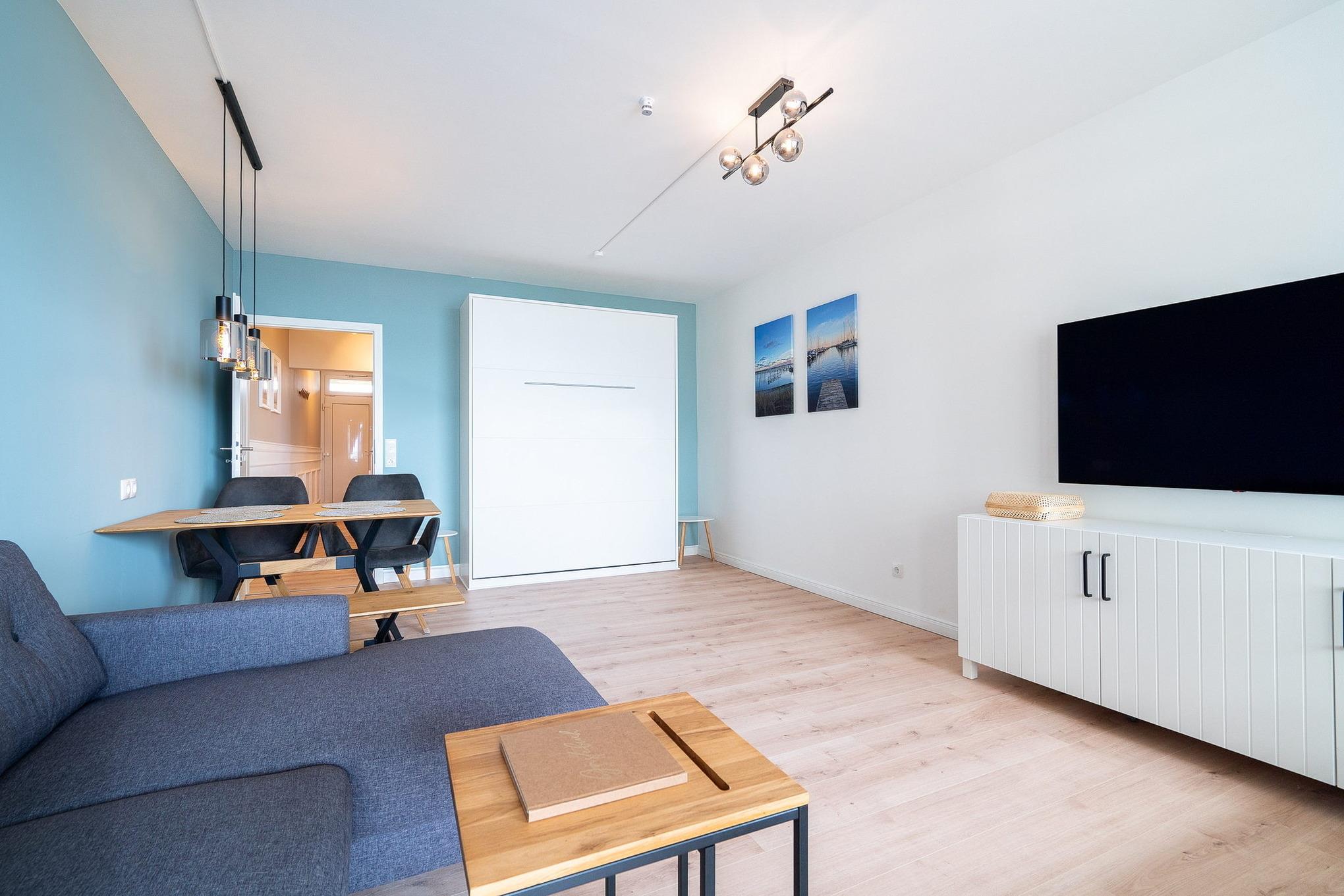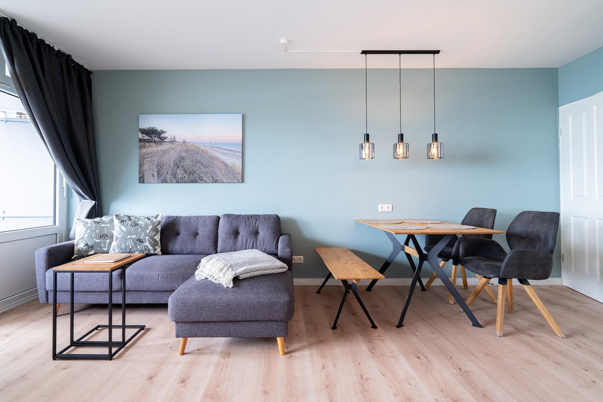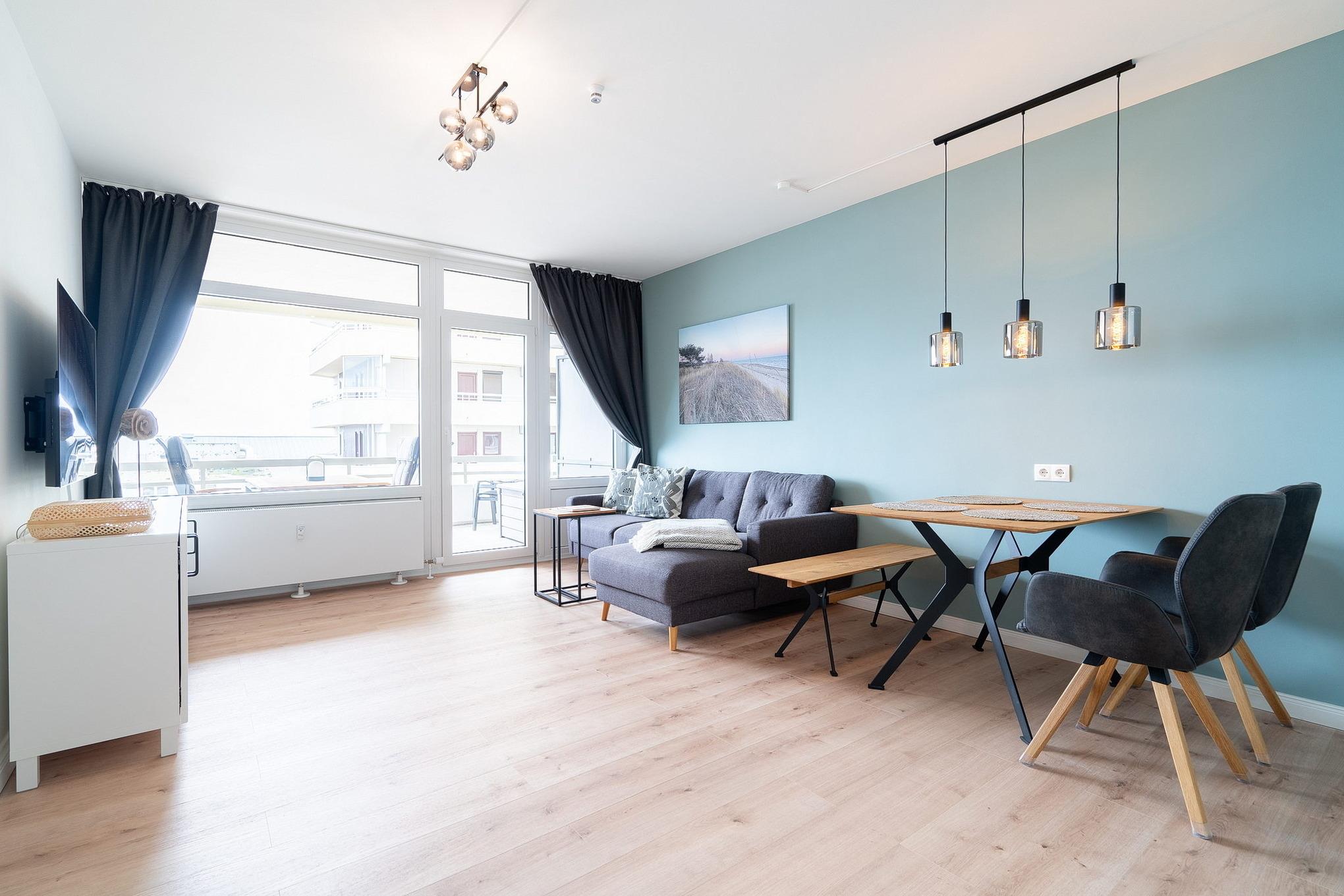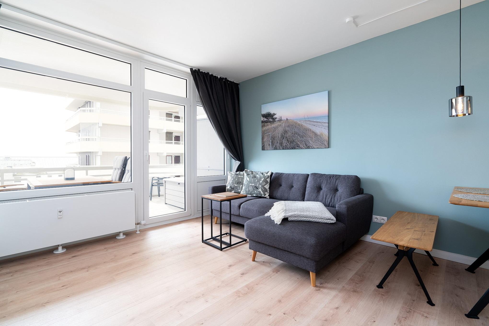 Moderne Ferienwohnung in Grömitz mit Meerblick, Balkon und praktischer Ausstattung für einen erholsamen Aufenthalt.