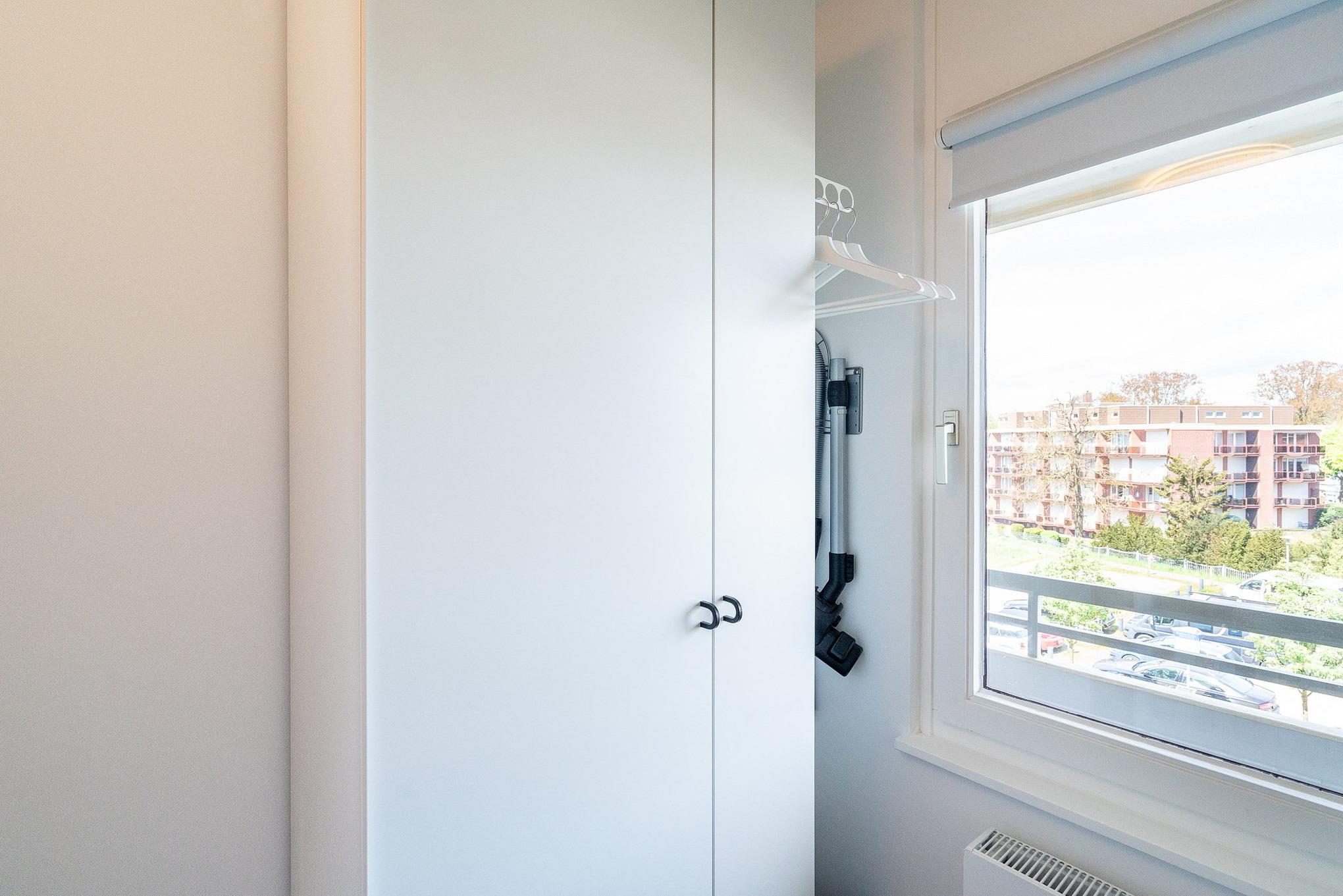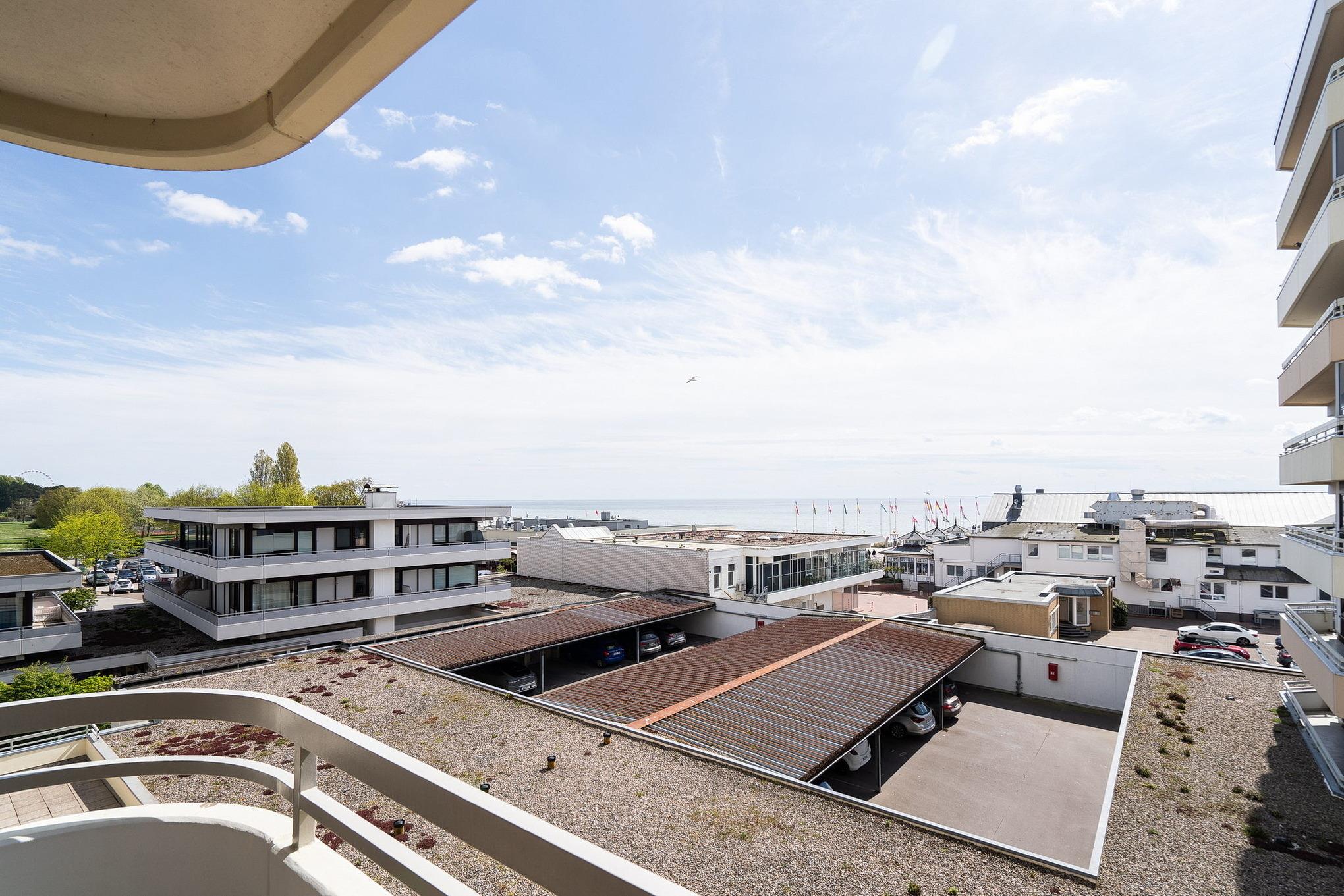 Balkon in südliche Richtung mit Blick auf die Ostsee. Eigener, schmaler PKW-Stellplatz (max. Höhe 1,90 m), Waschmaschine und Trockner gegen Gebühr.