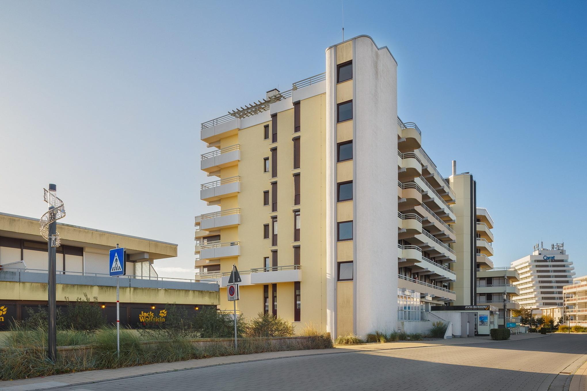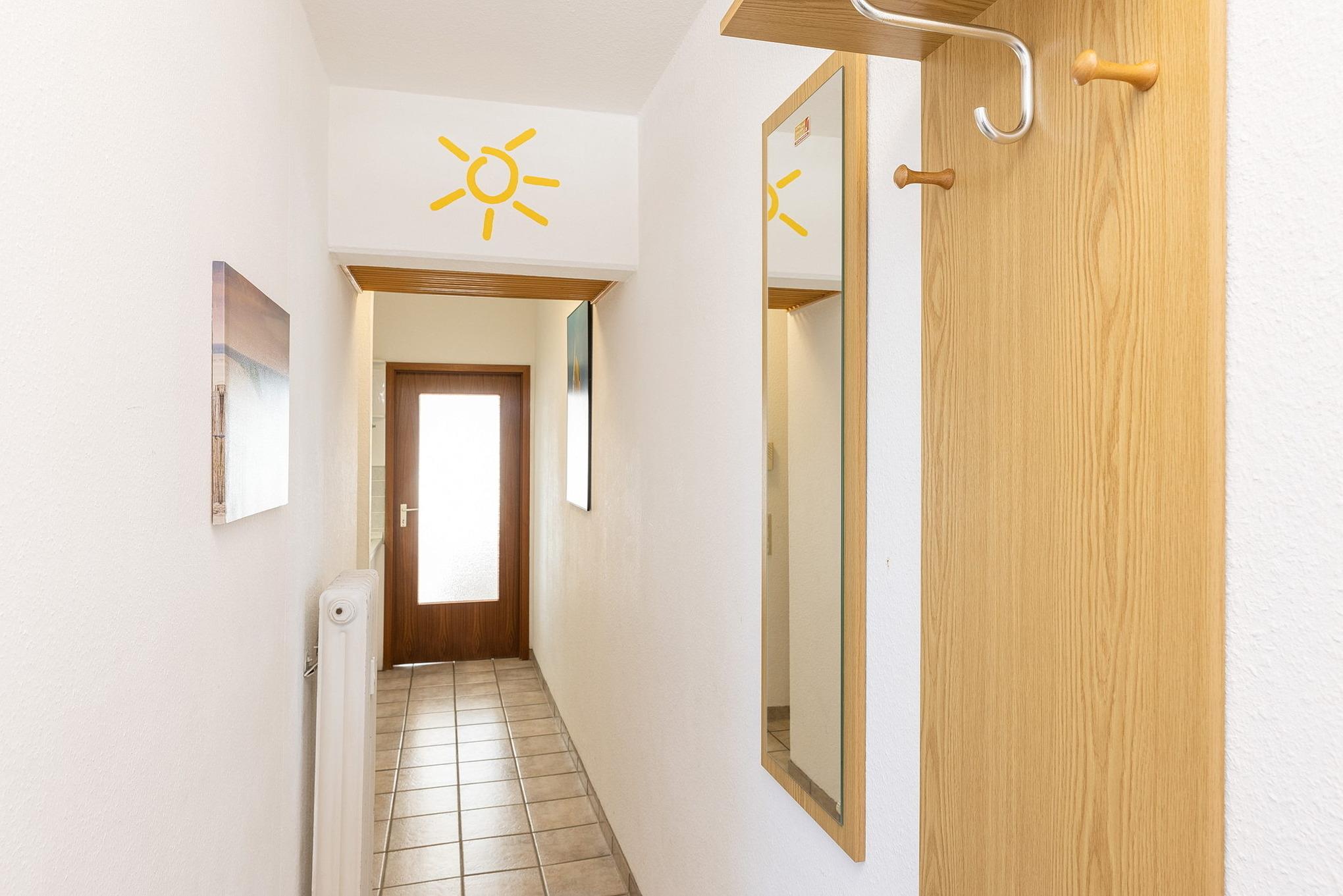 Die Wohnung befindet sich im 3. OG im Grömitz-Center 2 (Fahrstuhl vorhanden, es führen 4 Stufen zur Wohnung)