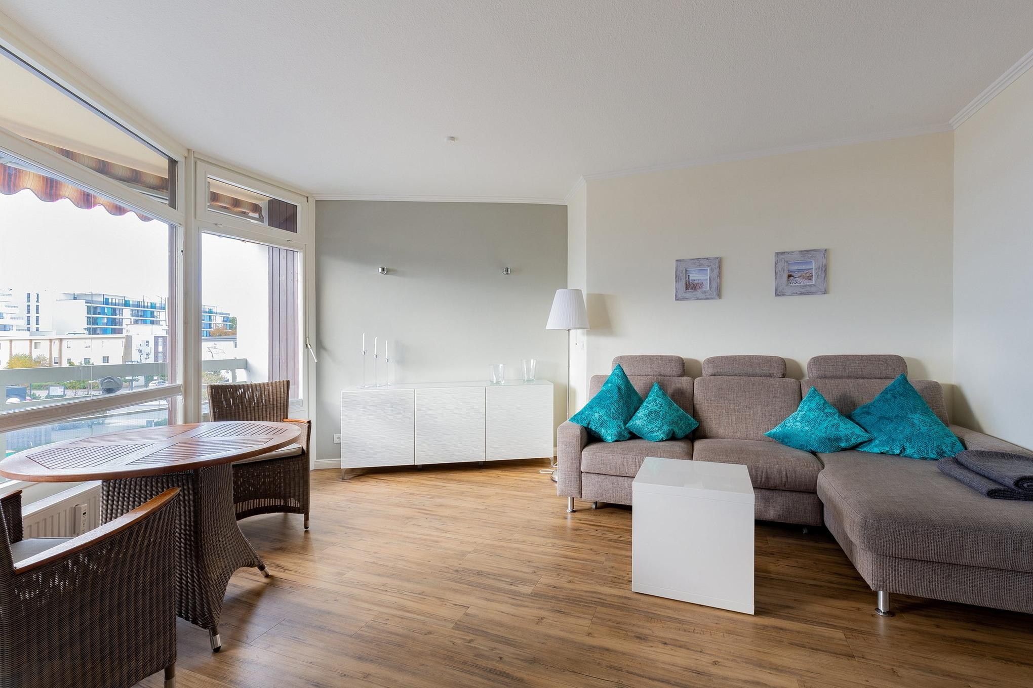Moderne Ferienwohnung in Grömitz mit Balkon, Strandnähe und Tiefgaragenstellplatz für entspannte Tage an der Ostsee.