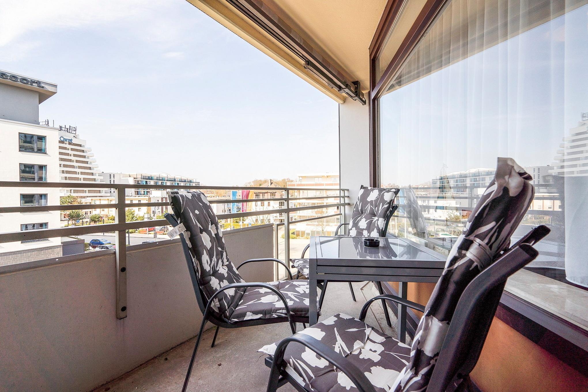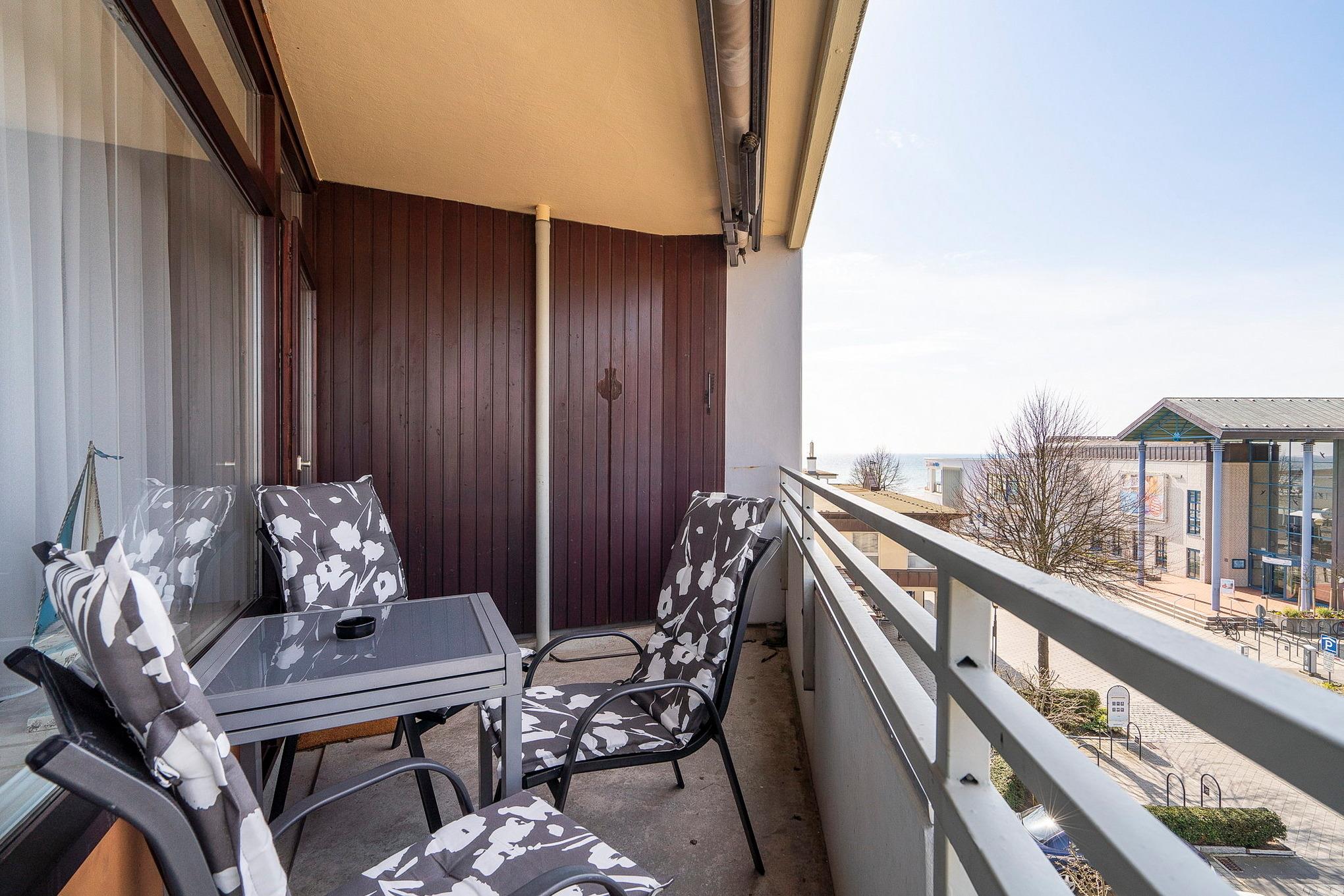 Moderne Ferienwohnung im 4. Stock direkt an der Strandpromenade in Grömitz mit Balkon und Tiefgaragenstellplatz.