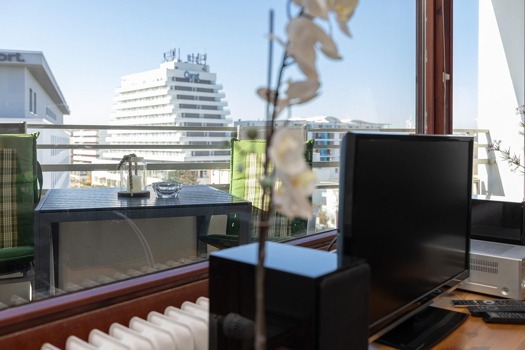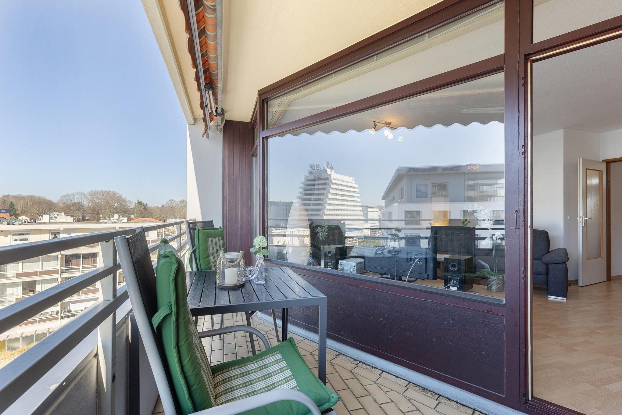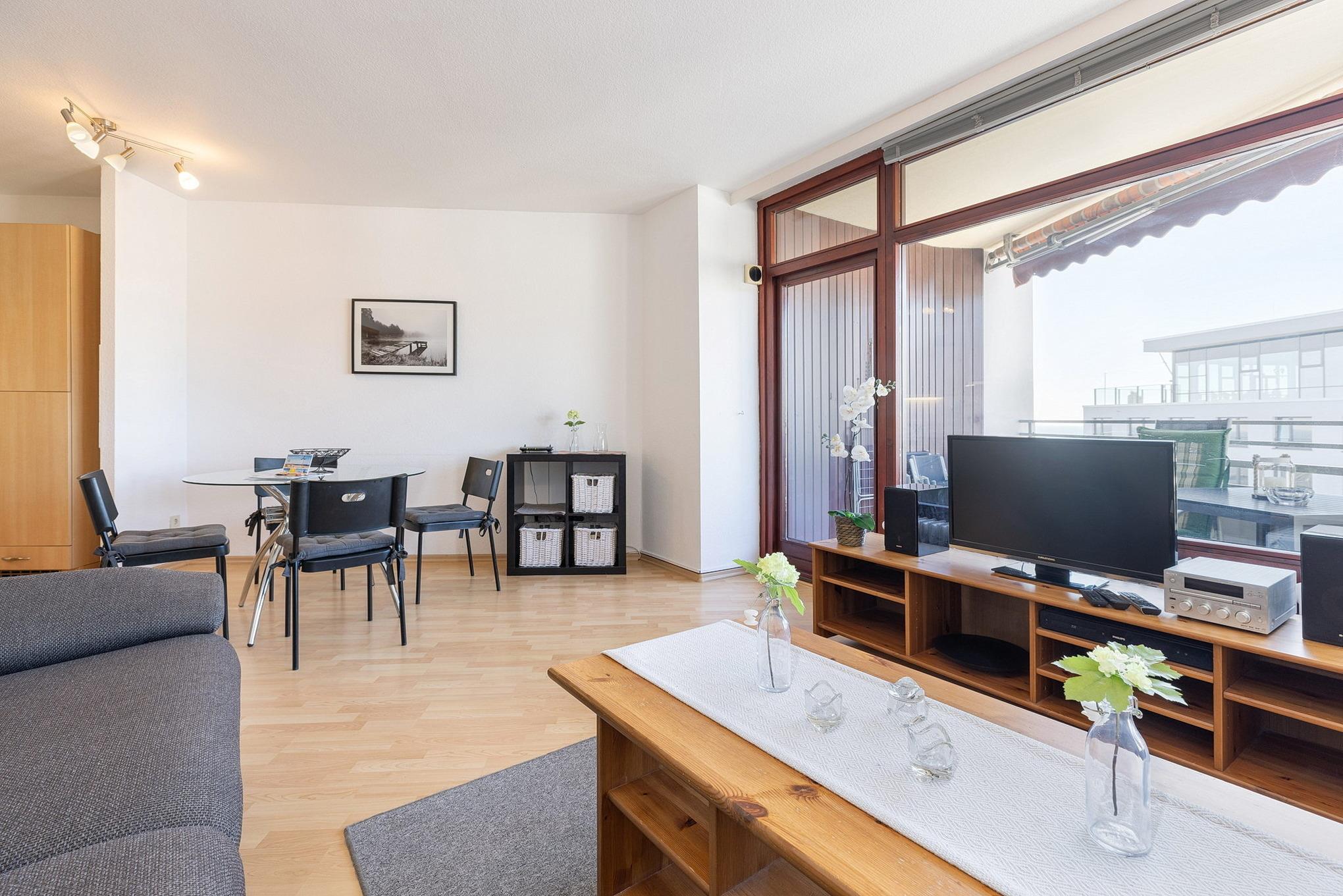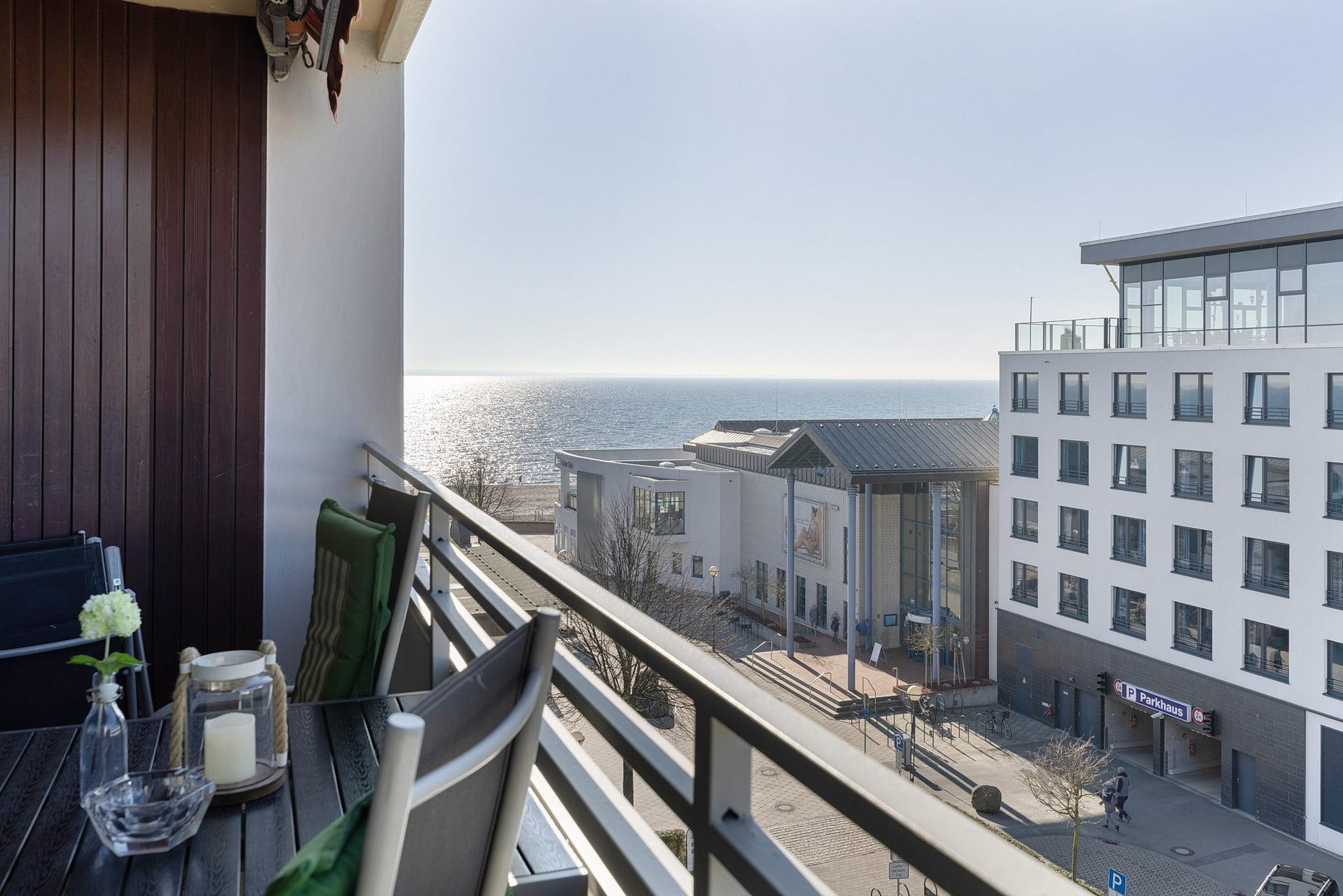 Moderne Ferienwohnung mit Meerblick, Balkon und Strandnähe im Grömitz-Center, ideal für bis zu 4 Gäste.