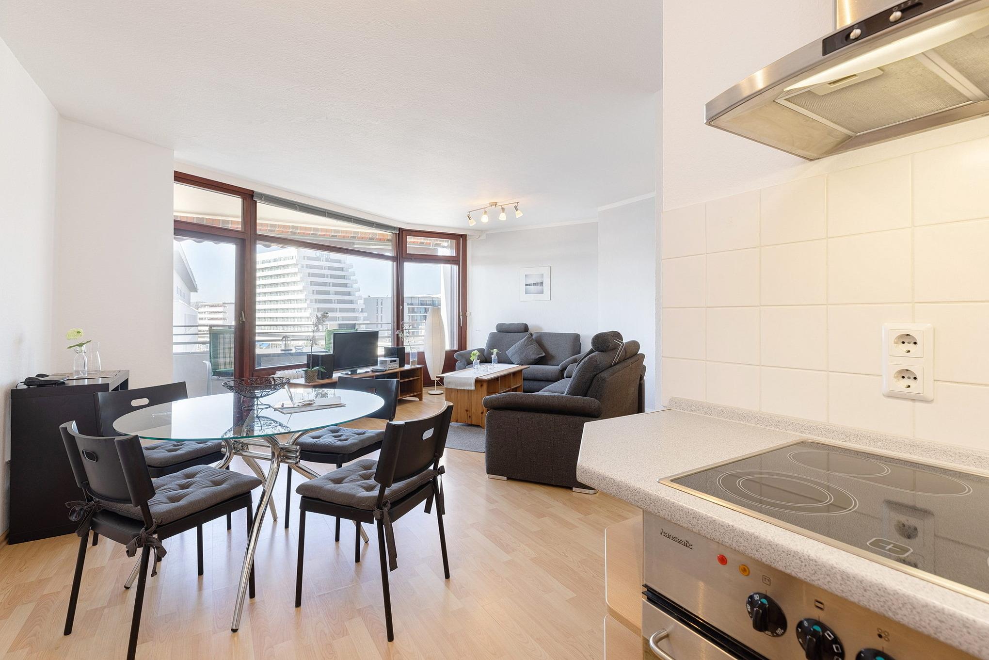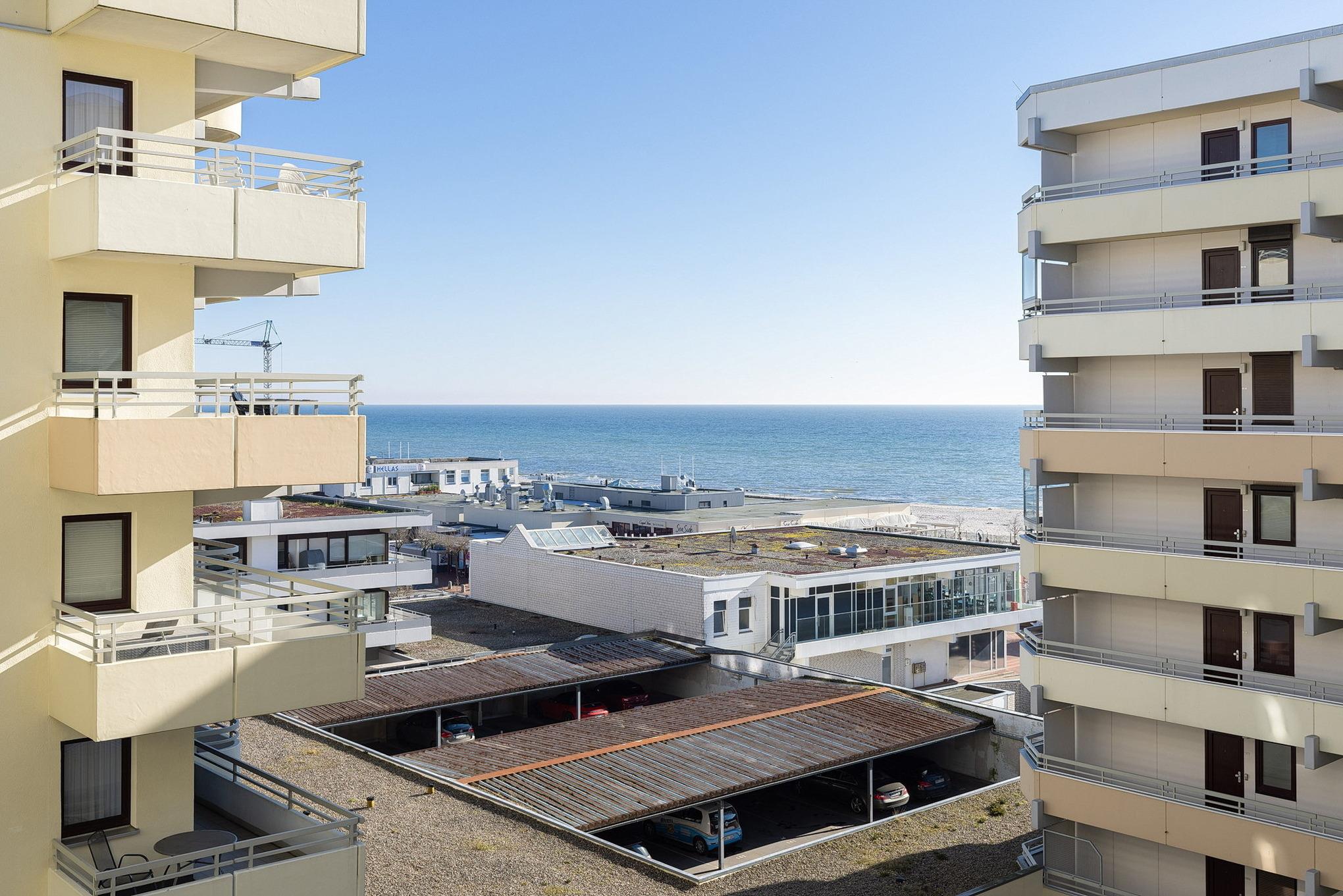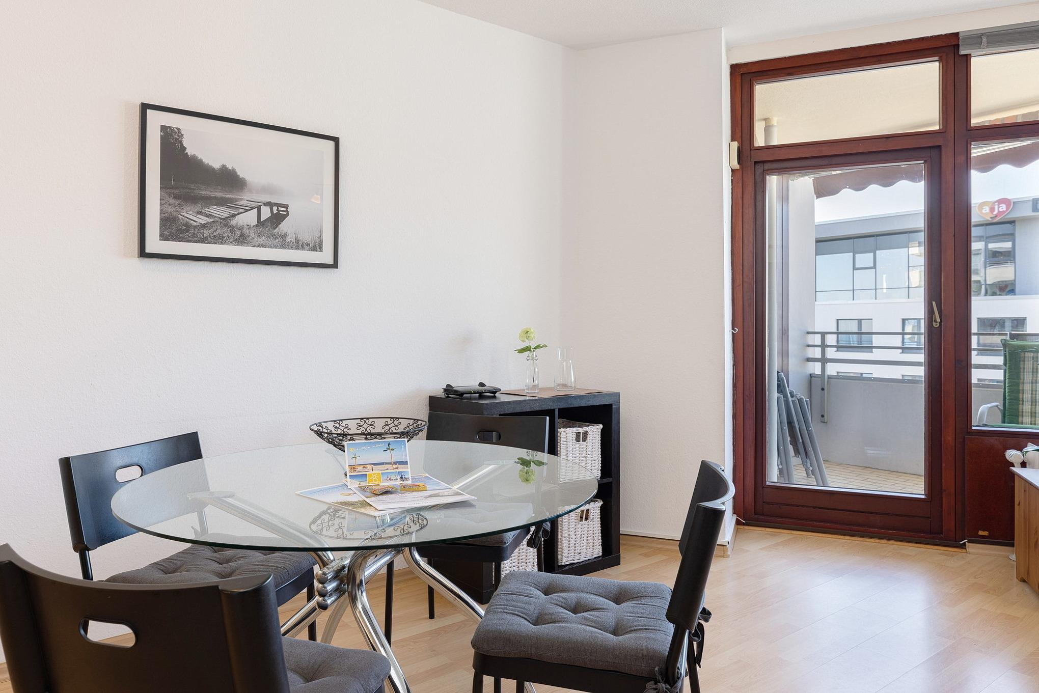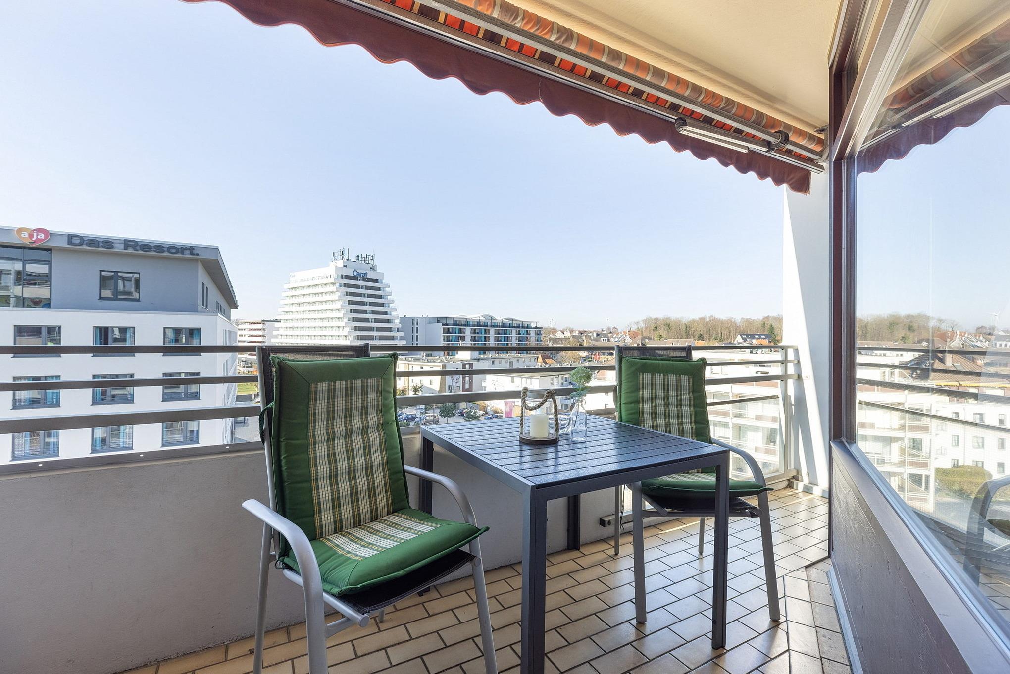 Moderne Ferienwohnung mit Meerblick, Balkon und Strandnähe im Grömitz-Center, ideal für bis zu 4 Gäste.