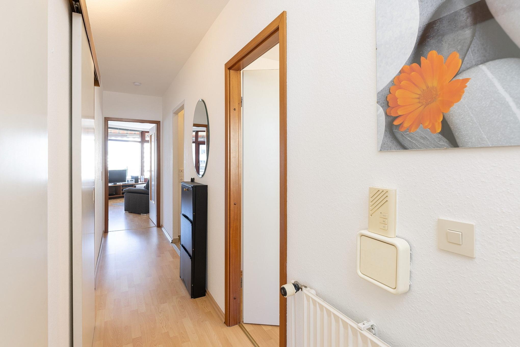 Die Wohnung befindet sich im 6. Stock im Grömitz-Center 1. Ein Aufzug ist in unmittelbarer Nähe vom Parkplatz vorhanden.