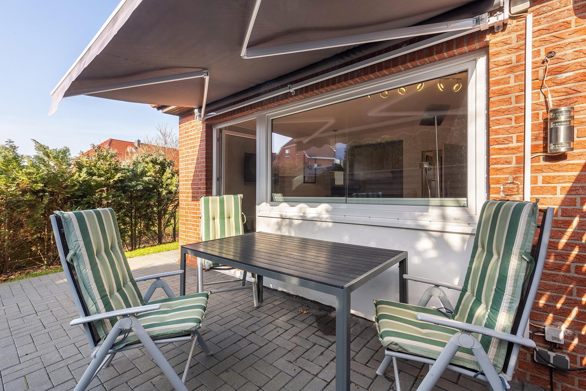 Die ideale Wohnung für die Familie. Große Terrasse mit kleinem Garten und Gartenhaus. Absolut ruhig gelegen und nur wenige Minuten zum Strand. Auch dem Zentrum sehr nahe. Die Wohnung ist für 4 Personen geeignet.