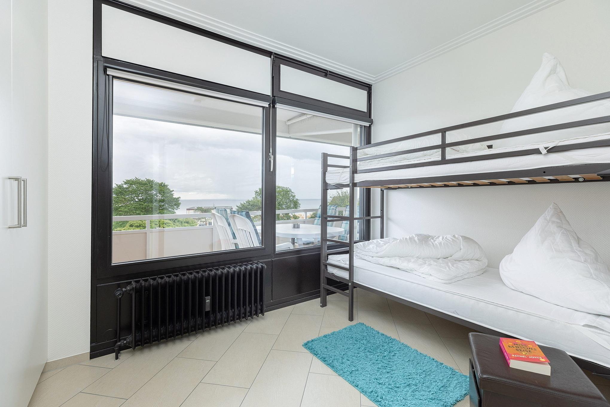 Das separate Kinderzimmer ist mit einem Etagenbett (90x200cm) und einem 4-türigen Kleiderschrank ausgestattet. Das Zimmer ist mit Fliesen ausgelegt; das Fenster lässt sich durch ein Rollo verdunkeln.