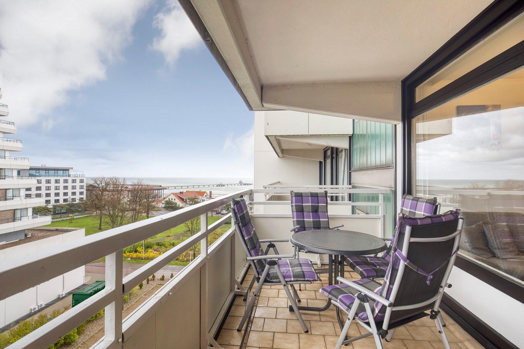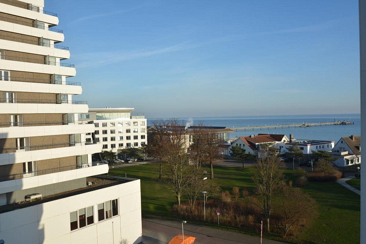 Die Wohnung liegt im 6. OG. Vom Balkon Blick auf die Ostsee.