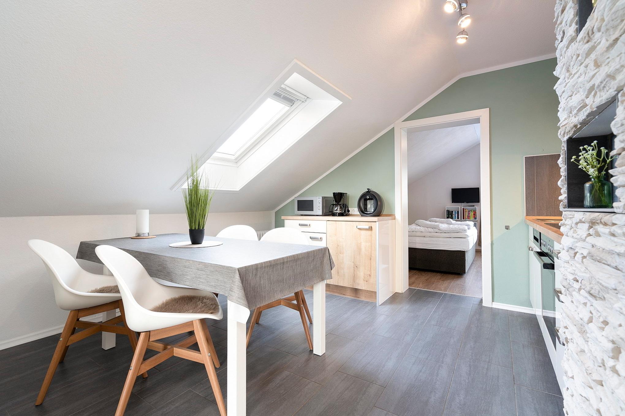 Die Dachgeschosswohnung befindet sich im 1. OG