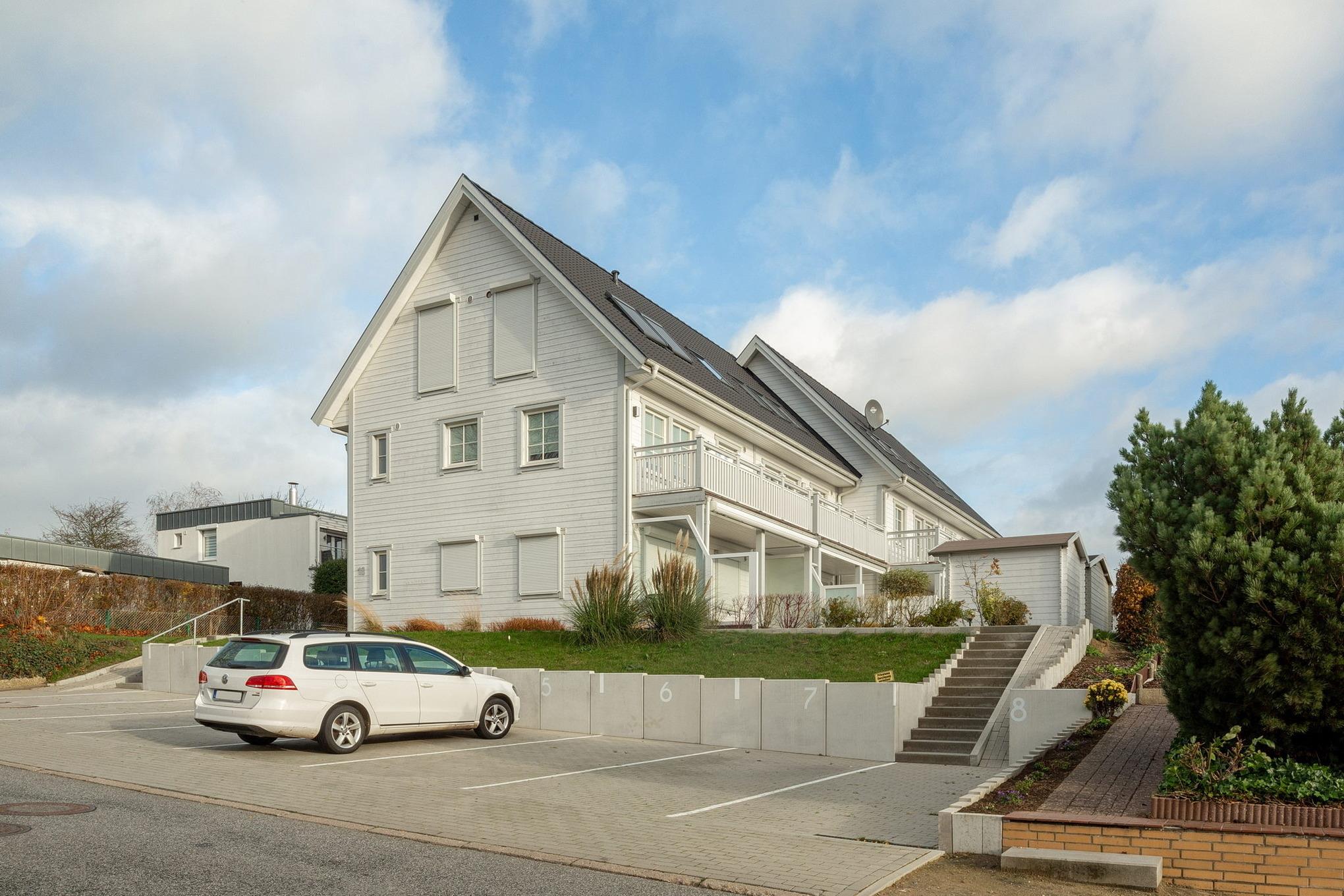 Modernes (Erstbezug 2018) Mehrfamilienhaus in Holzbauweise in ruhiger Sackgassenlage am nördlichen Ortsrand von Grömitz. Ein kleiner Kinderspielplatz befindet sich in ca. 50m Entfernung, der nächste Supermarkt befindet sich ca. 500m entfernt, der Strand ist in ca. 15 Gehminuten zu erreichen.