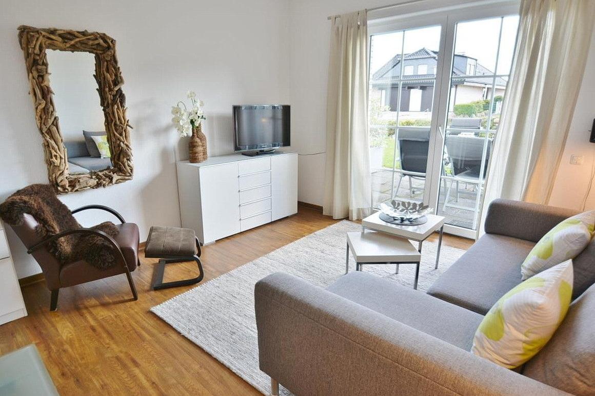 Moderne Ferienwohnung in Grömitz nahe Yachthafen, Strand und Promenade mit Terrasse und hochwertiger Ausstattung.