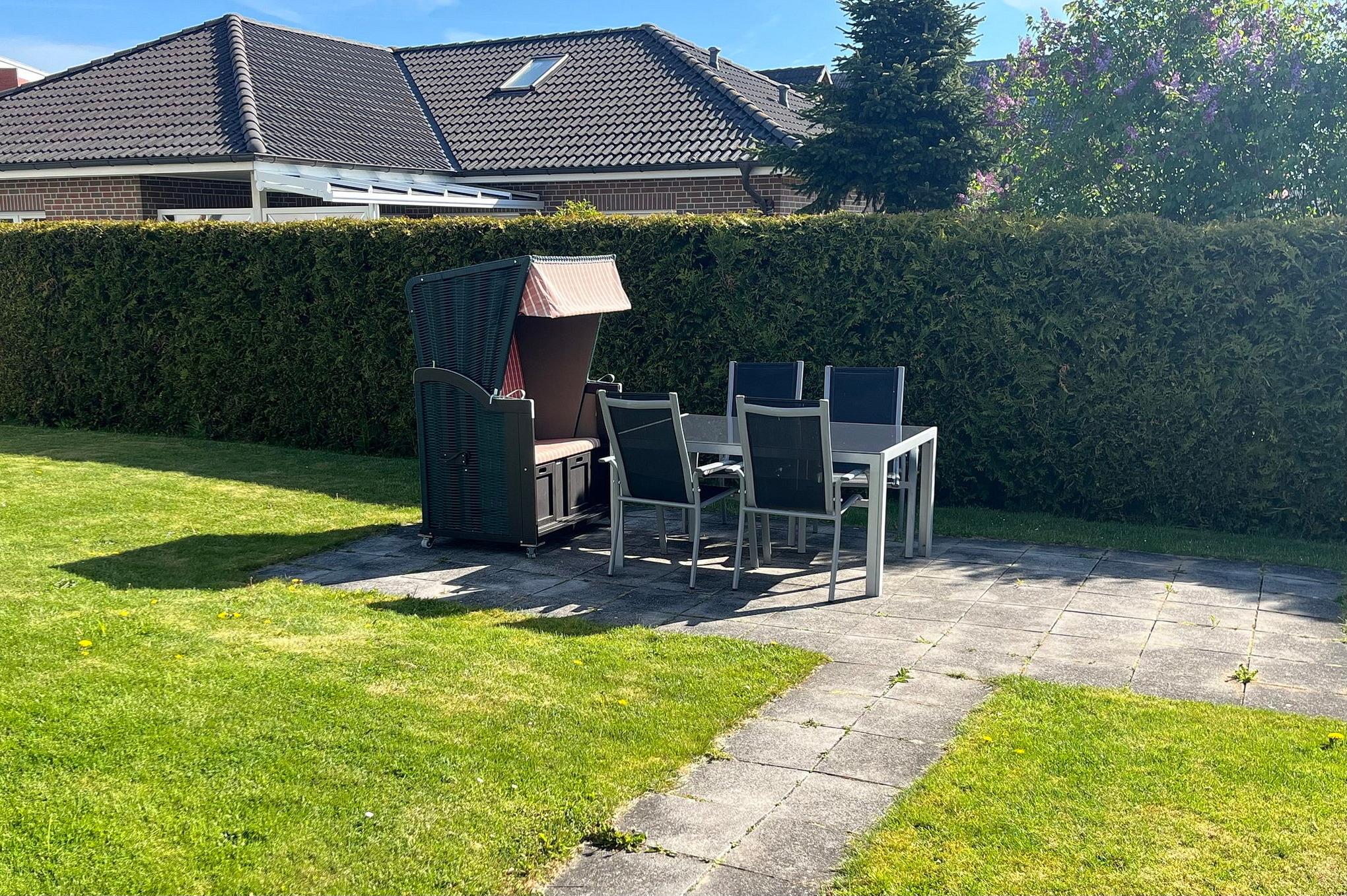 Moderne Ferienwohnung in ruhiger Lage Grömitz mit Garten, Strandkorb und WLAN für erholsame Tage an der Ostsee.